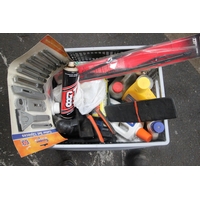 BOX OF SCREWS, NUTS RAWL PLUGS