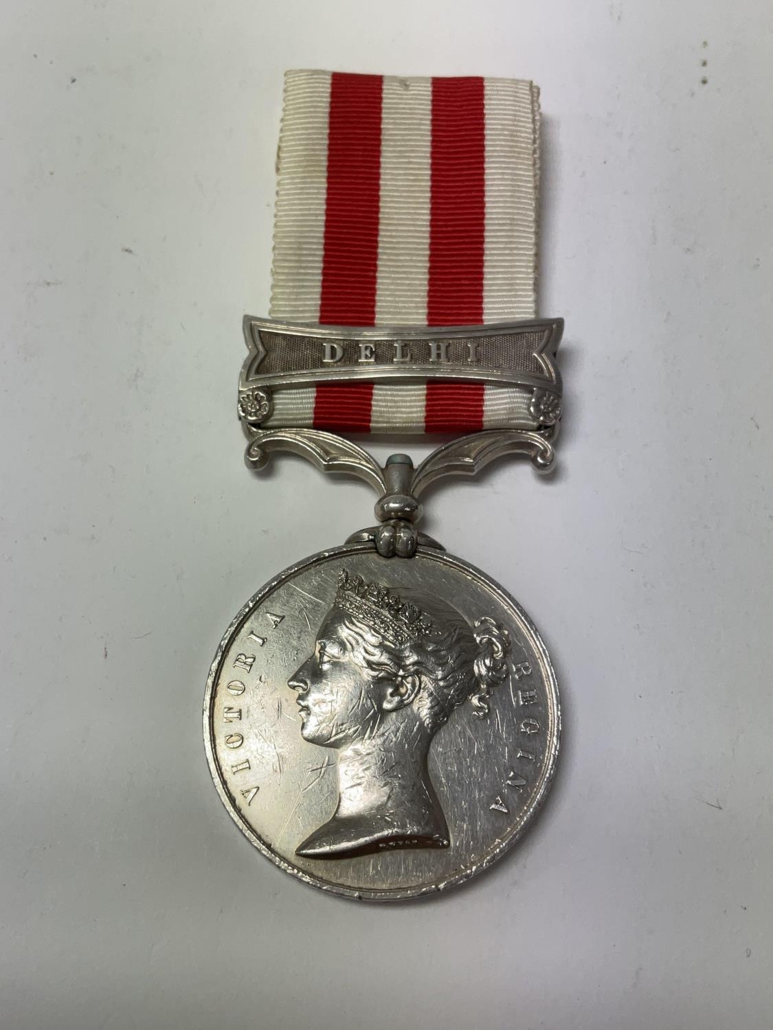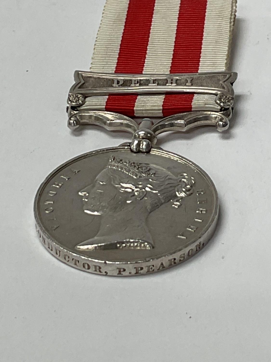 India Mutiny medal 1857-58 with Delhi Bar, marked to Sub Conducter, P.Pearson.
