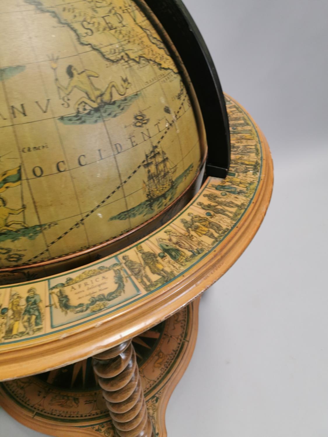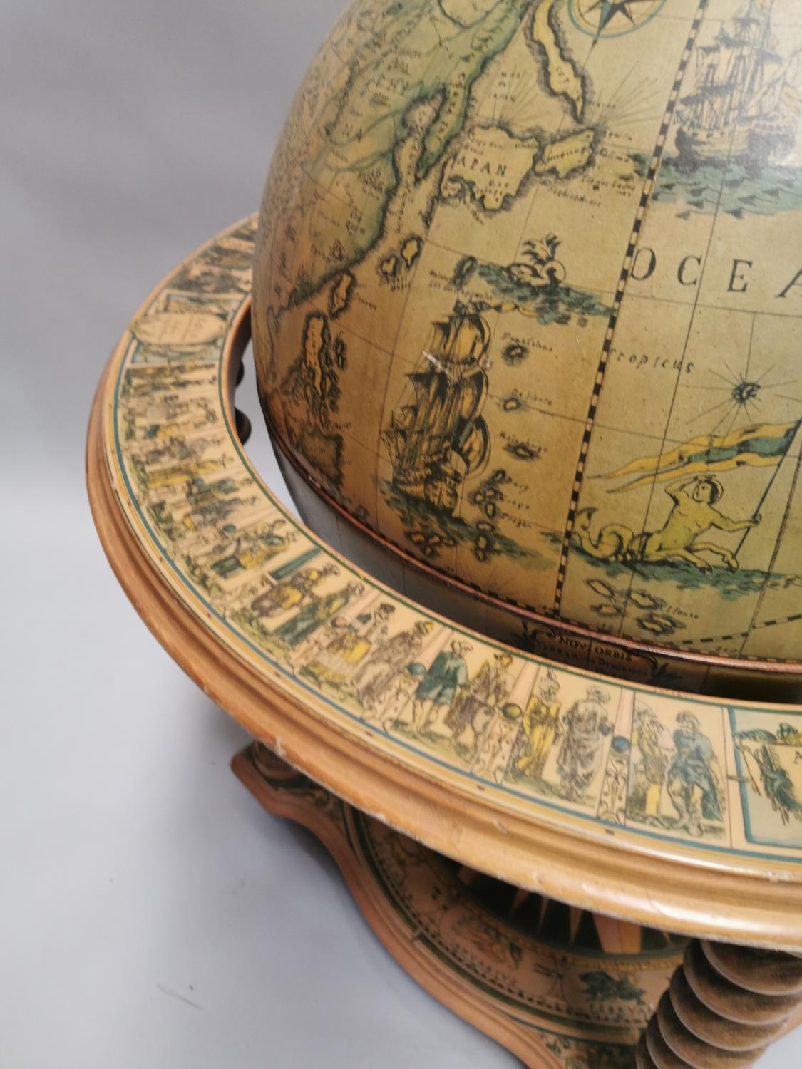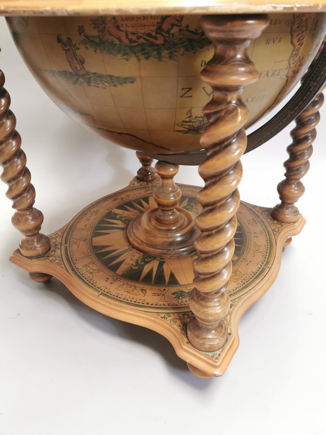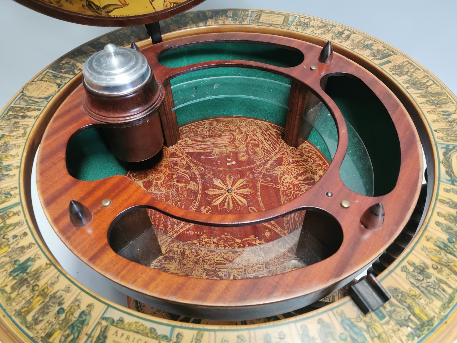 Drinks' cabinet in the form of a globe on stand with fitted interior . { 103cm H X 80cm Dia }.