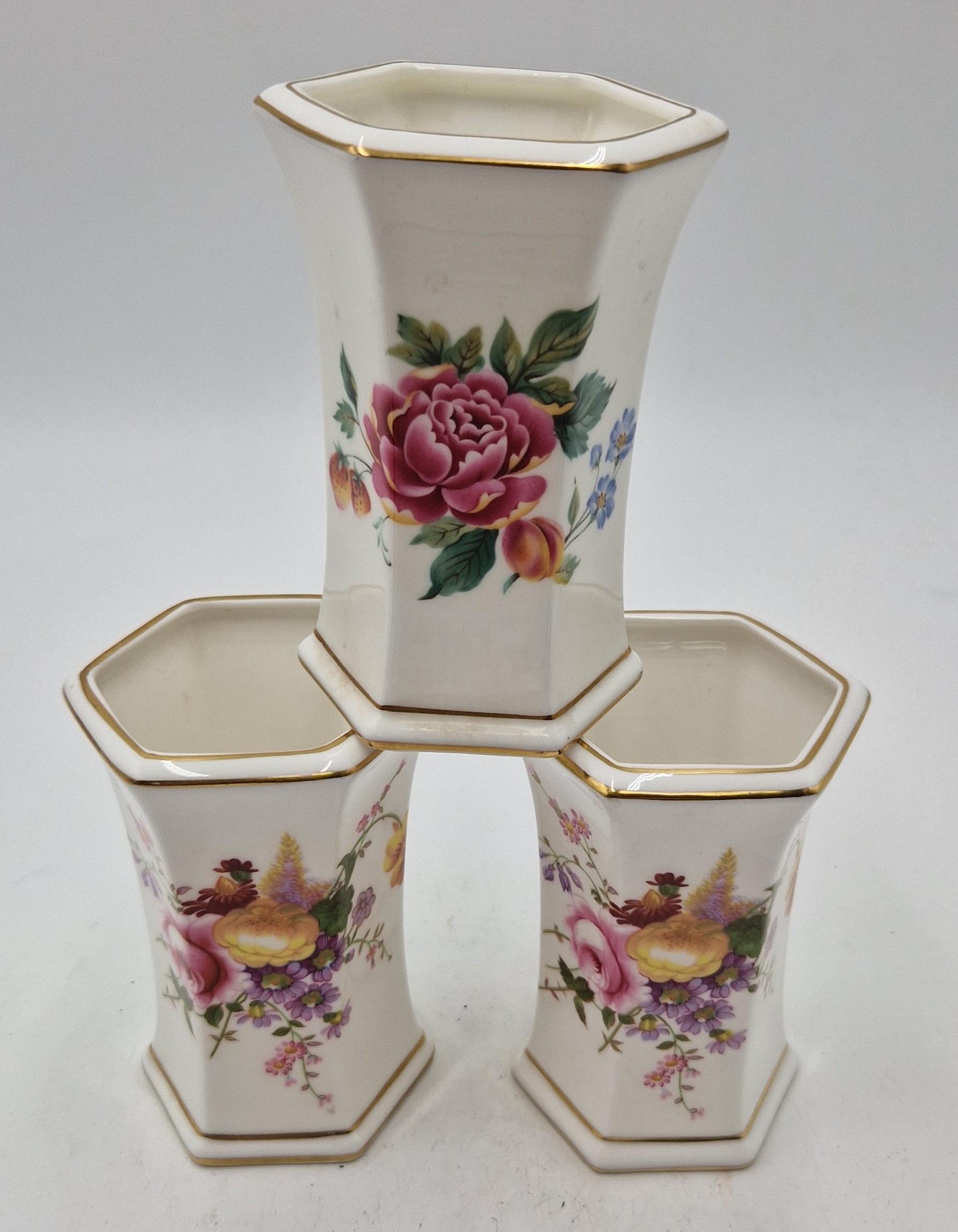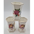 ROYAL CROWN DERBY CHINA 11cm VASES (3) IN THE DERBY DAYS DESIGN