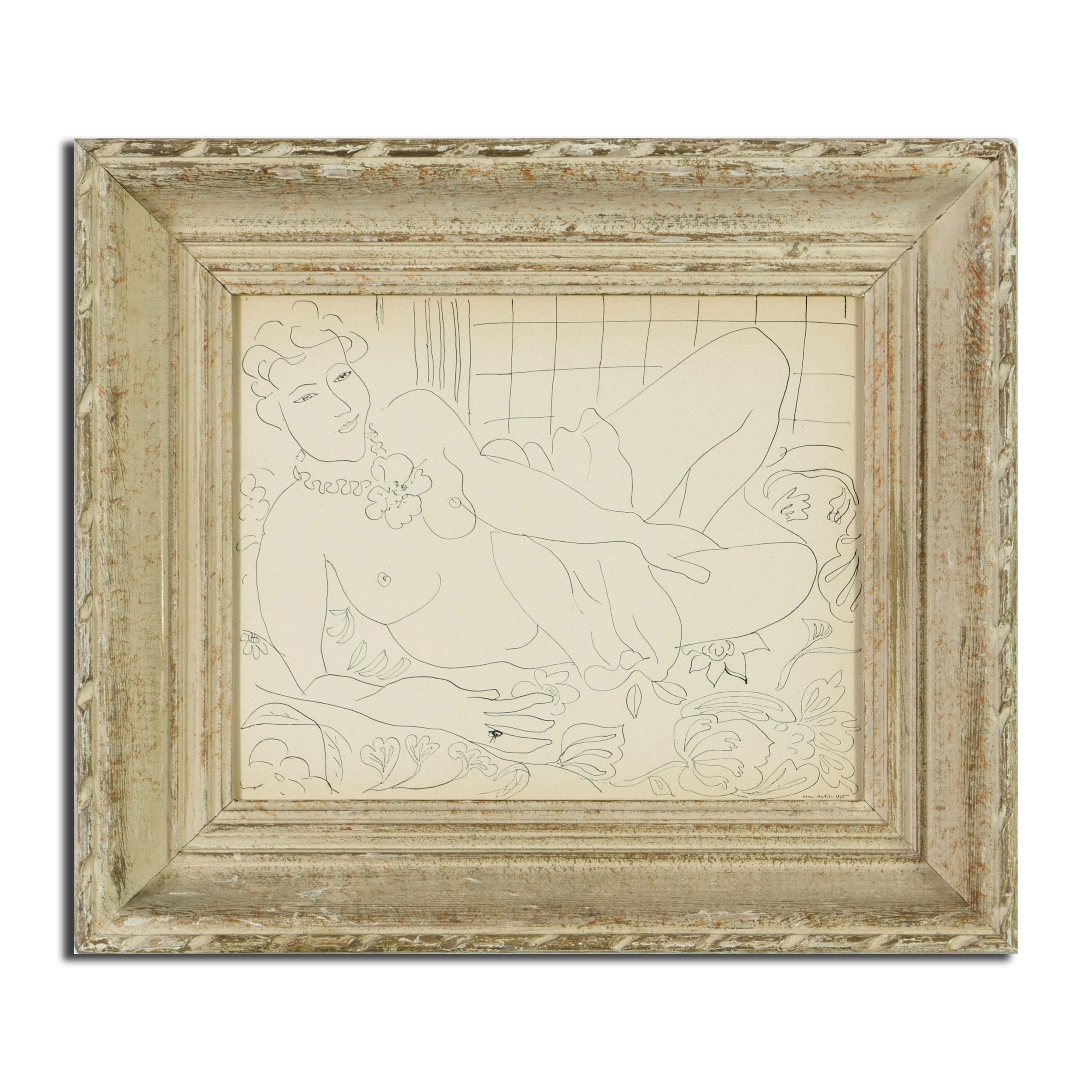 HENRI MATISSE. RECLINING NUDE. signed in the plate, rare lithograph from the 1936 Cahiers D'Art Dessins de Matisse, French vintage frame, 26cm x 21cm.