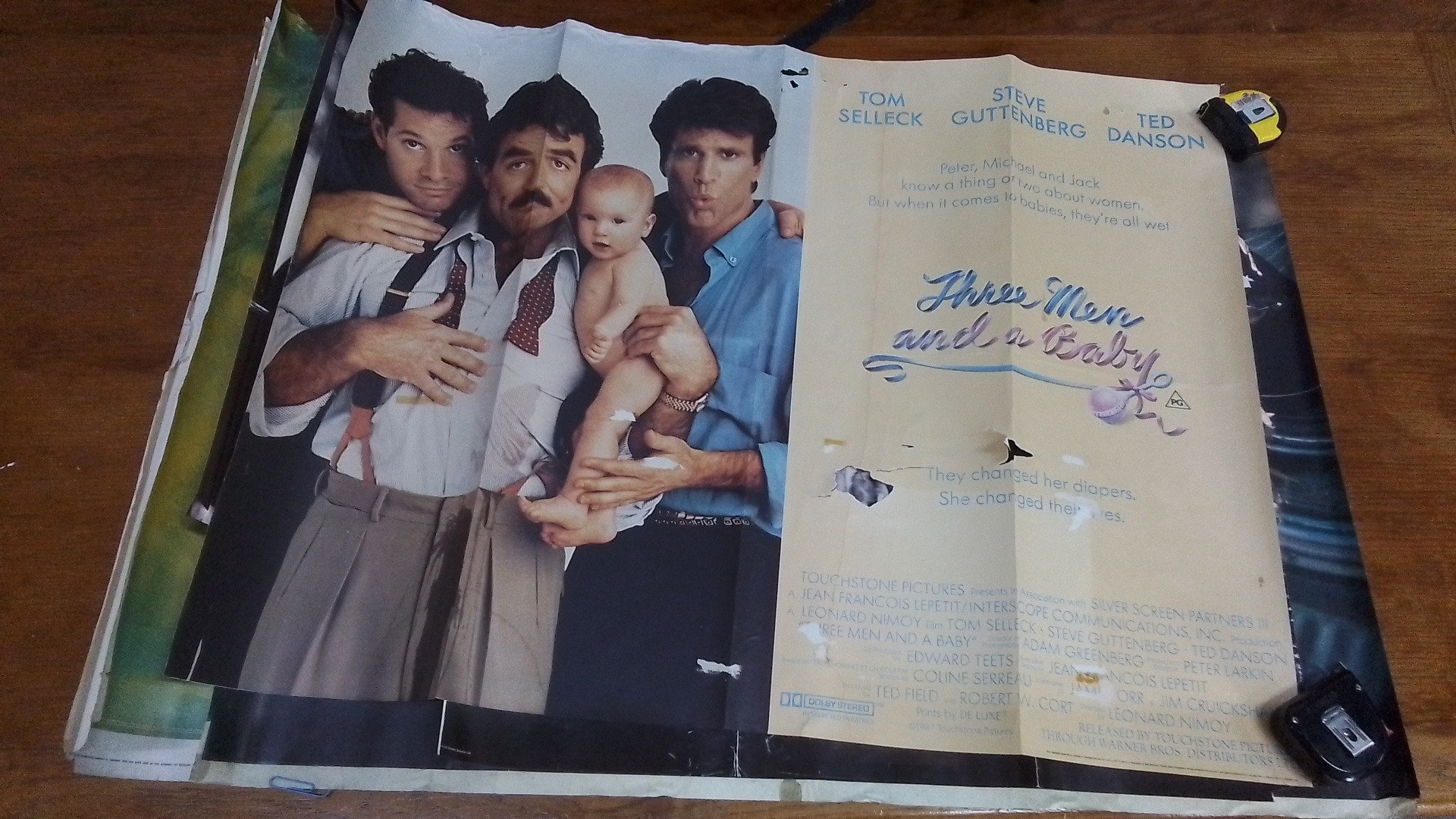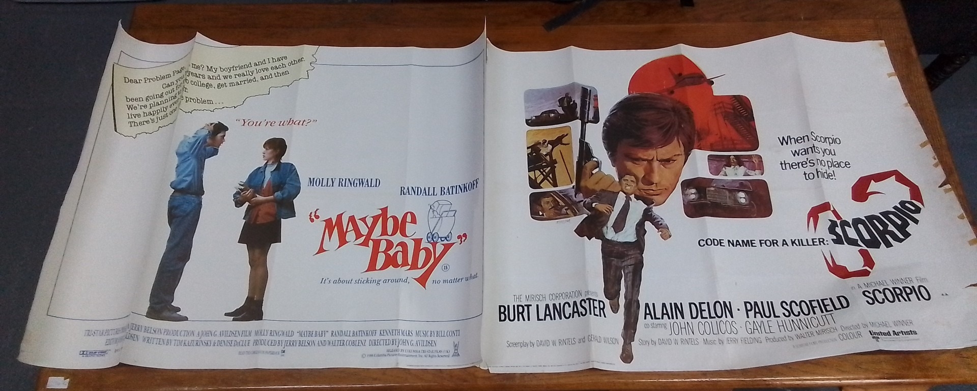 Collection of six folded original cinema one-sheet posters, comprising Three Men and a Baby, The Hand That Rocks the Cradle, Narrow Margin, Dances with Wolves, The Emerald Forest, and a double-bill poster for Maybe Baby / Scorpio.
