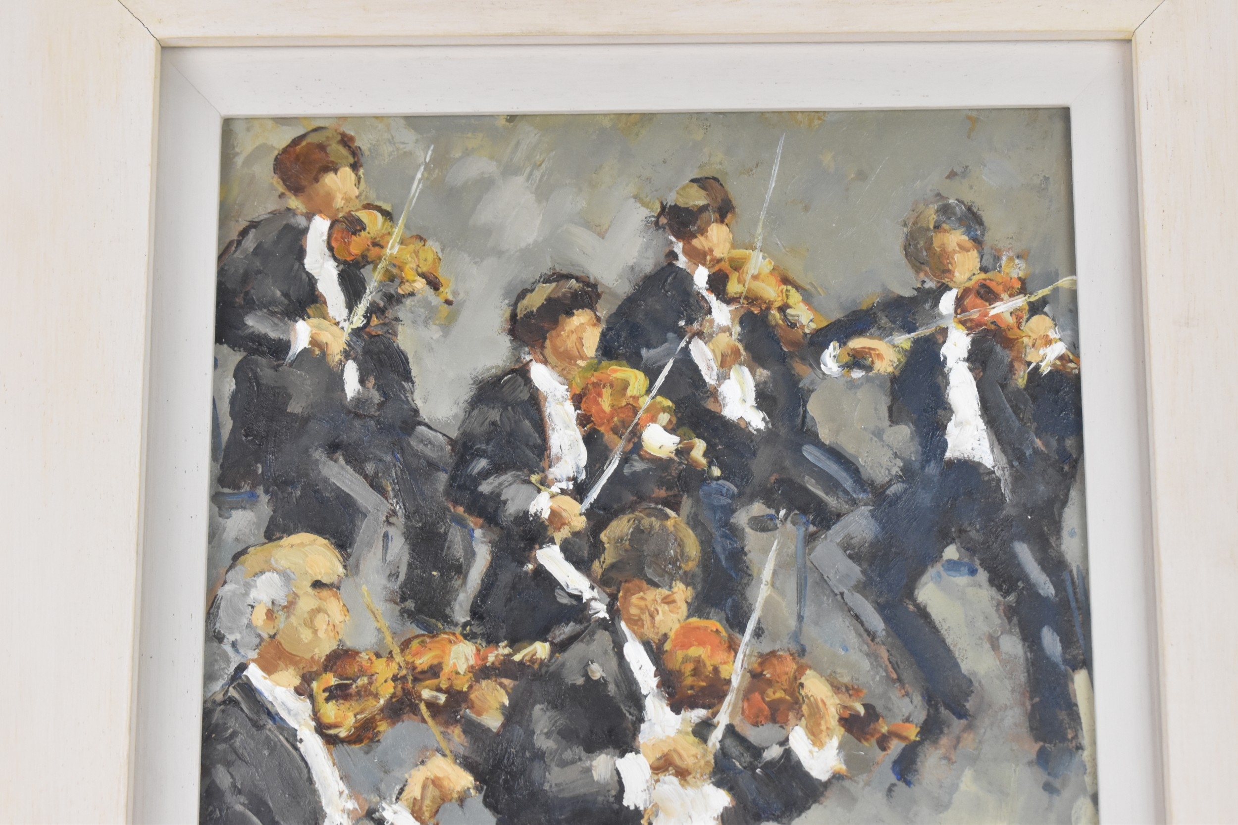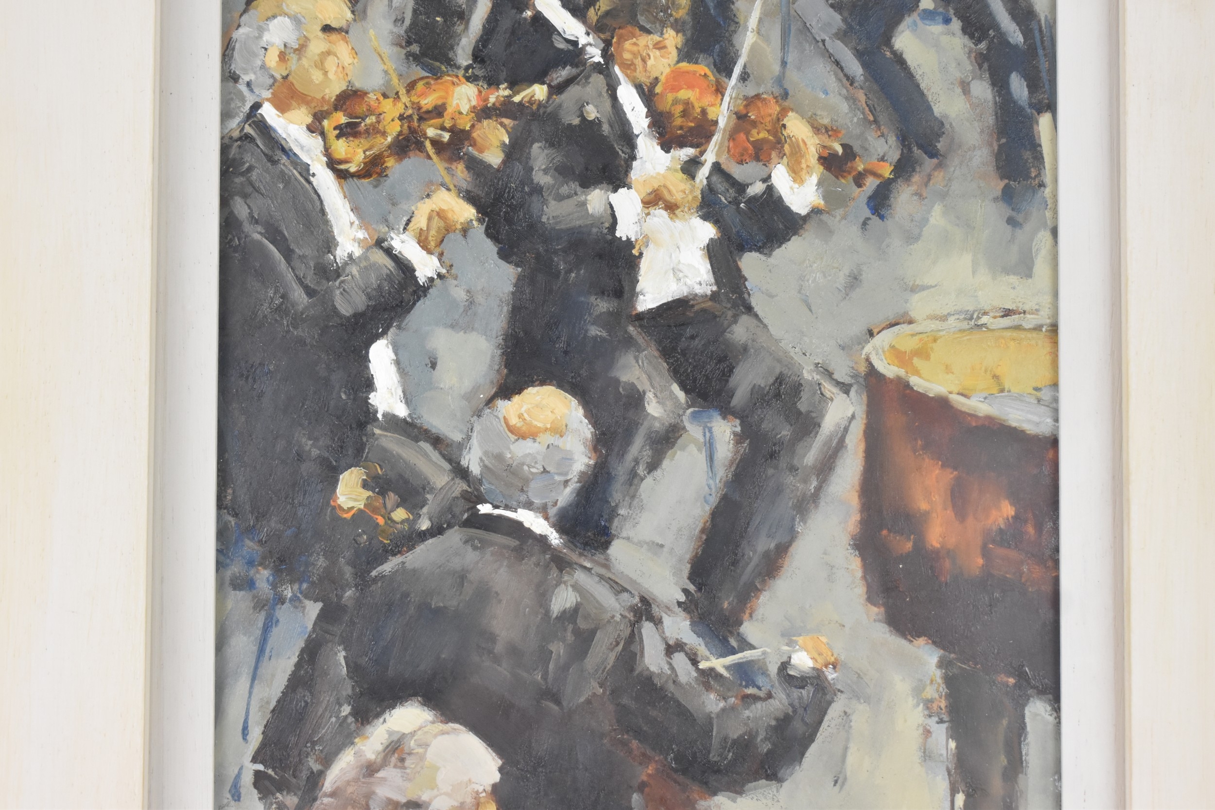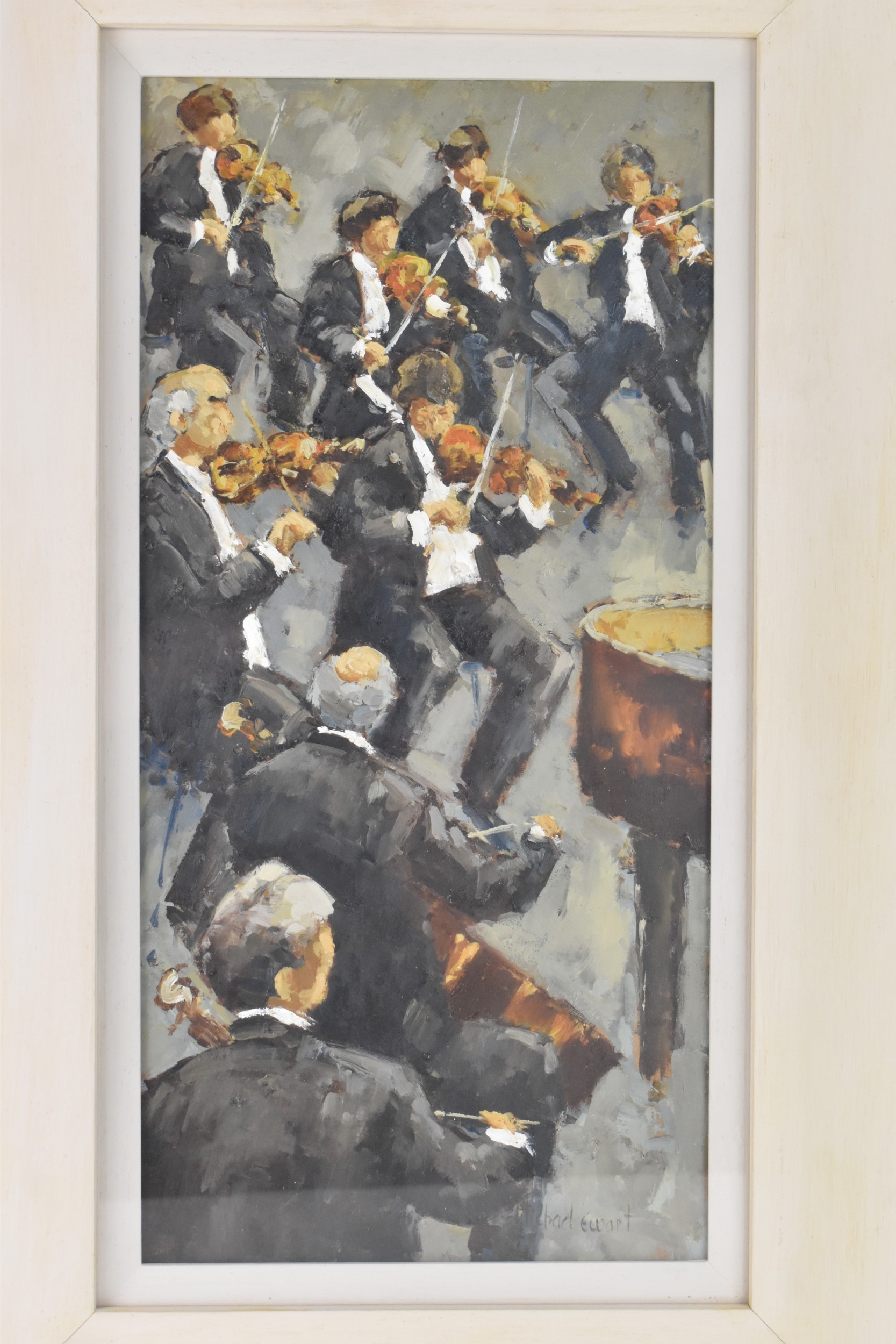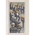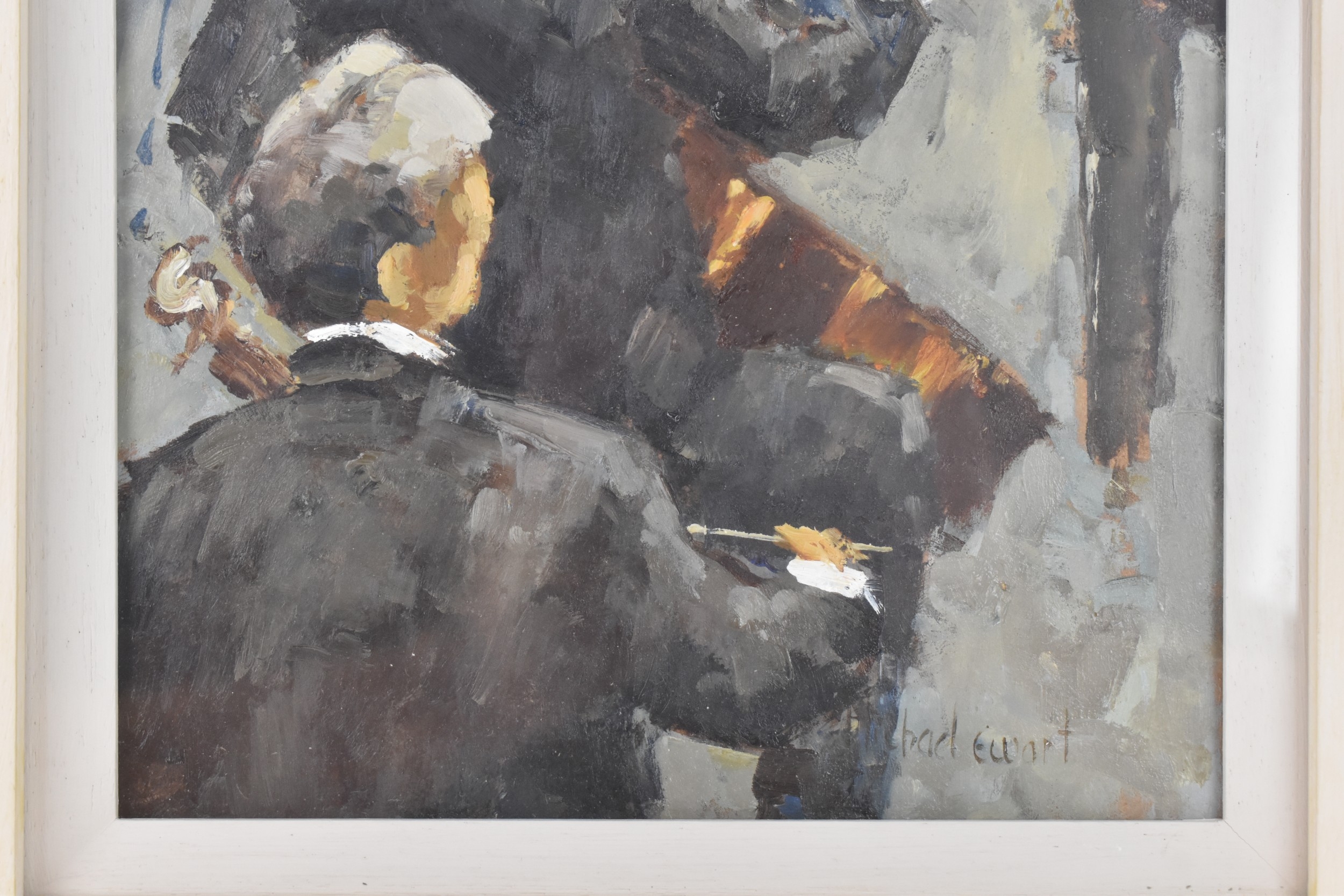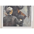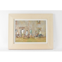 Michael Ewart (B.1940) An oil on board entitled 'Performance', signed to the lower right corner, 18cm x 37.5cm, the frame 32.5cm x 52cm
