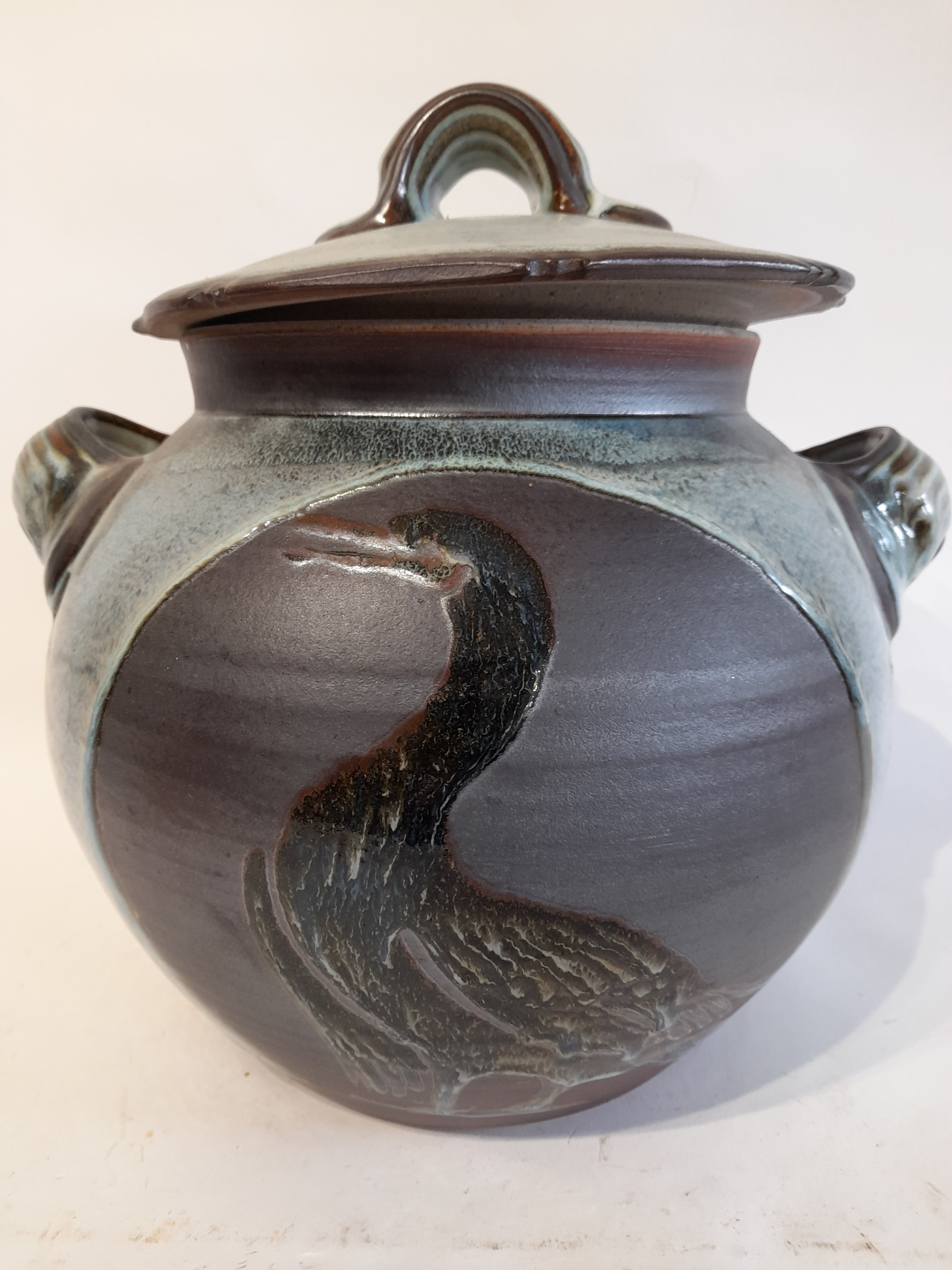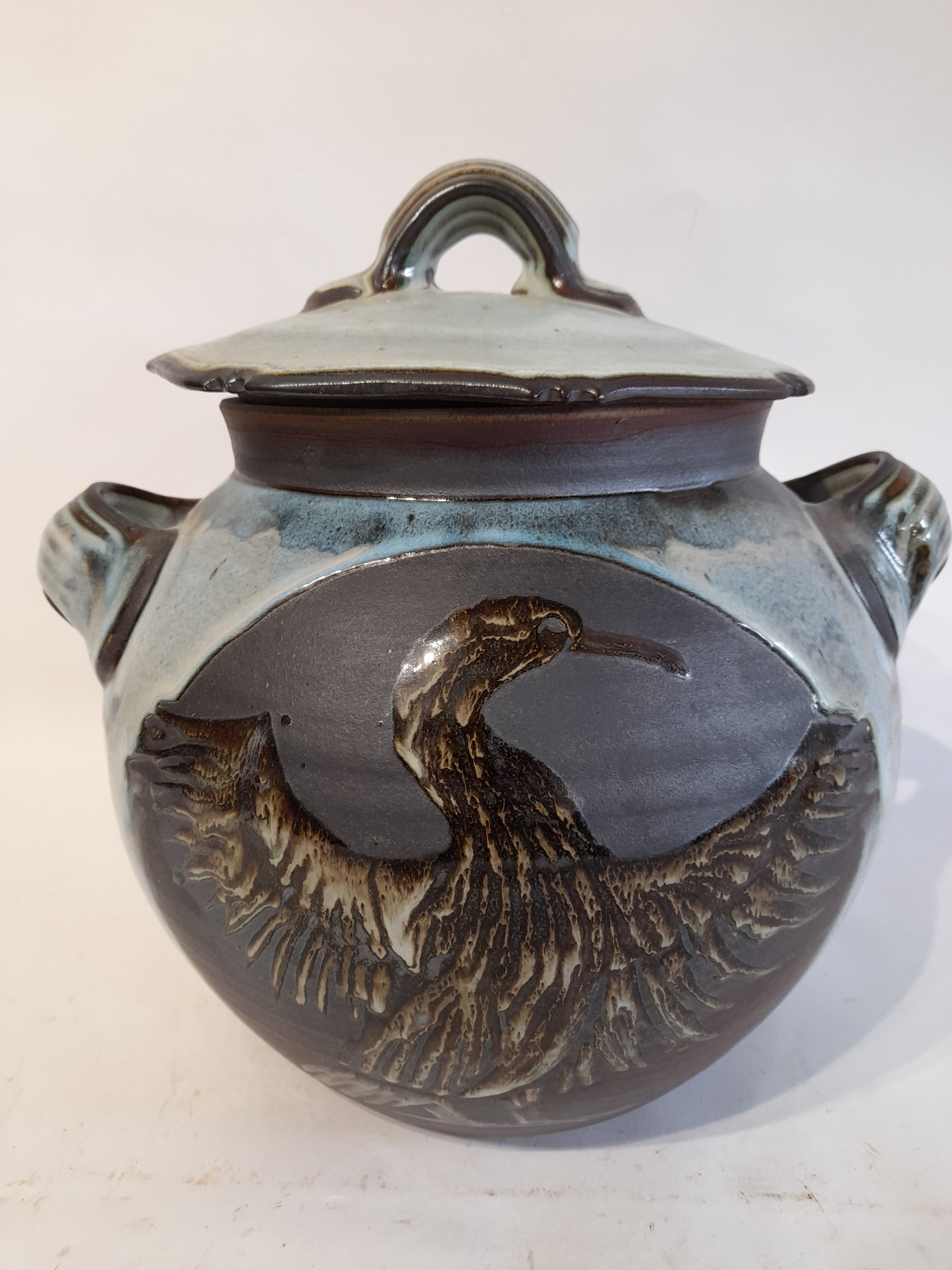 Large stoneware lidded pot by Benjamin Eeles with impressed mark. 35cm x 33cm