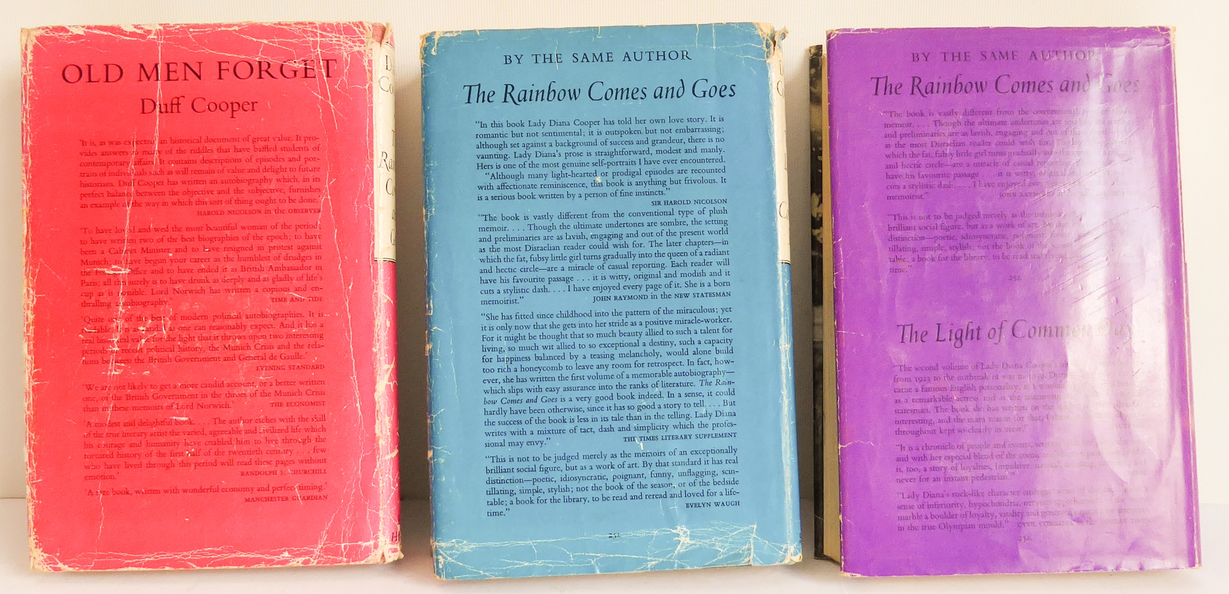 The Diana Cooper autobiographical trilogy (Rupert Hart Davis 1958, 1959 and 1960 first editions)