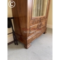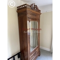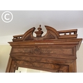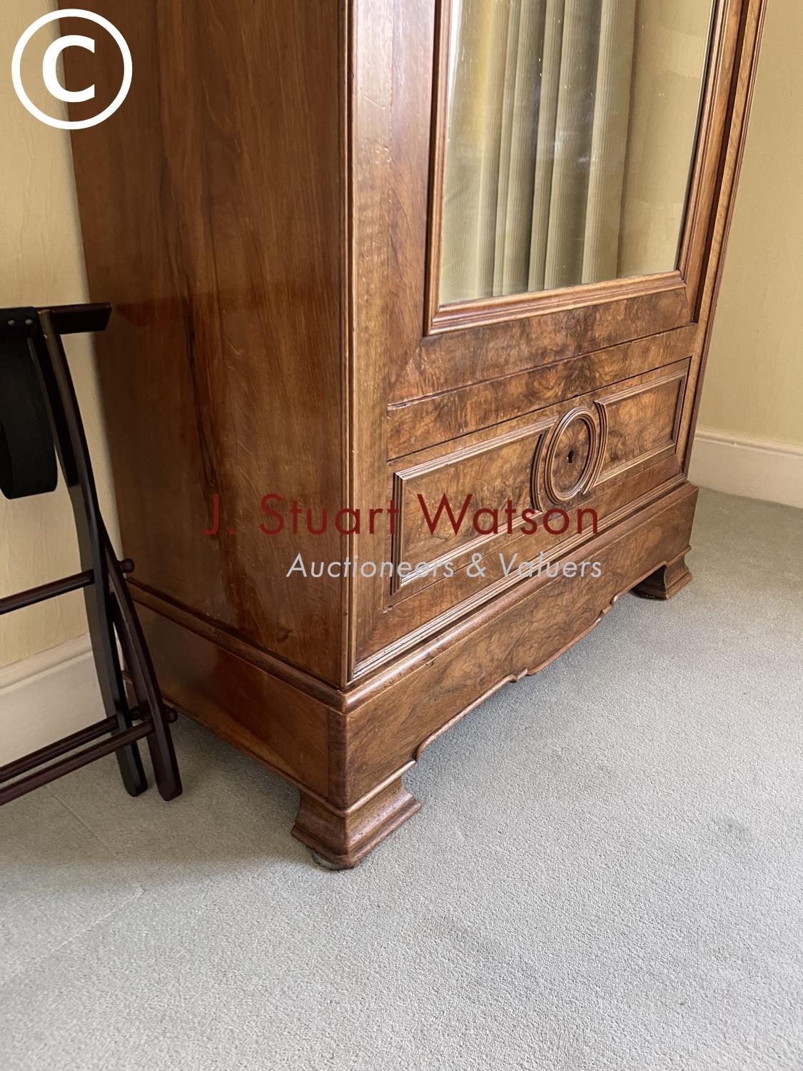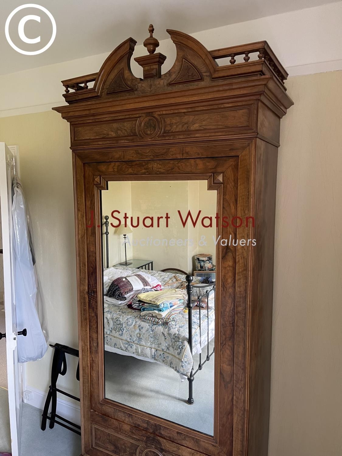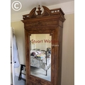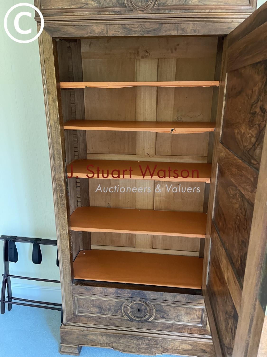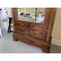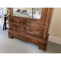 A large french walnut and oak armoire wardrobe with mirror door over two drawers, fitted to the inside with adjustable shelves 97x44x240