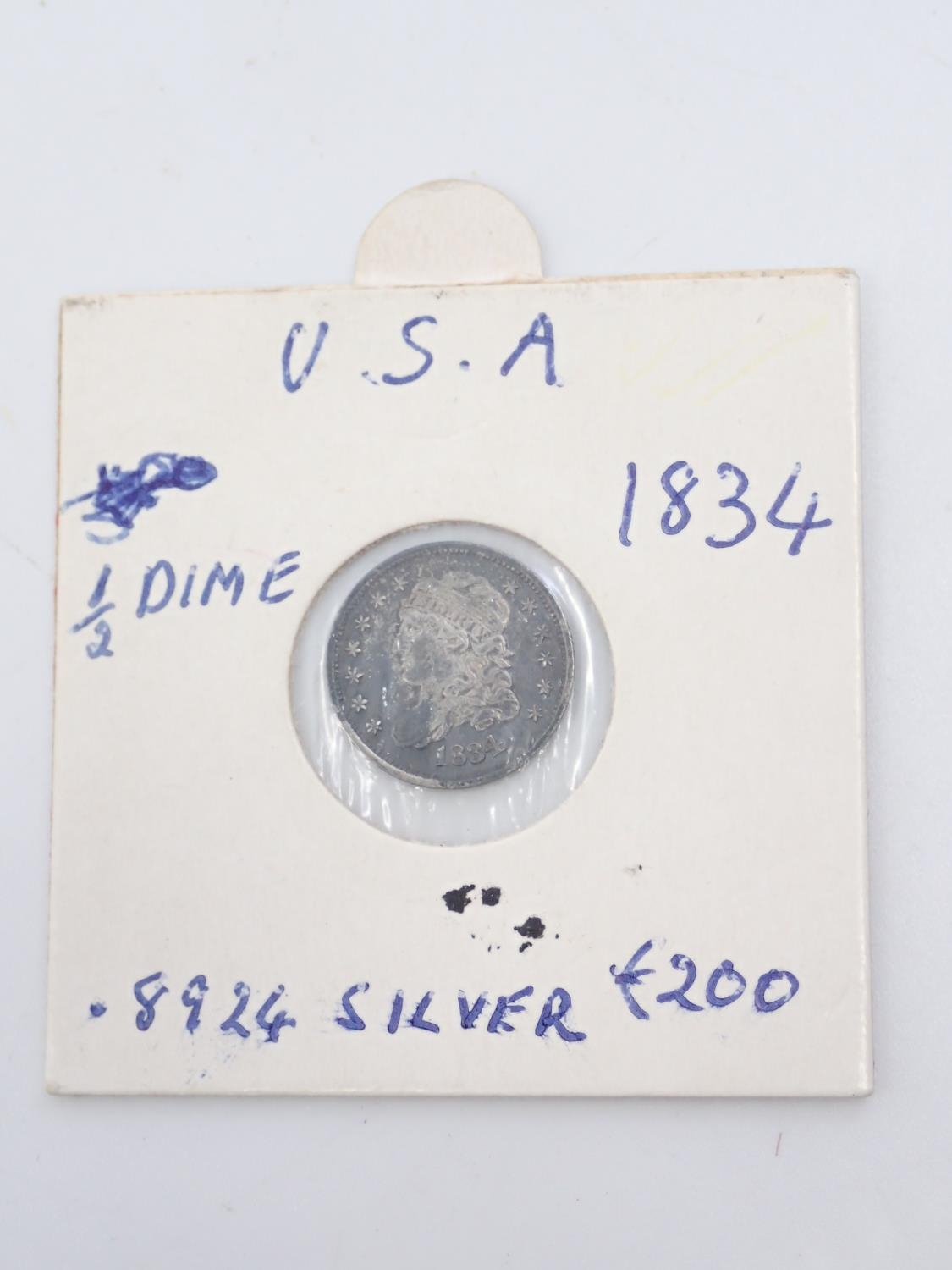 A silver American half dime dated 1834
