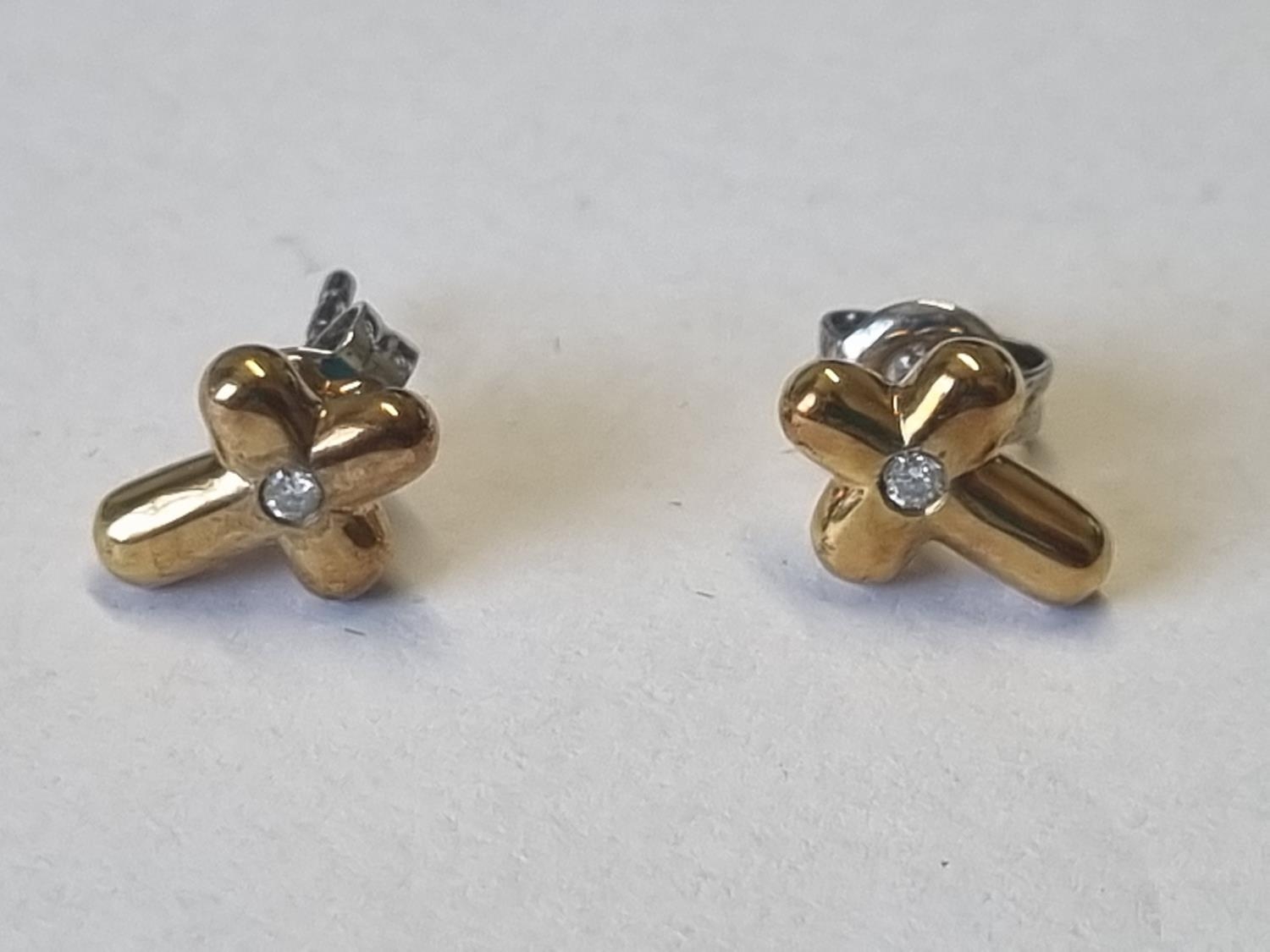 A pair of Silver cross Earrings set with 1 point Diamond.