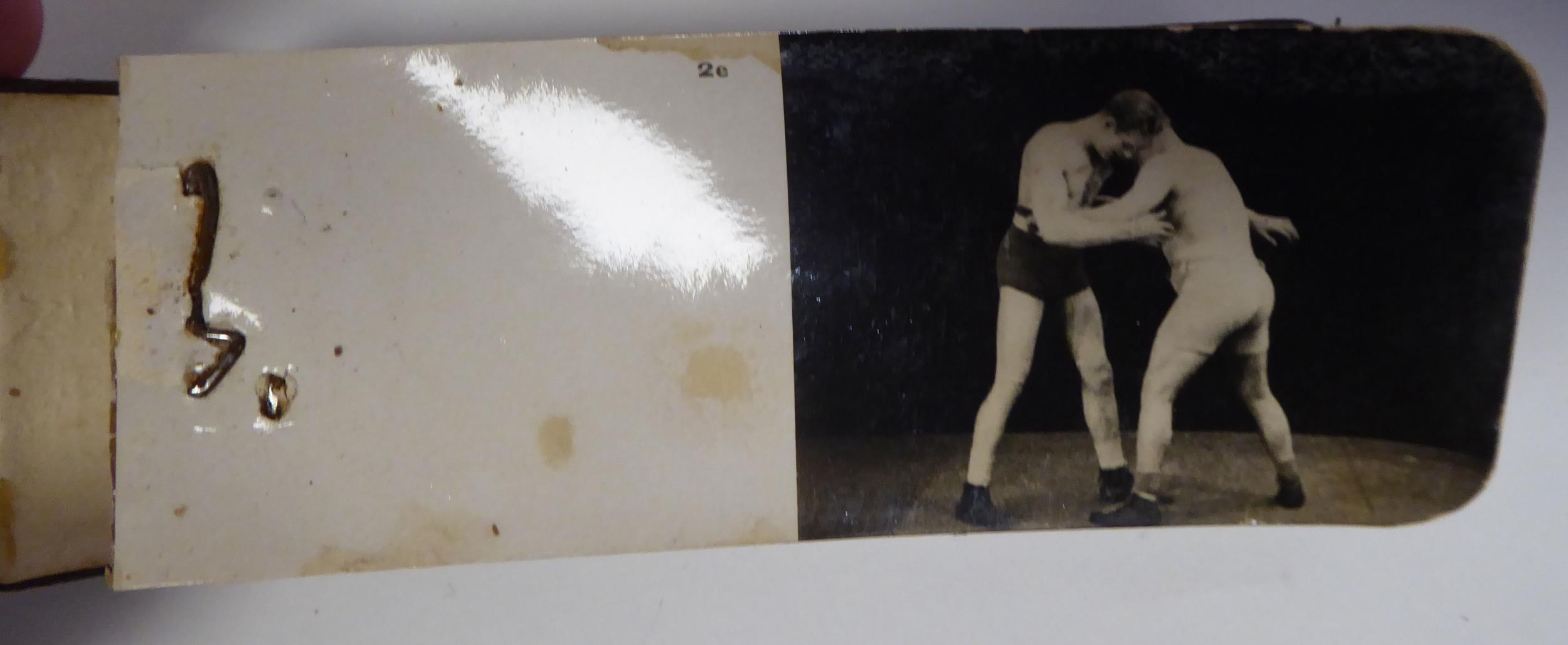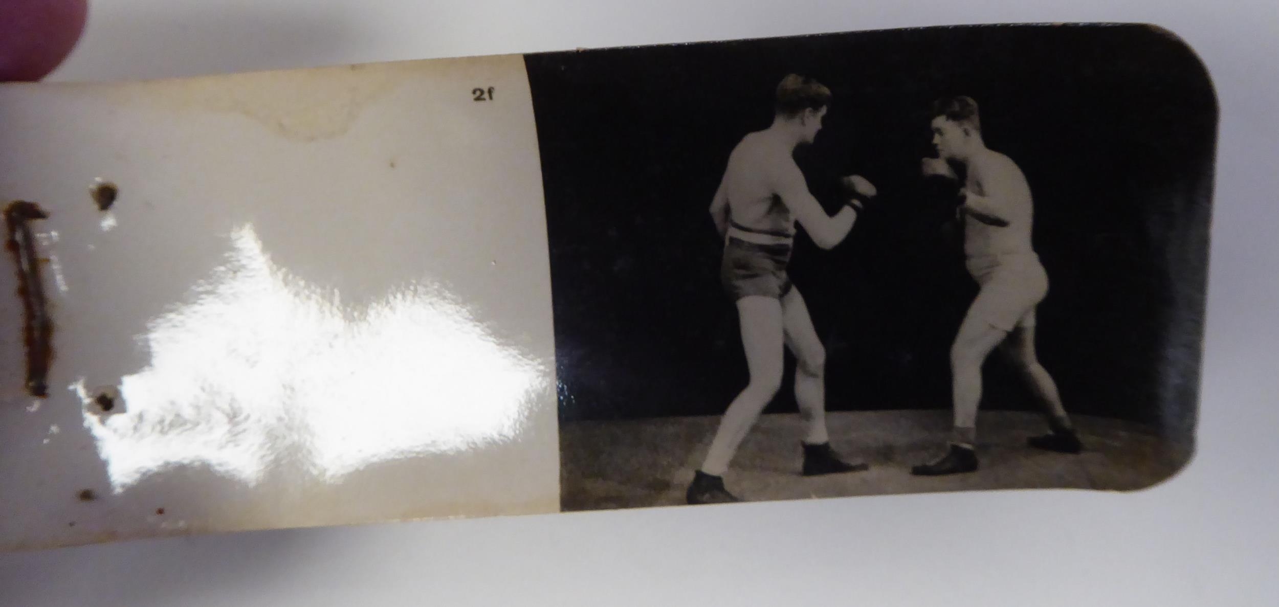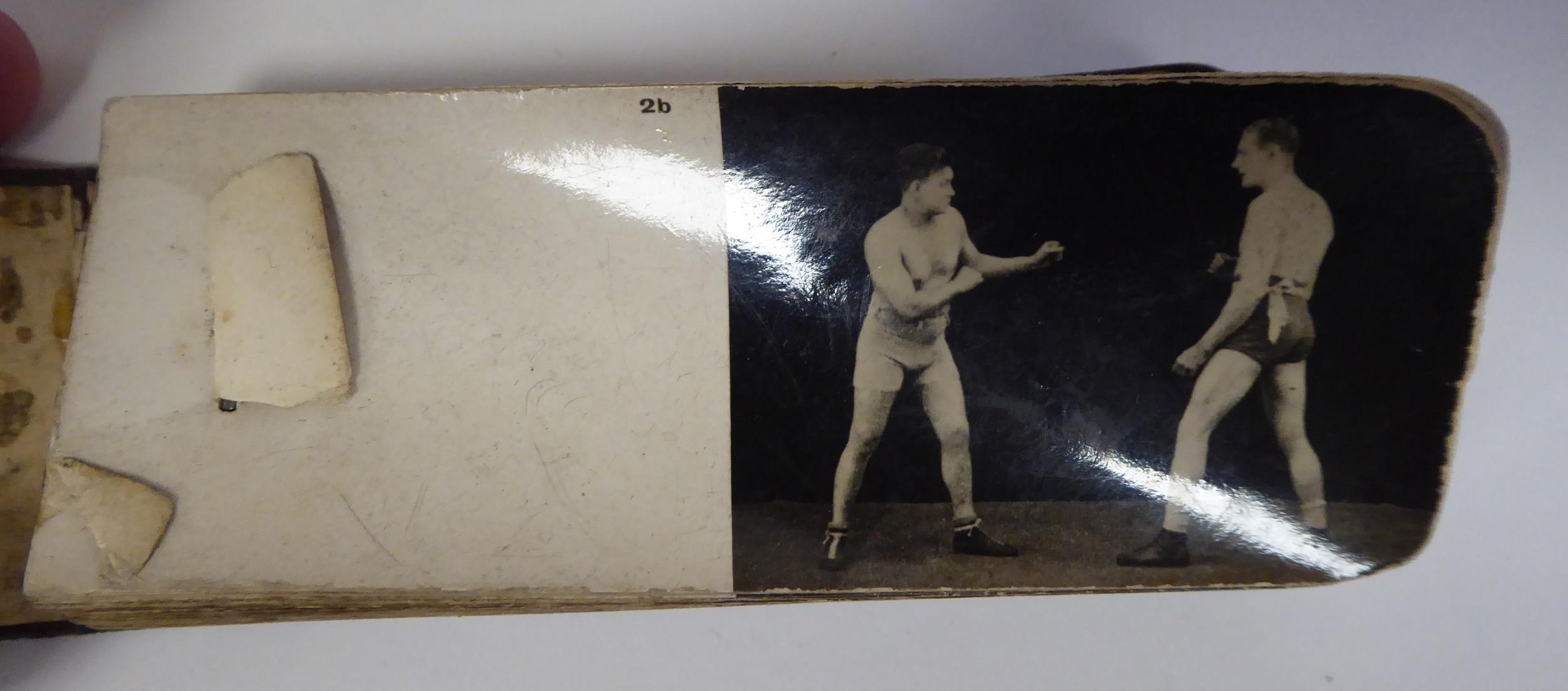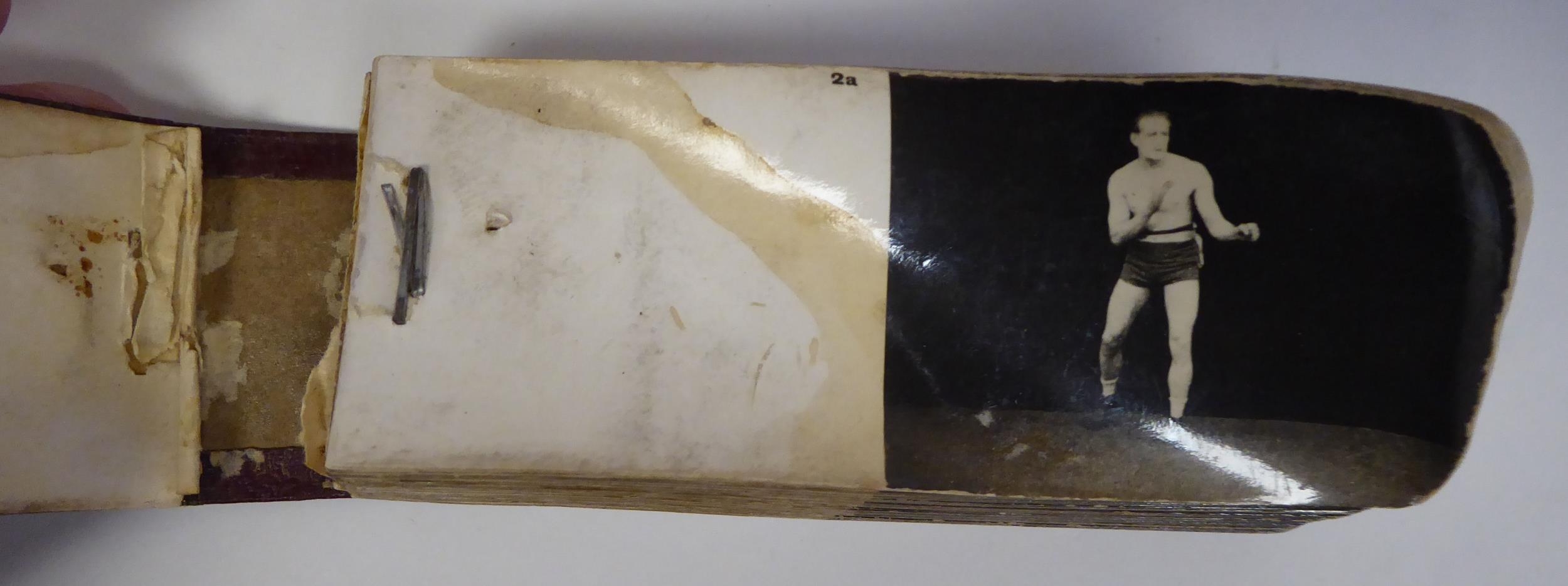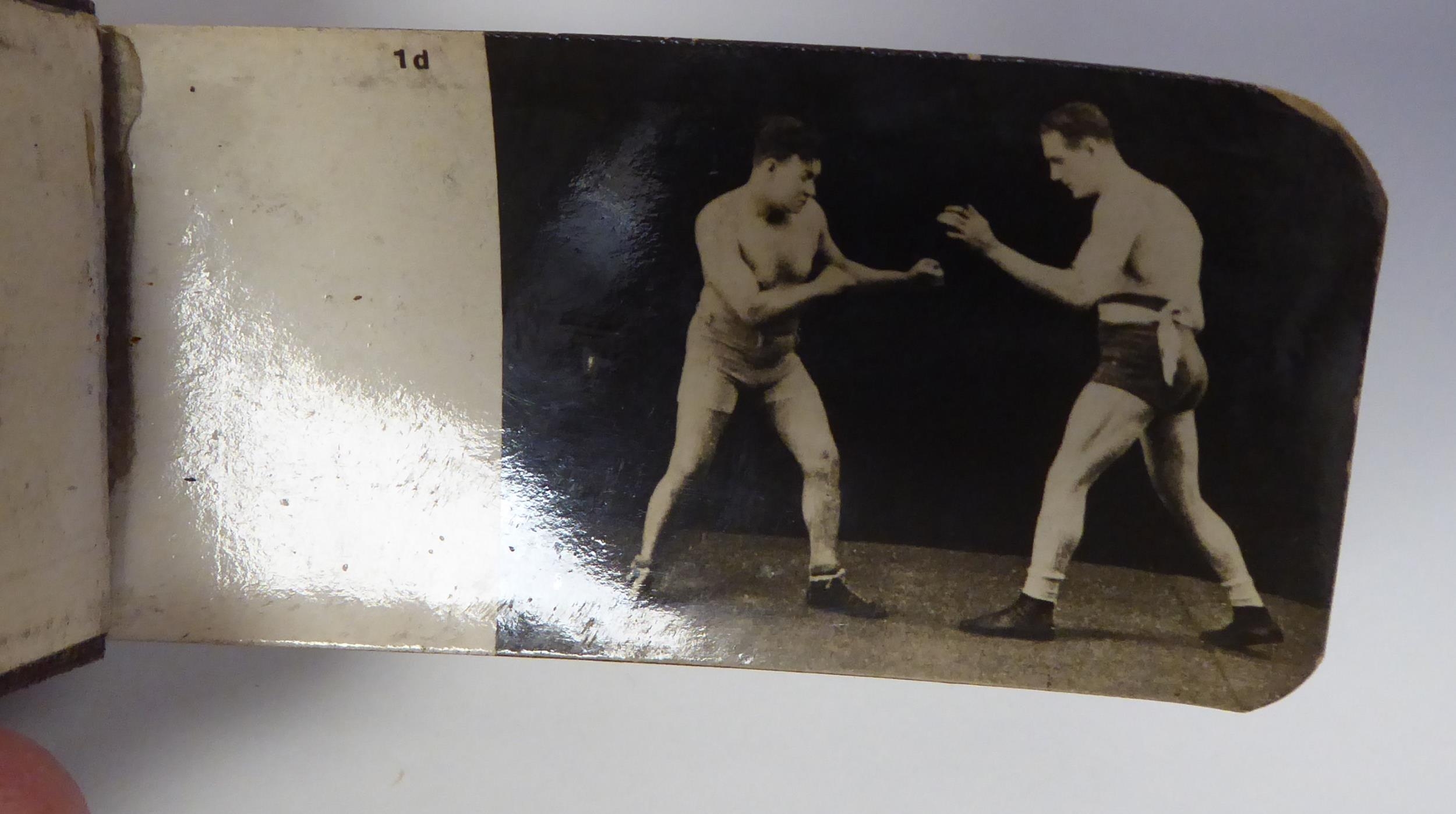 A series of six early 20thC monochrome photographic 'Boxing Course Lessons', in the form of flicker books, featuring William Thomas Wells, better known as 'Bombardier Billy Wells, British Empire Champion Heavyweight Boxer (1889-1967)'