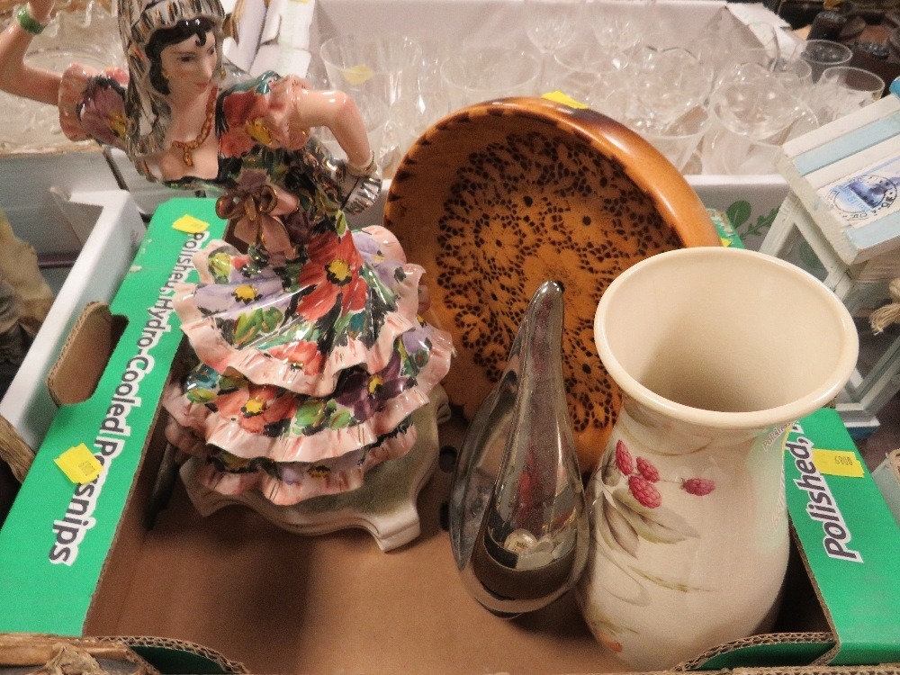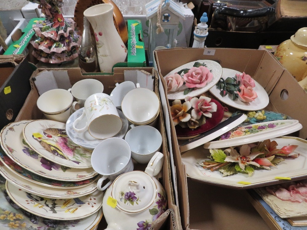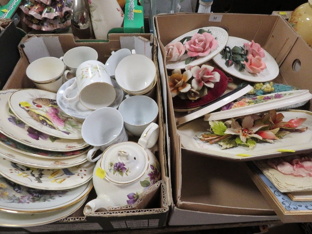 Three trays to include 3d floral ceramics, cups and plates and sundries (3)