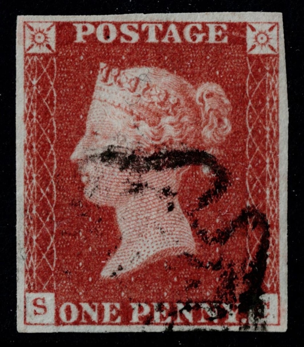 GB 1841 1d red black plate 5 SC STATE TWO superb used with four even margins and a light cross sg7 Spec.AS32 Cat. £500