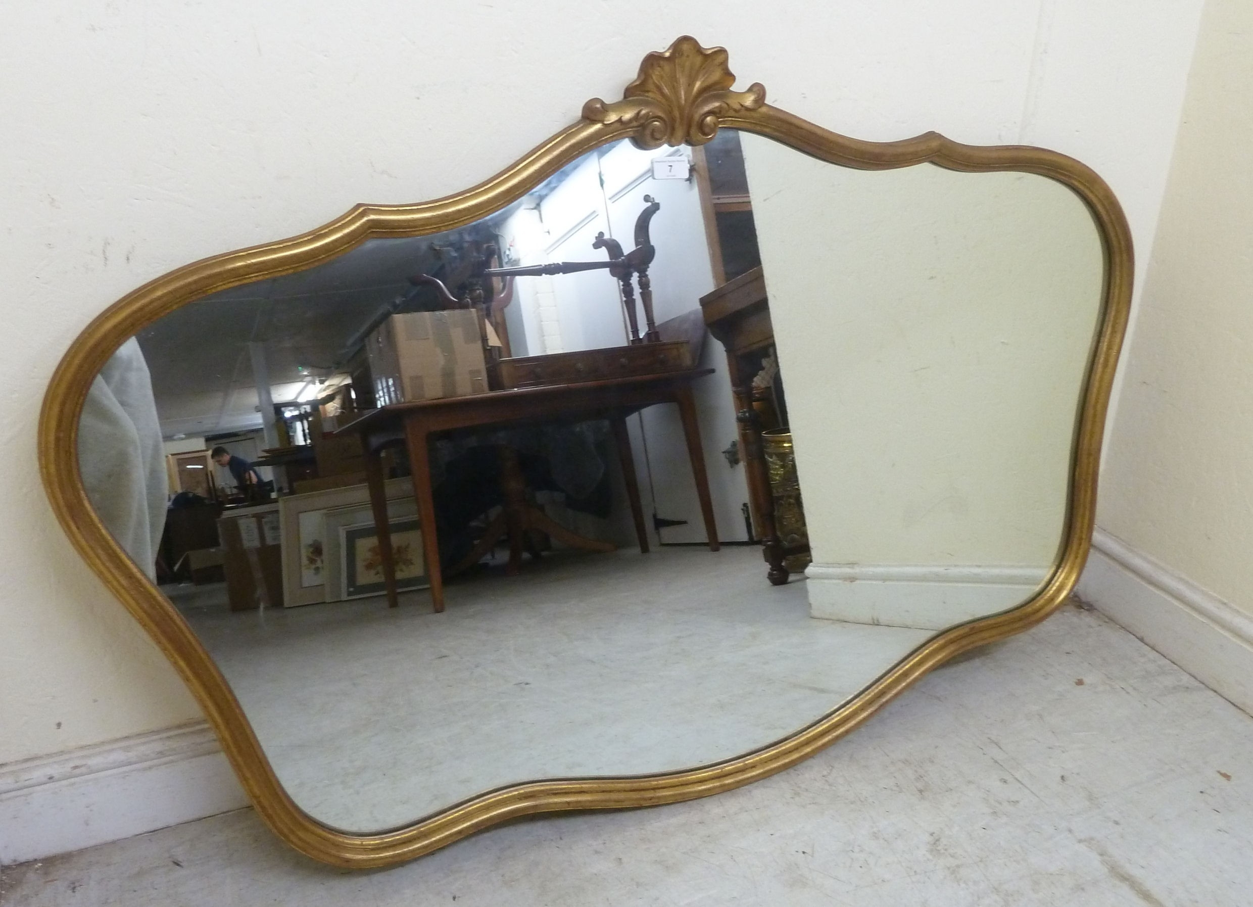 A modern Continental inspired mirror, the shaped plate in a shell and C-scroll moulded gilt frame 32" x 50"