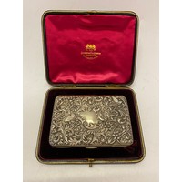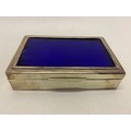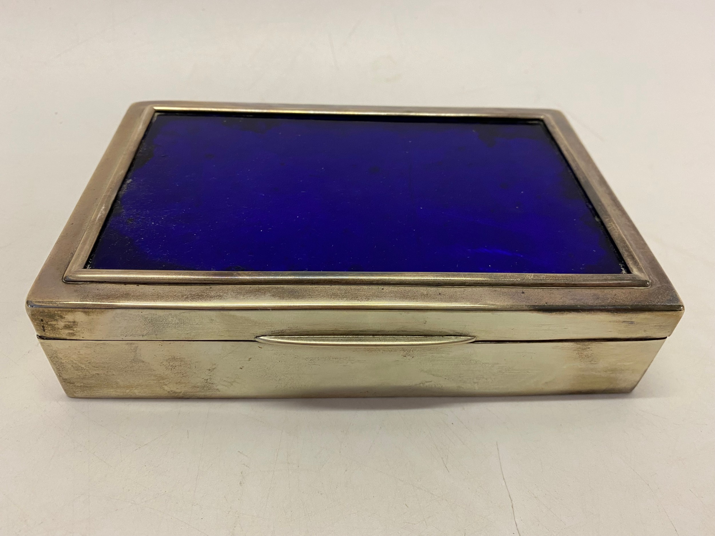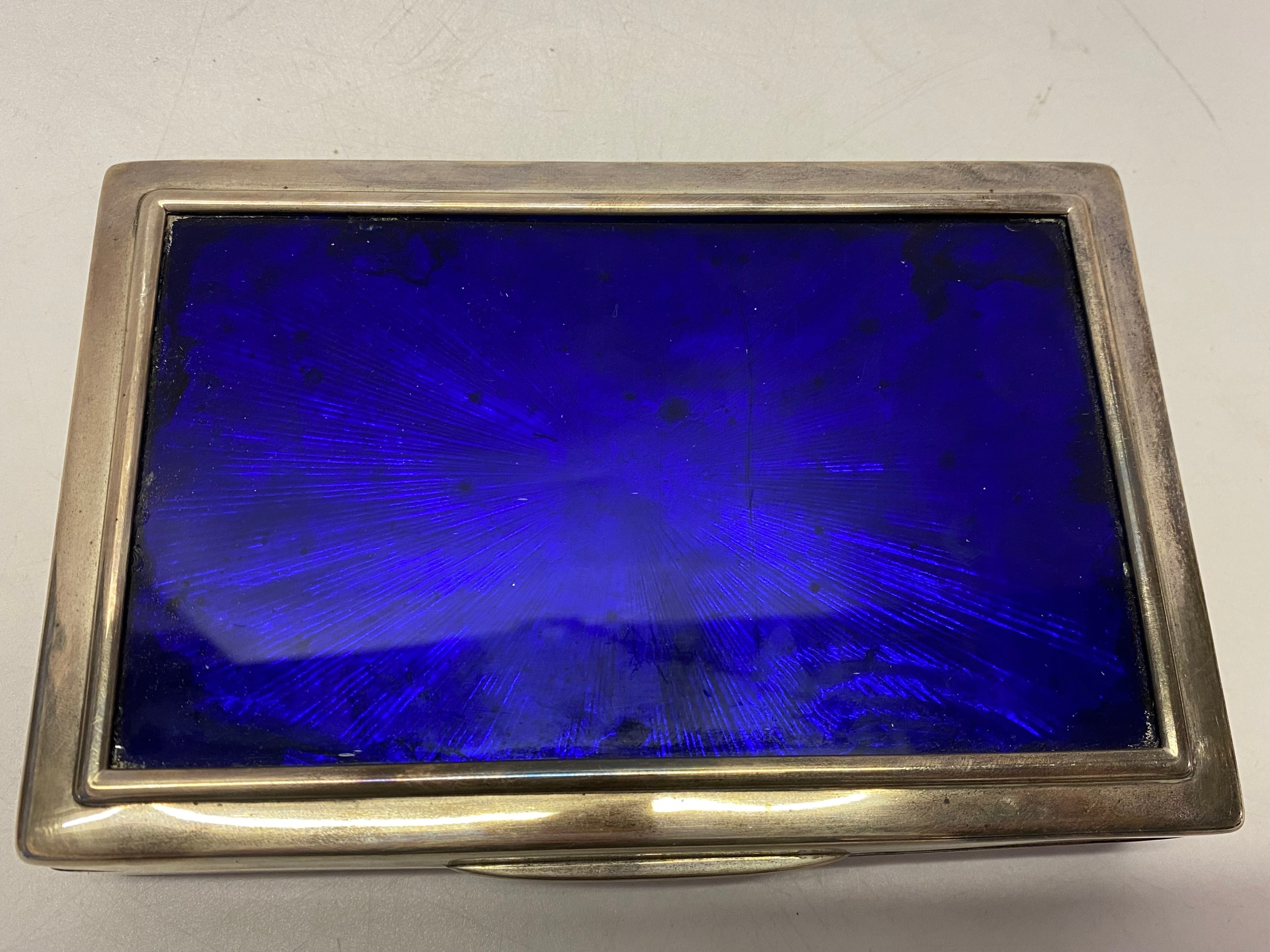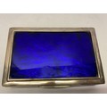A silver cigarette box with inset blue foil panel to the lid - London 1901 - 6 3/4in. x 4 1/2in. x 1 3/4in.