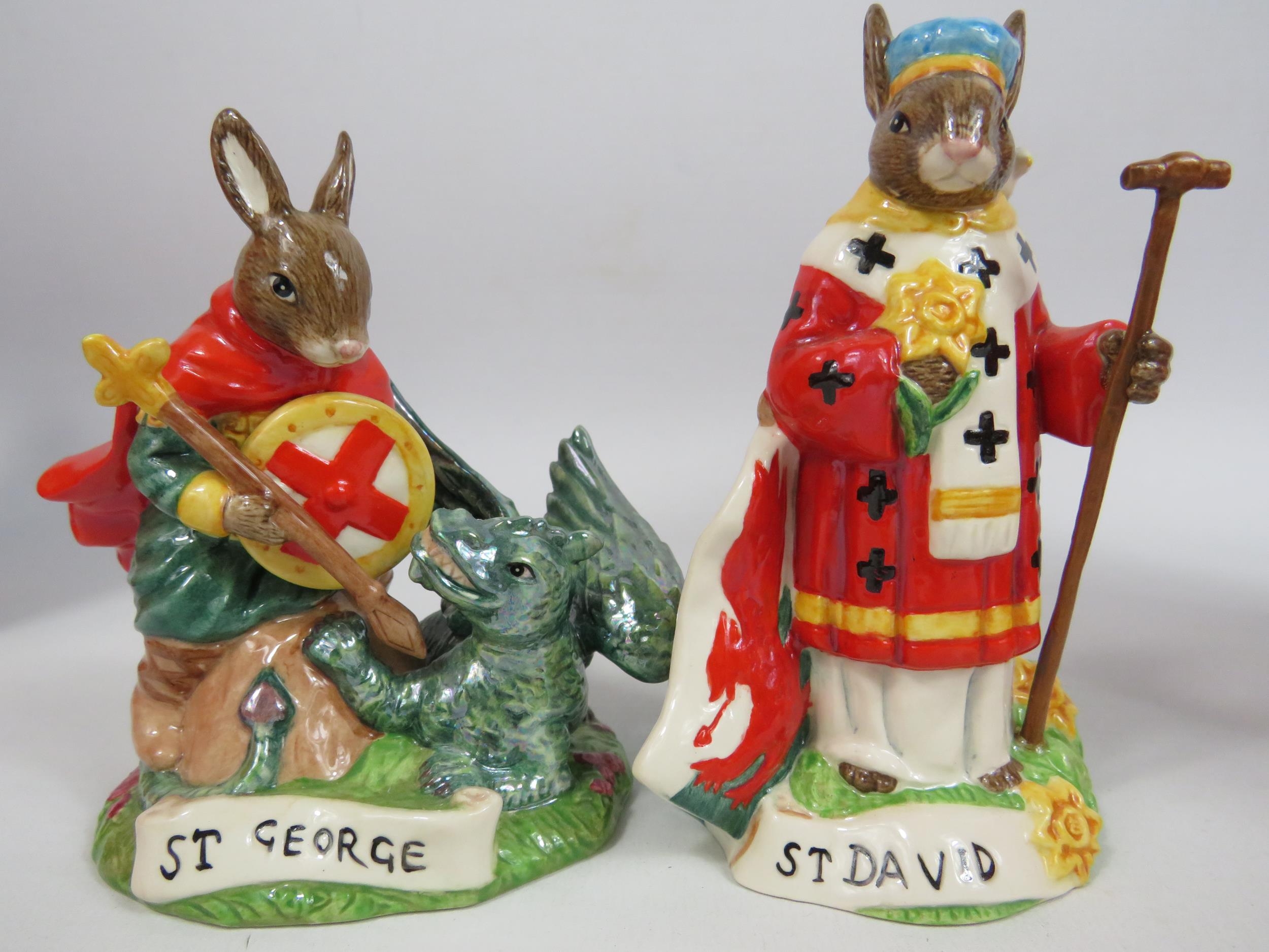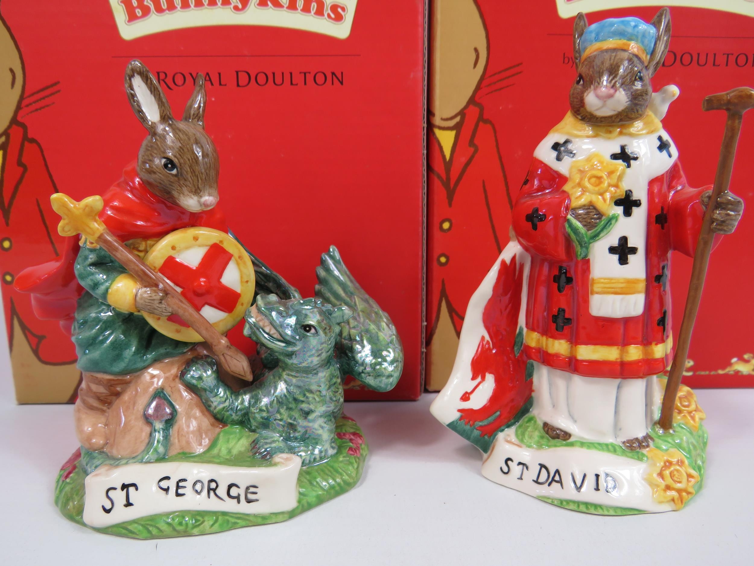 2 Royal Doulton Bunnykins Limited edition figurines, St George 153 of 1000 and St David 144 of 1000 both with boxes.