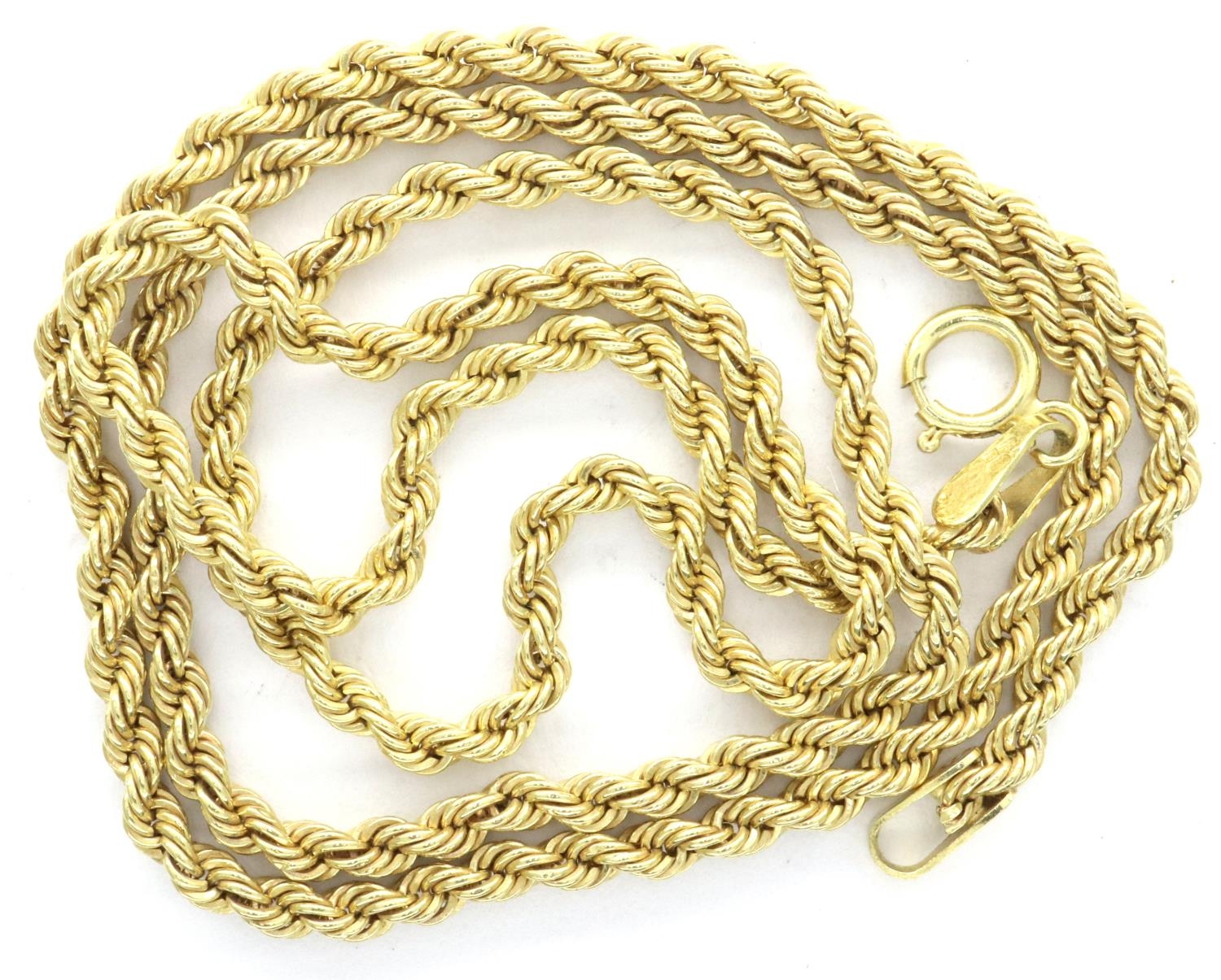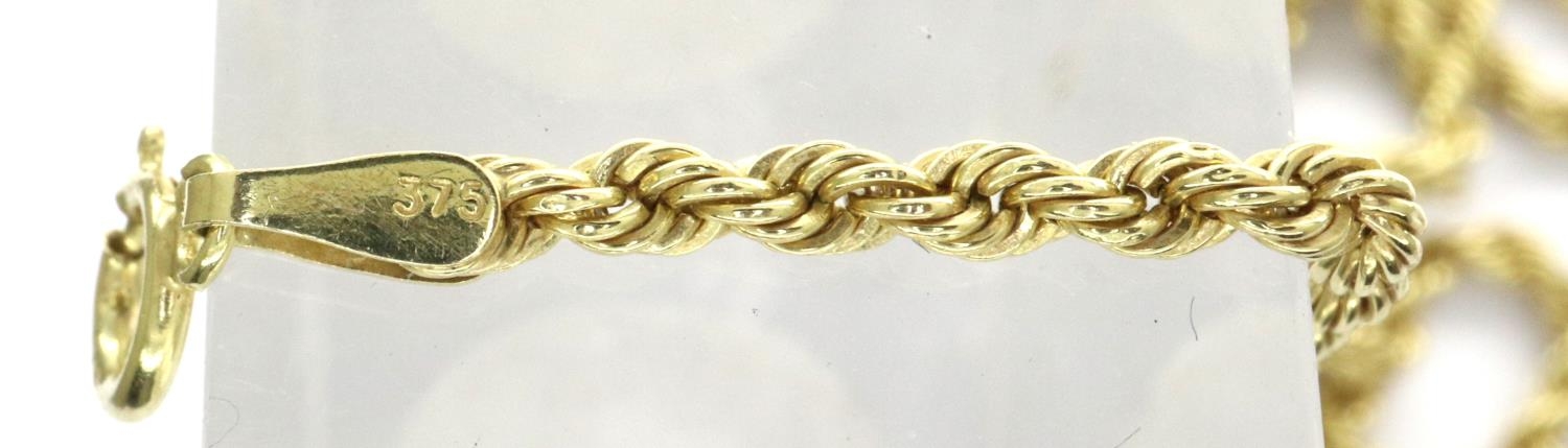 9ct gold fine rope neck chain, L: 35 cm, 1.8g. P&P Group 1 (£14+VAT for the first lot and £1+VAT for subsequent lots)