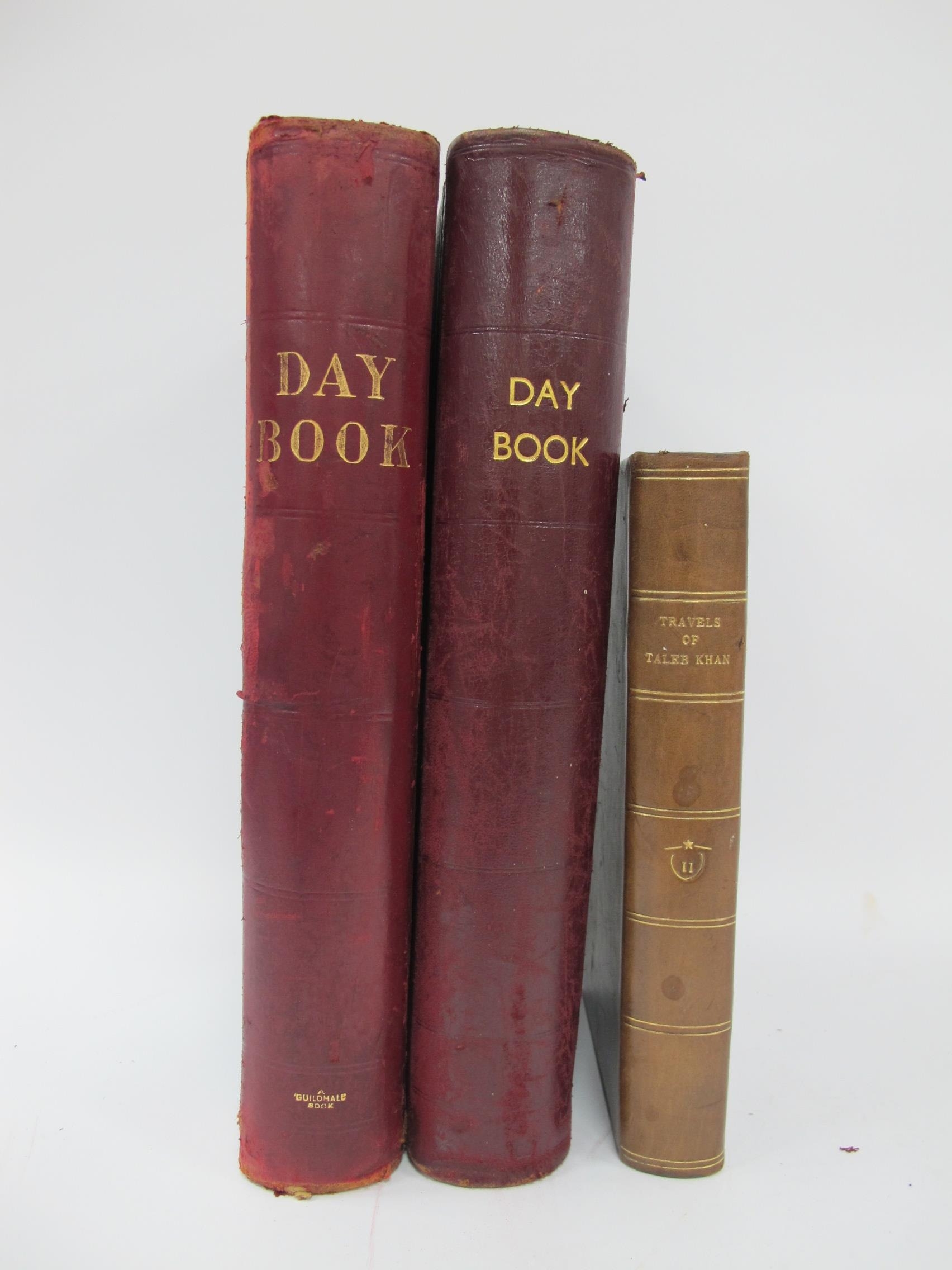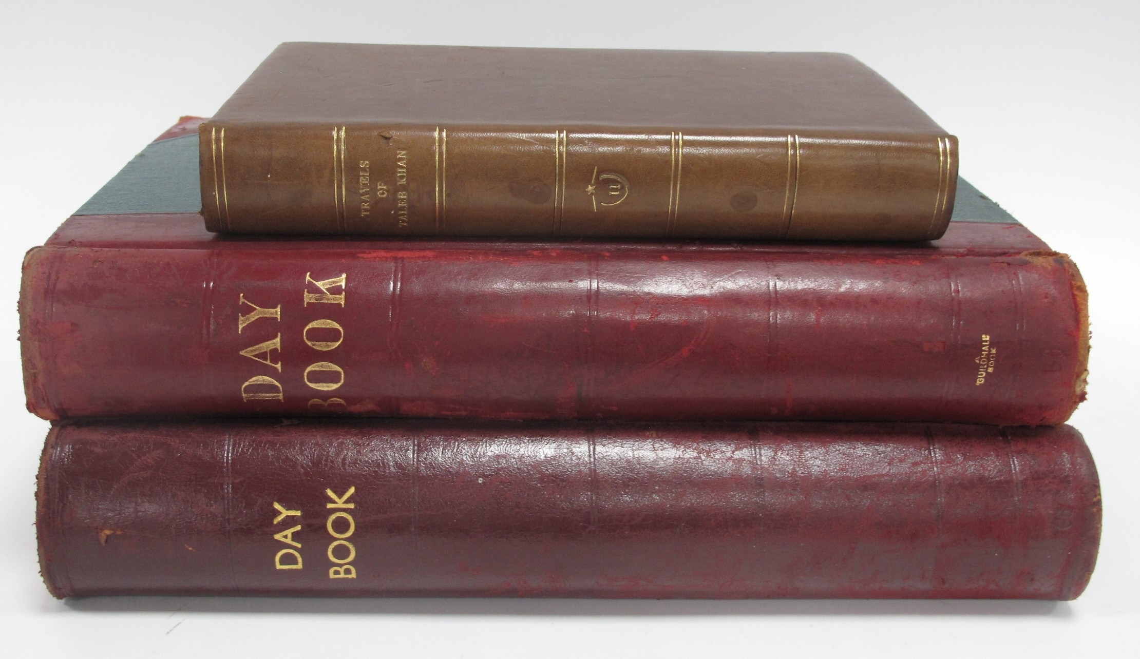 A Pair of Red Leather Bound Mid XX Century "Day Books", plus a leather bound copy of "The Travels of Taleb Khan 1810".