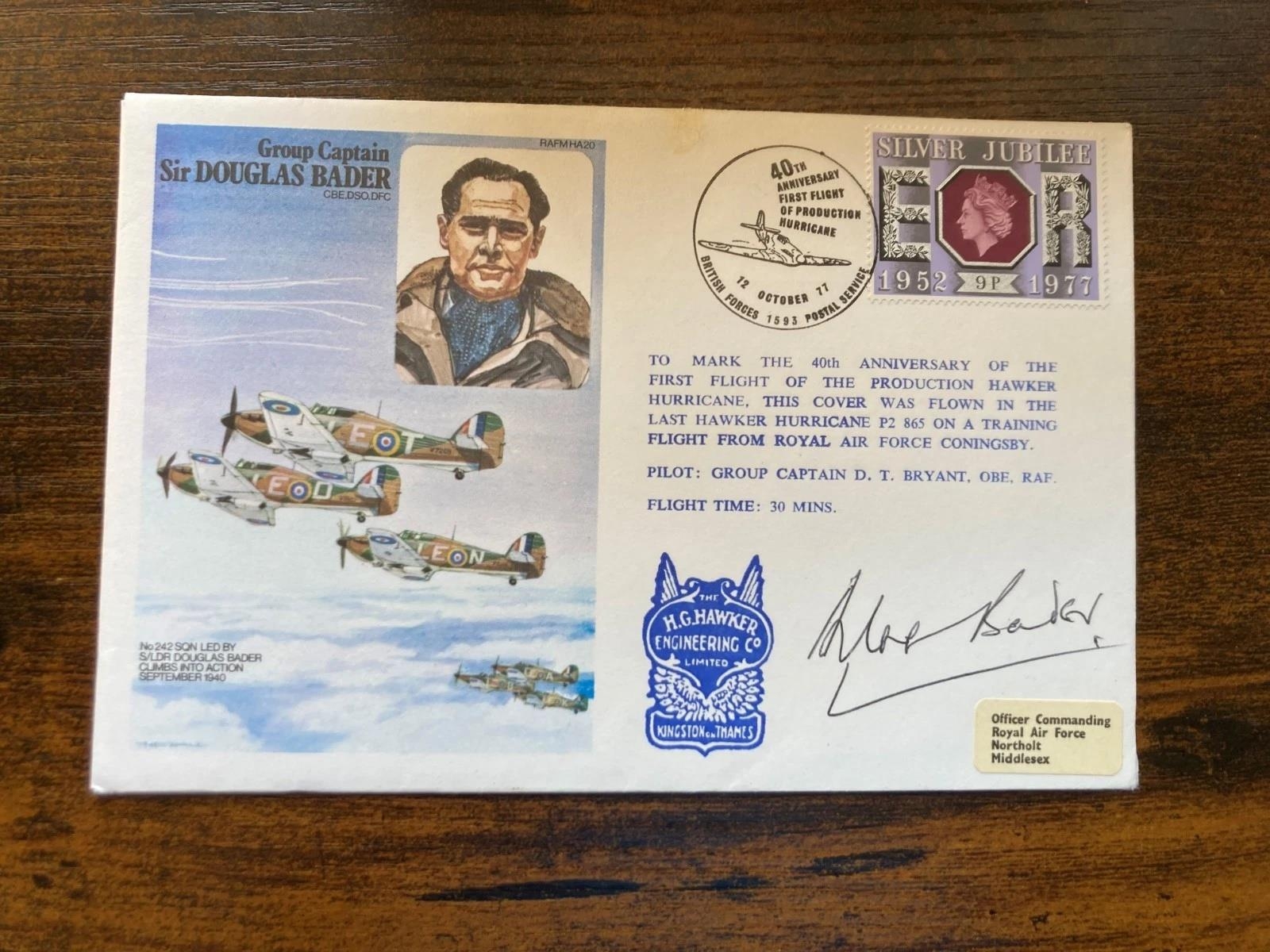 WW2 Sir Douglas Bader DSO DFC signed on his own Historic Aviators cover. The legless Fighter pilot CO 242 Hurricane Squadron during the Battle of Britain, shot down in 1941 and taken prisoner, escaped was recaptured and sent to Oflag 7c Colditz Castle until released by the US Army in 1945. Good condition. All autographs come with a Certificate of Authenticity. We combine postage on multiple winning lots and can ship worldwide. UK postage from £5.99, EU from £7.99, Rest of World from £9.99