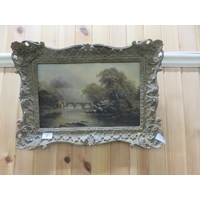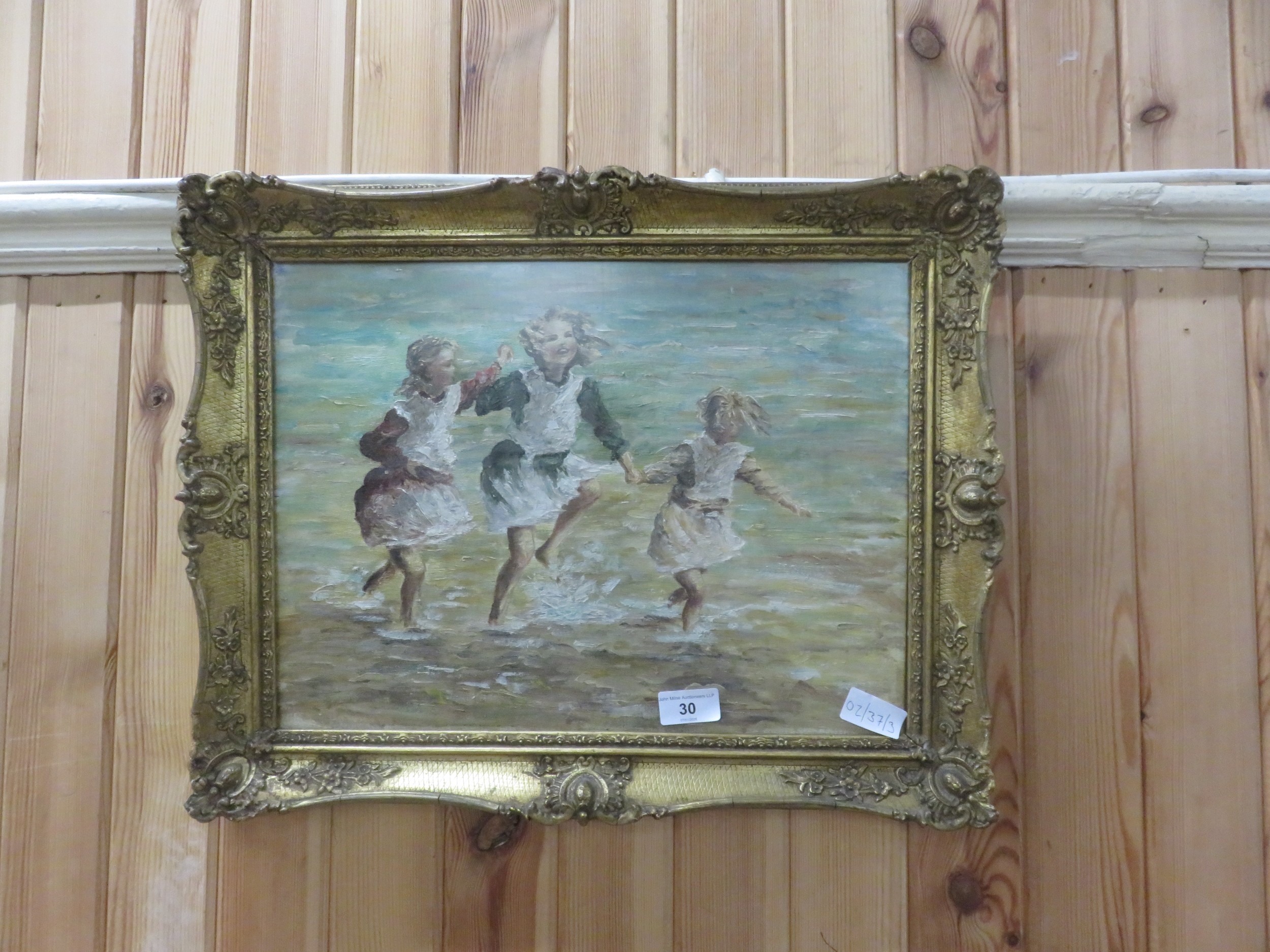 Gilt Framed Oil Painting "Frolicking on the Beach", attributed to William Marshall Brown, 30 x 40 cm.