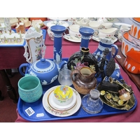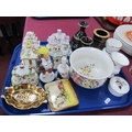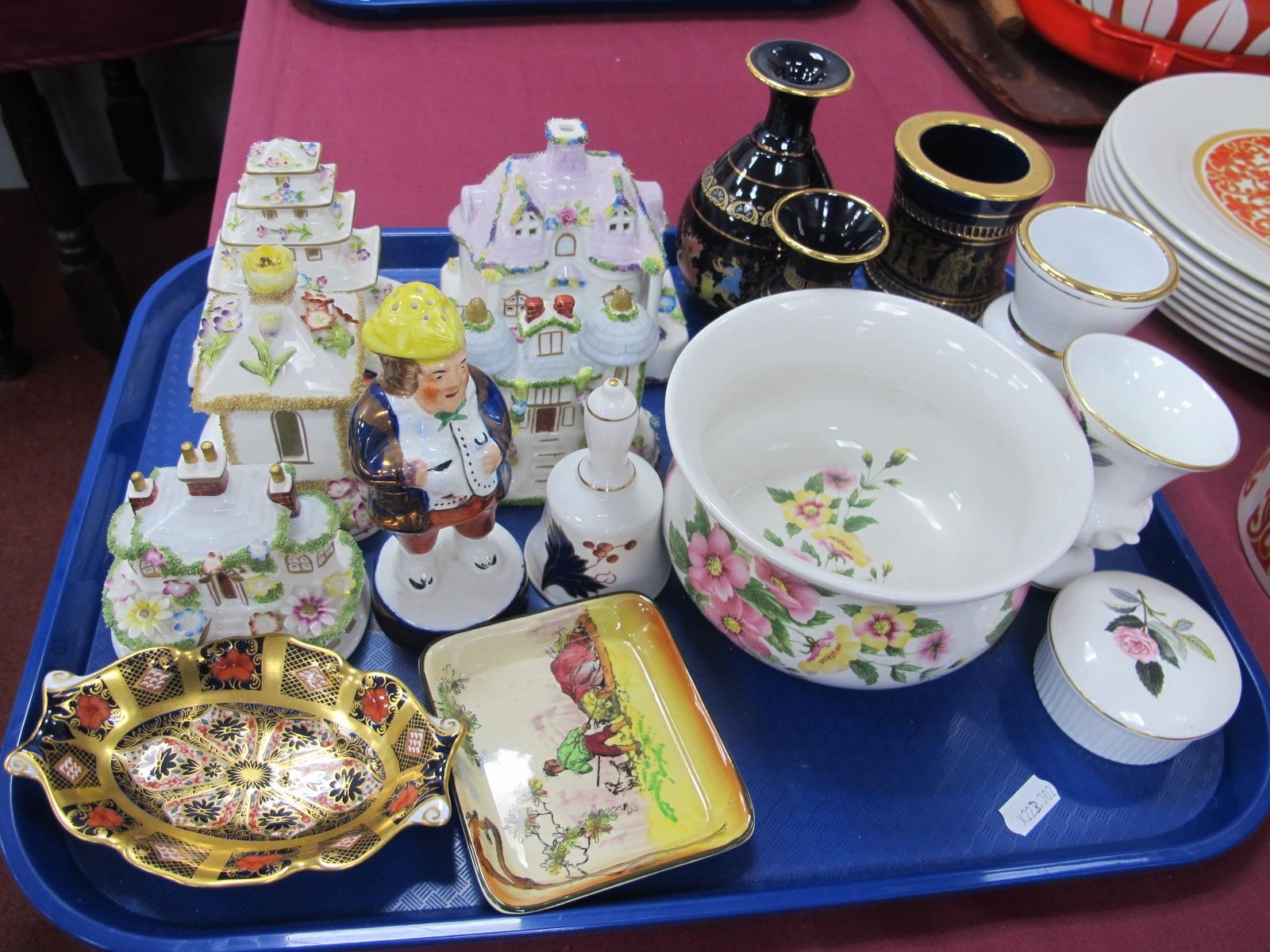 Royal Crown Derby Imari 1128 Pattern Dish, 13.5cm wide (second quality). Five Coalport properties, Portmeirion chamber pot, Allerton's pepper pot, Wedgwood, Doulton, and Greek ceramics:- One Tray.