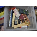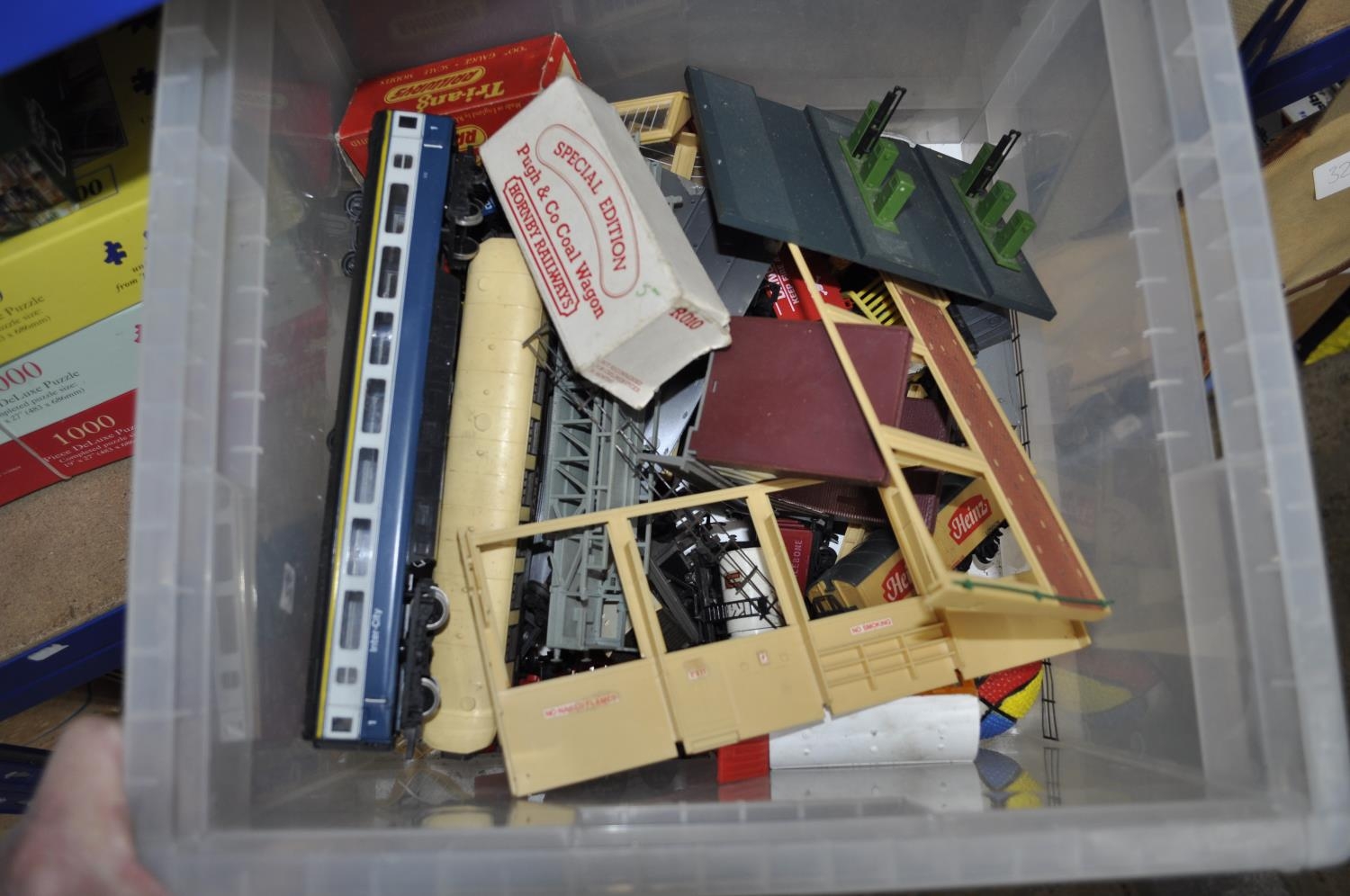 BOX OF ASSORTED TRAIN CARRIAGES AND BUILDINGS
