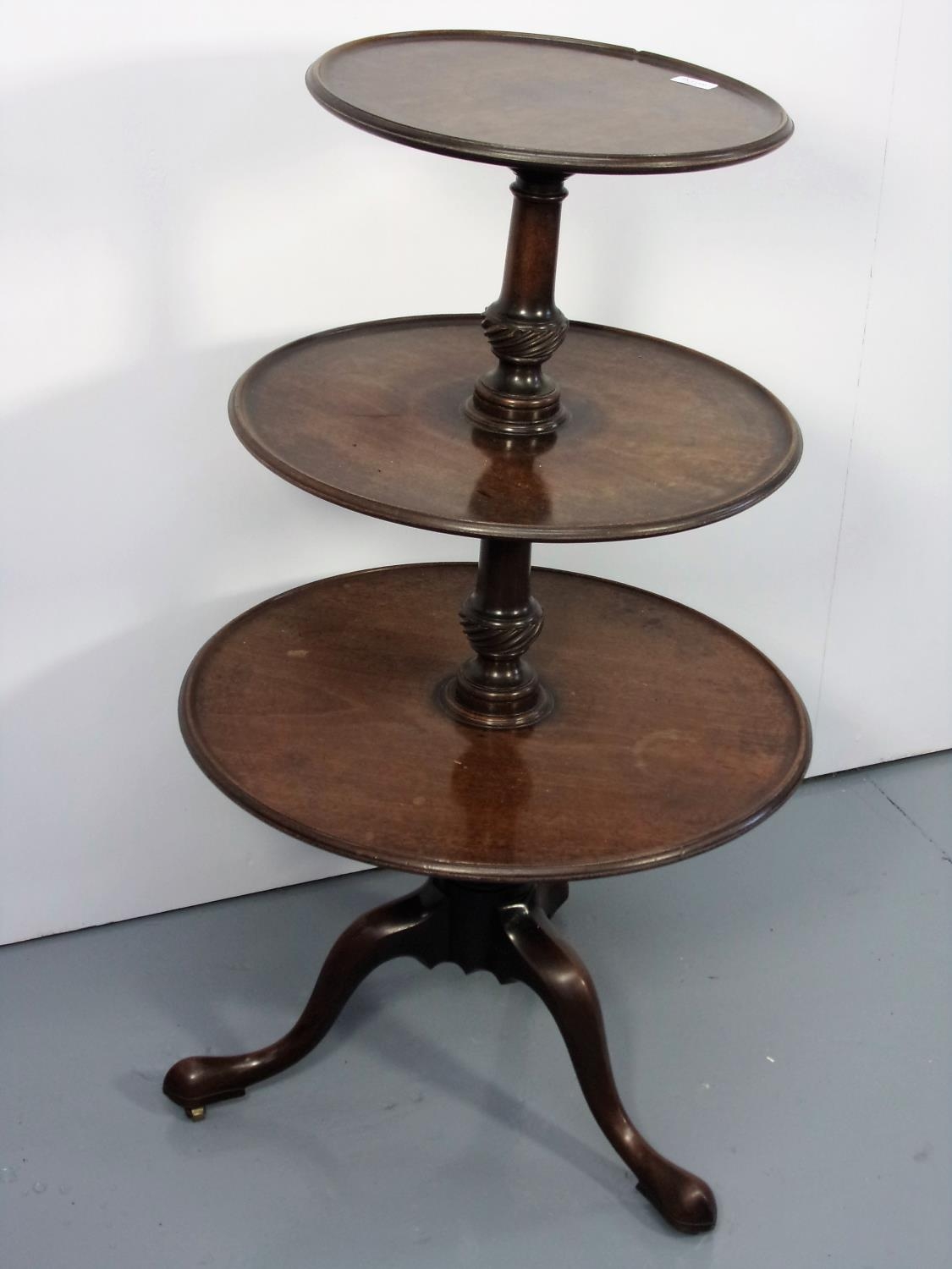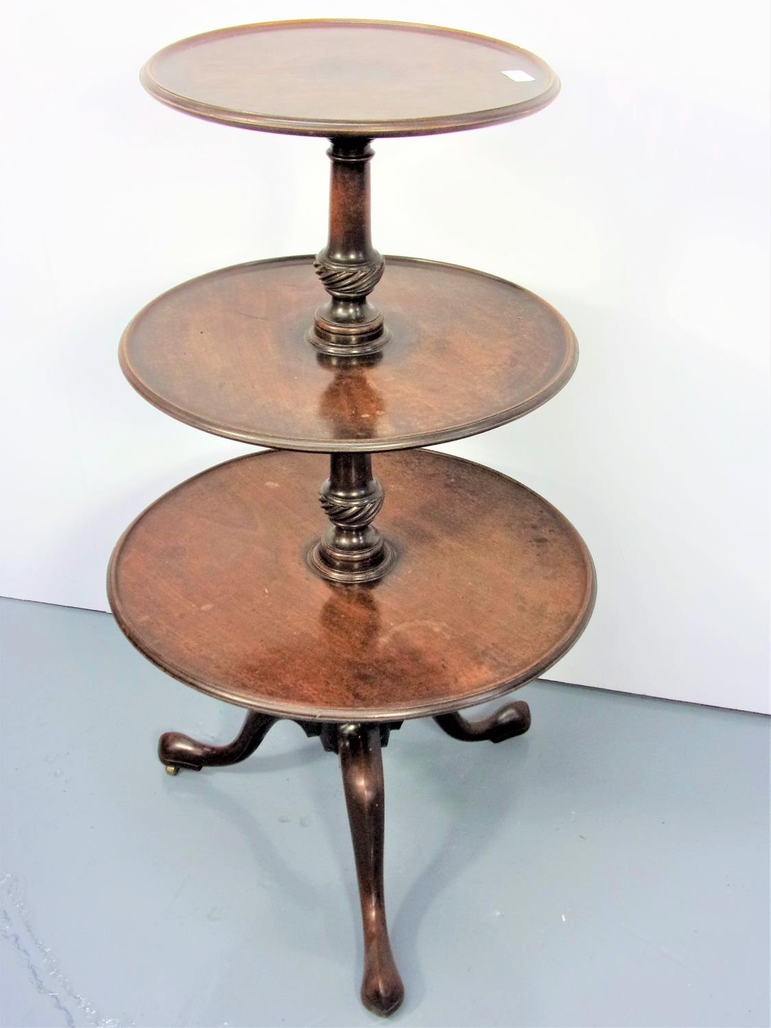 ROUND, 3 TIER MAHOGANY DUMB WAITER