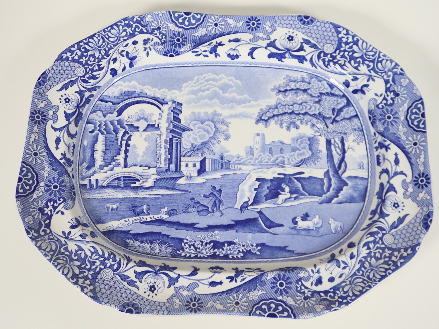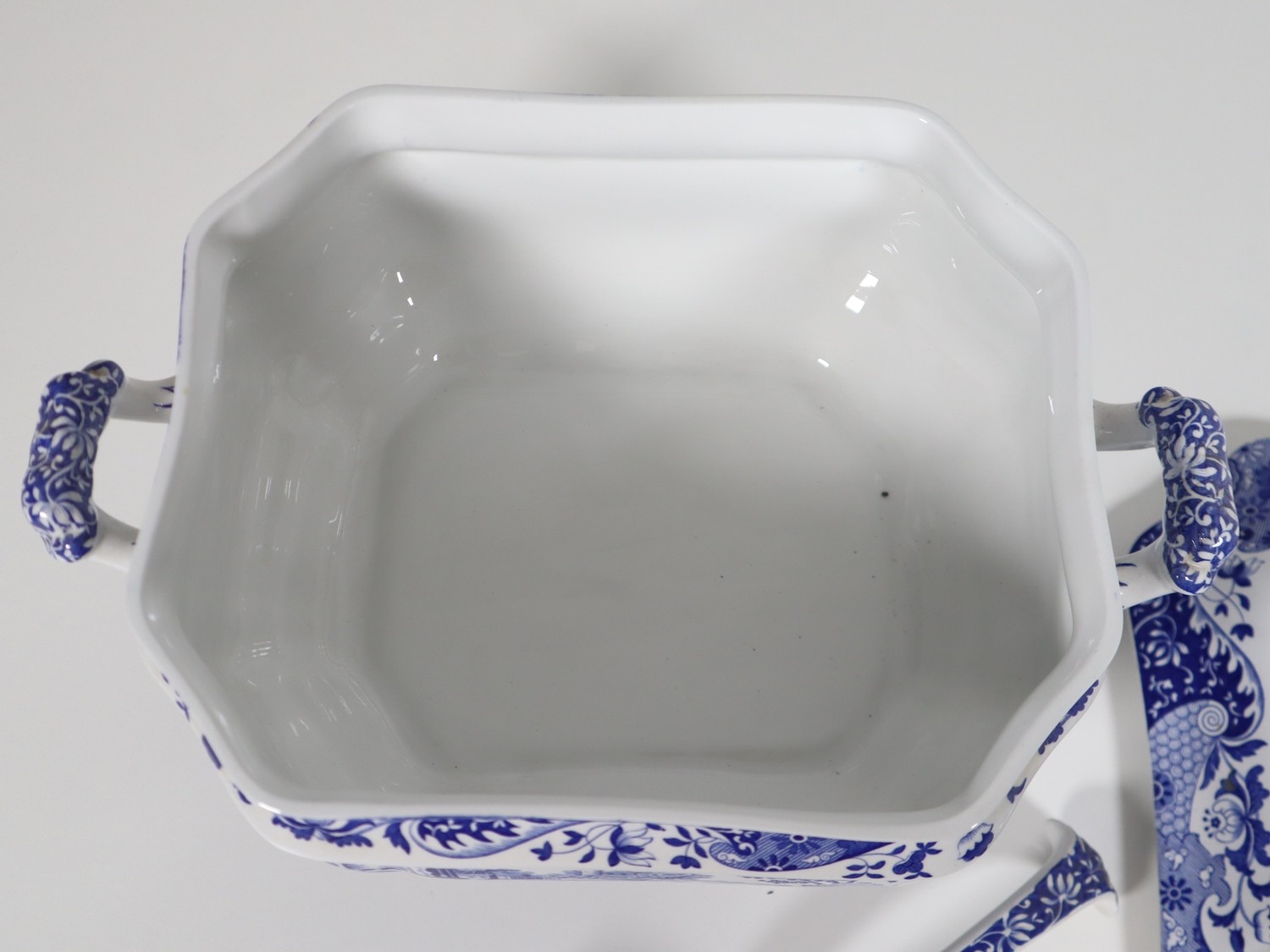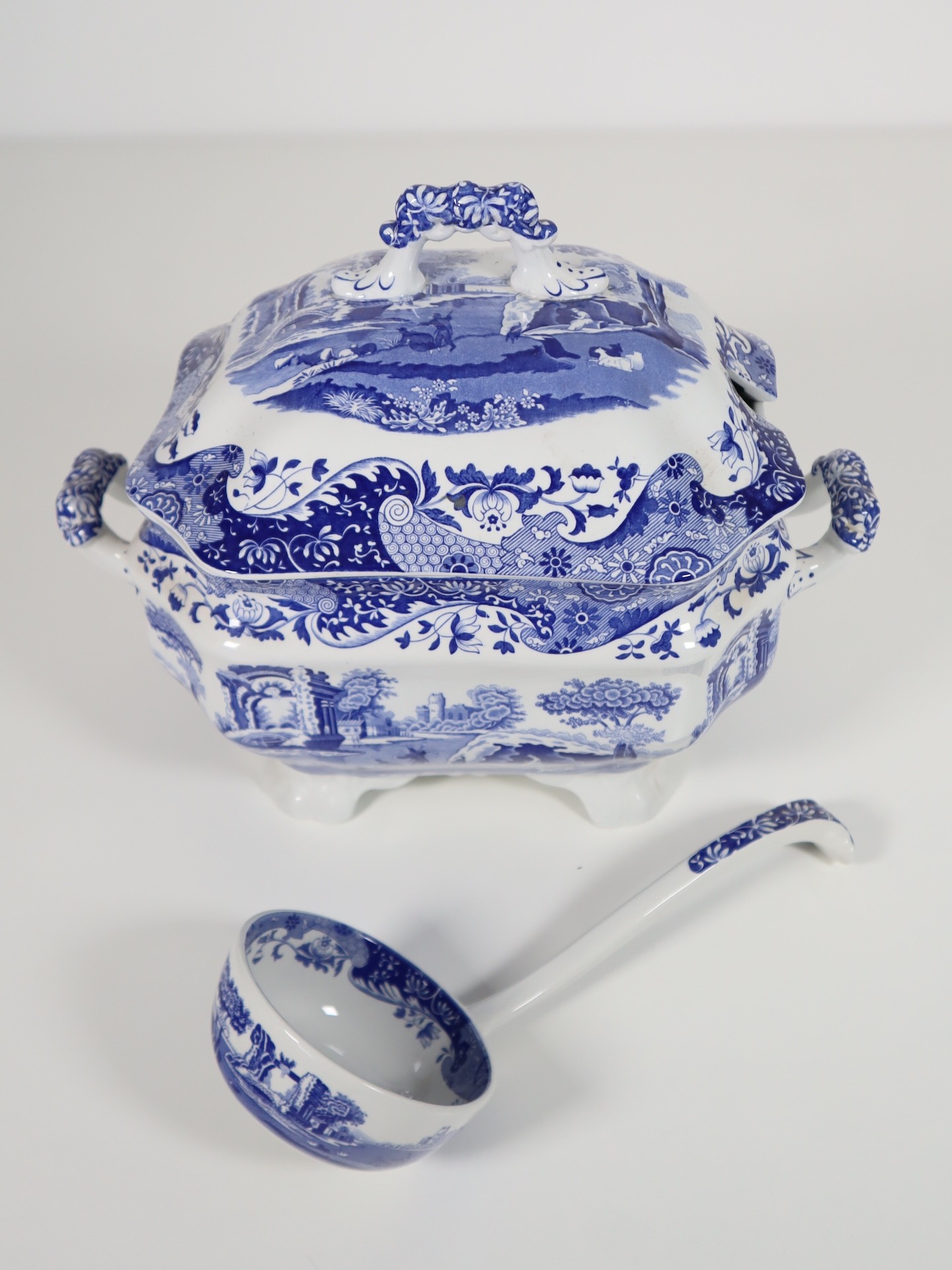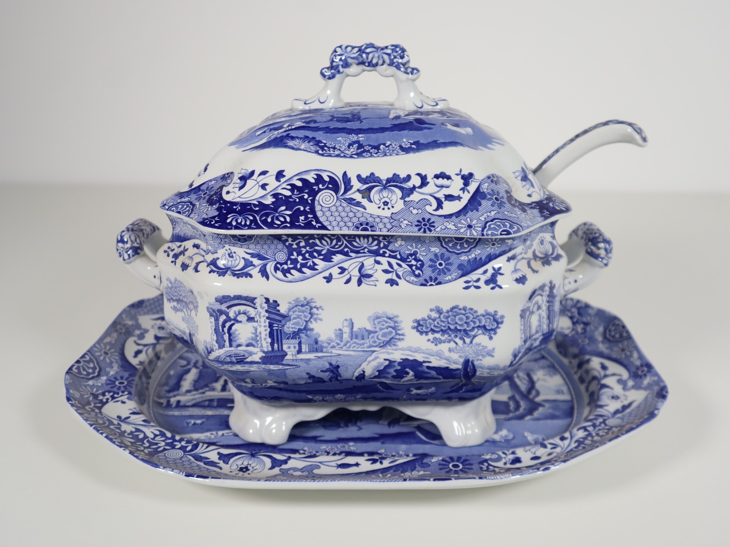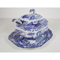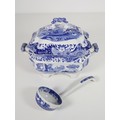 Large Spode Tureen with tray and ladle, Italian Spode Design c1816 Blue & White late 20th century (tray 41cm, tureen 34cm)