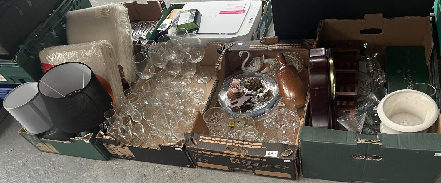4 Boxes containing a thermal fleece mattress protector, assorted glassware and James Joyce audio tapes etc