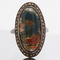CABOCHON QUARTZ RING, set with a cabochon surrounded with marcasite. Size N. 6.8 grams.