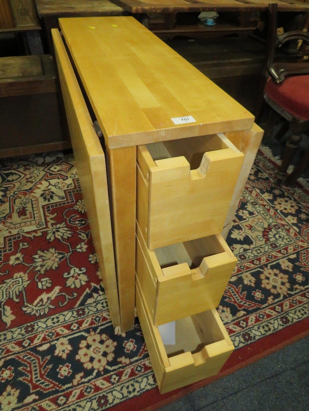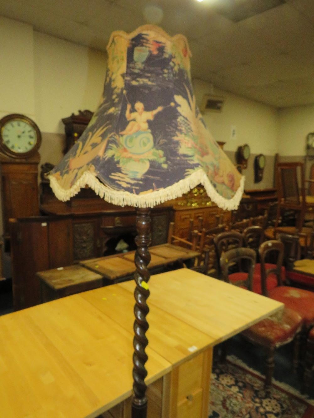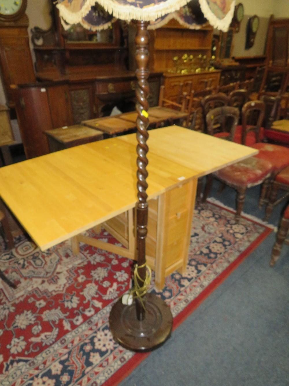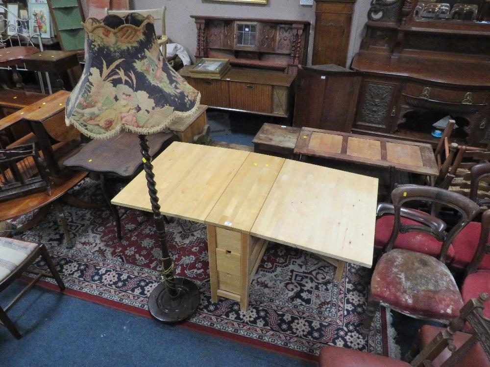 A MODERN DROPLEAF TABLE TOGETHER WITH A VINTAGE STANDARD LAMP AND SHADE