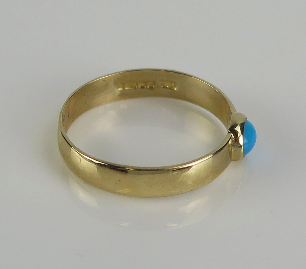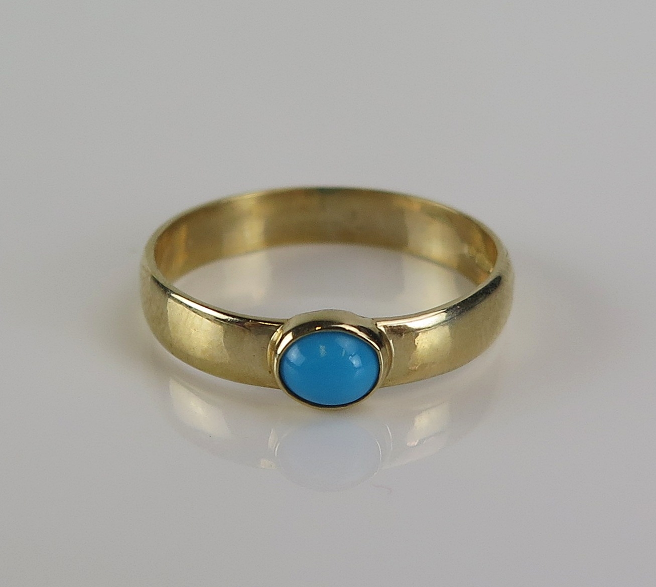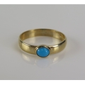 A turquoise ring in a 9ct yellow gold setting, size P, hallmarked, 1.77g