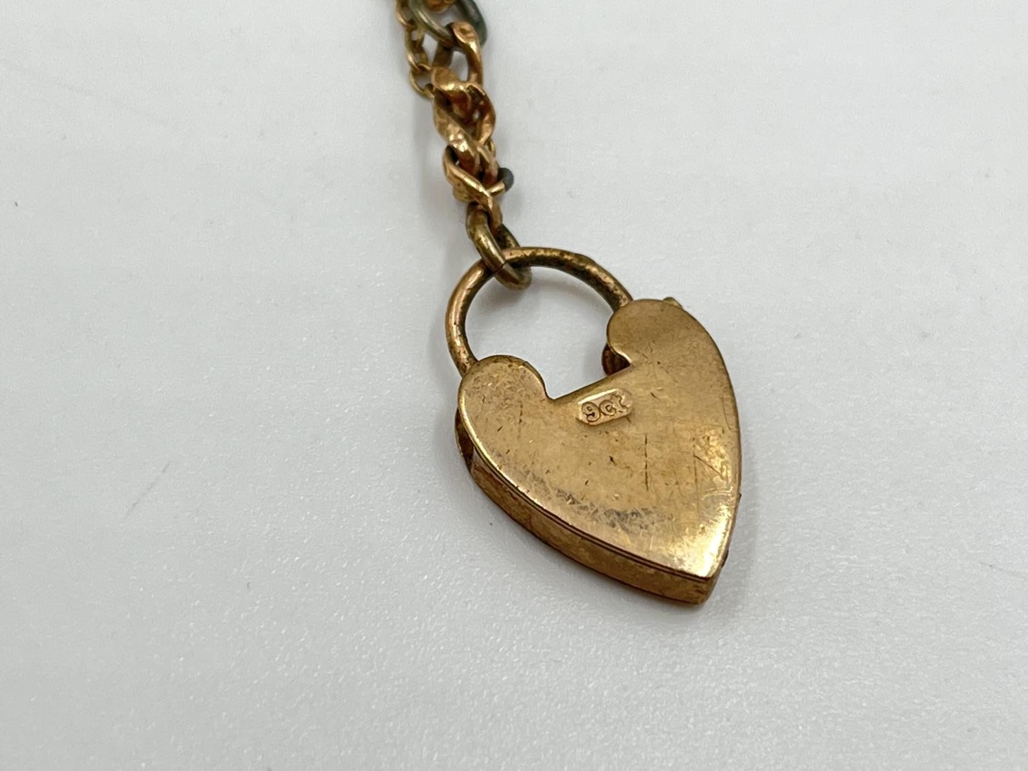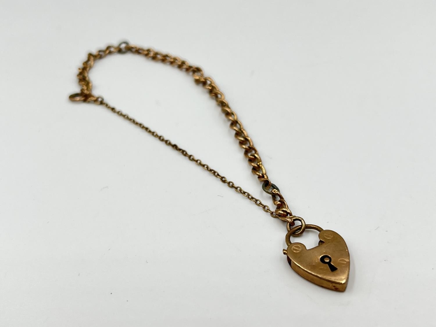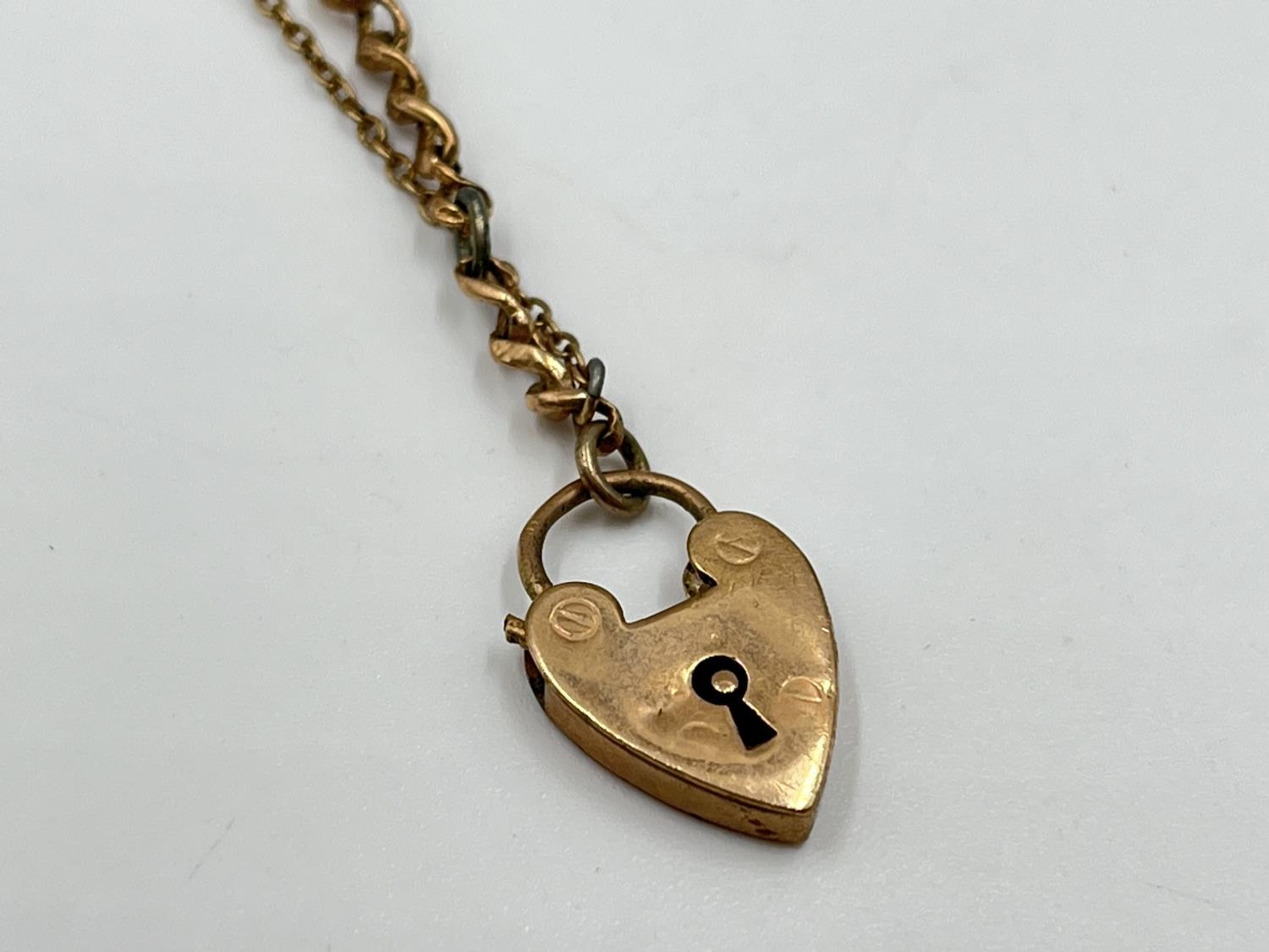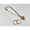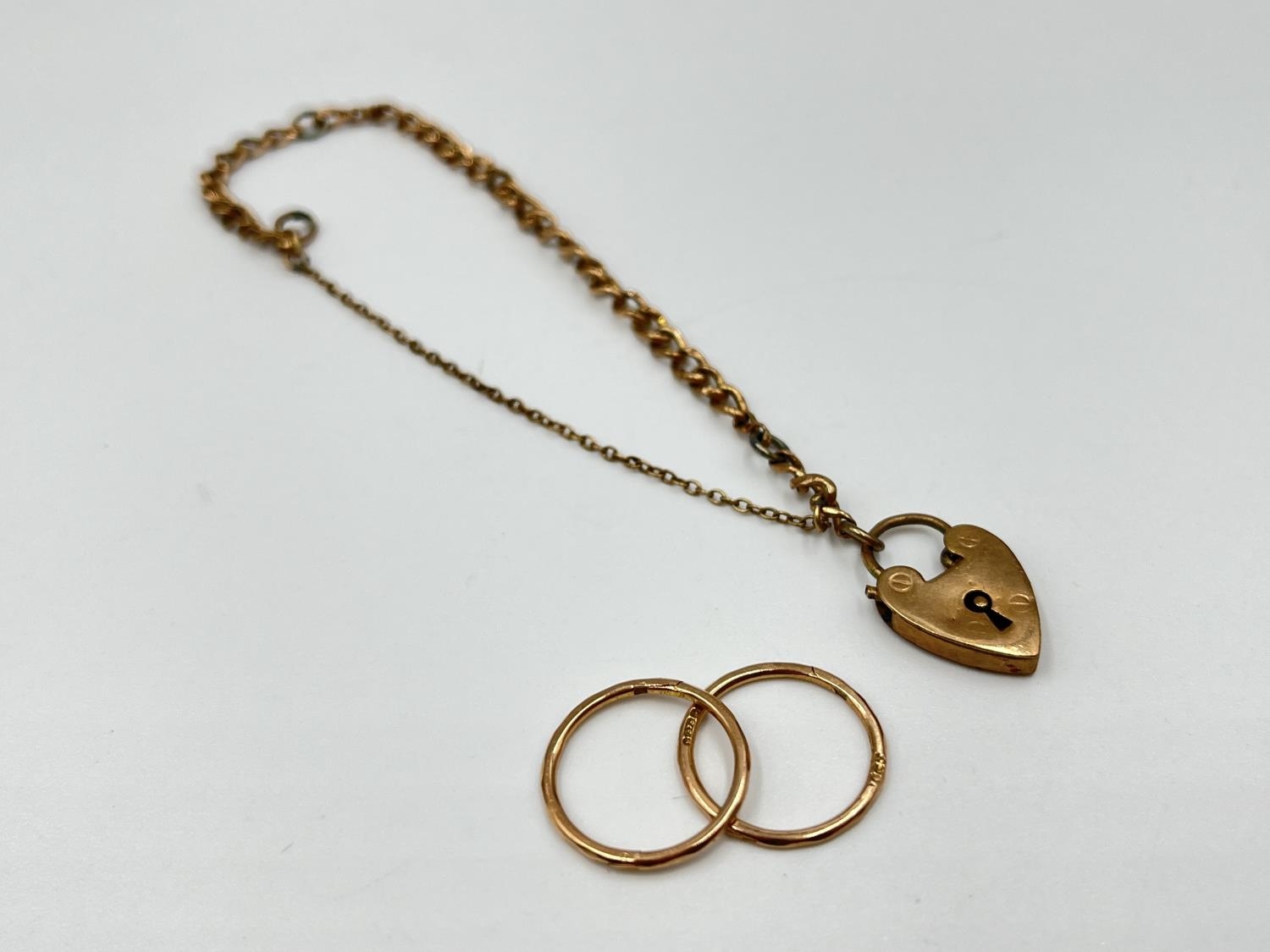 Two pieces of jewellery, one pair of 9ct gold earrings - approx. gross weight 1.1 grams and one 9ct gold heart shaped padlock clasp with yellow metal chain - approx. gross weight 2.4 grams