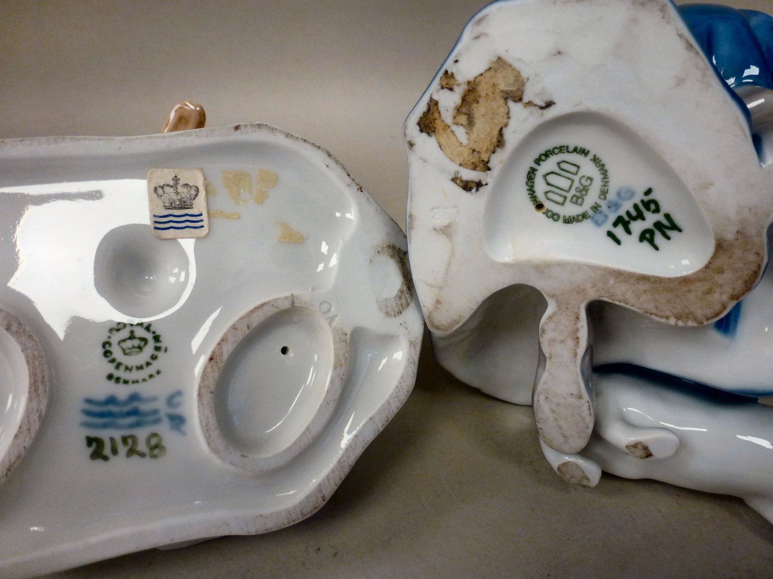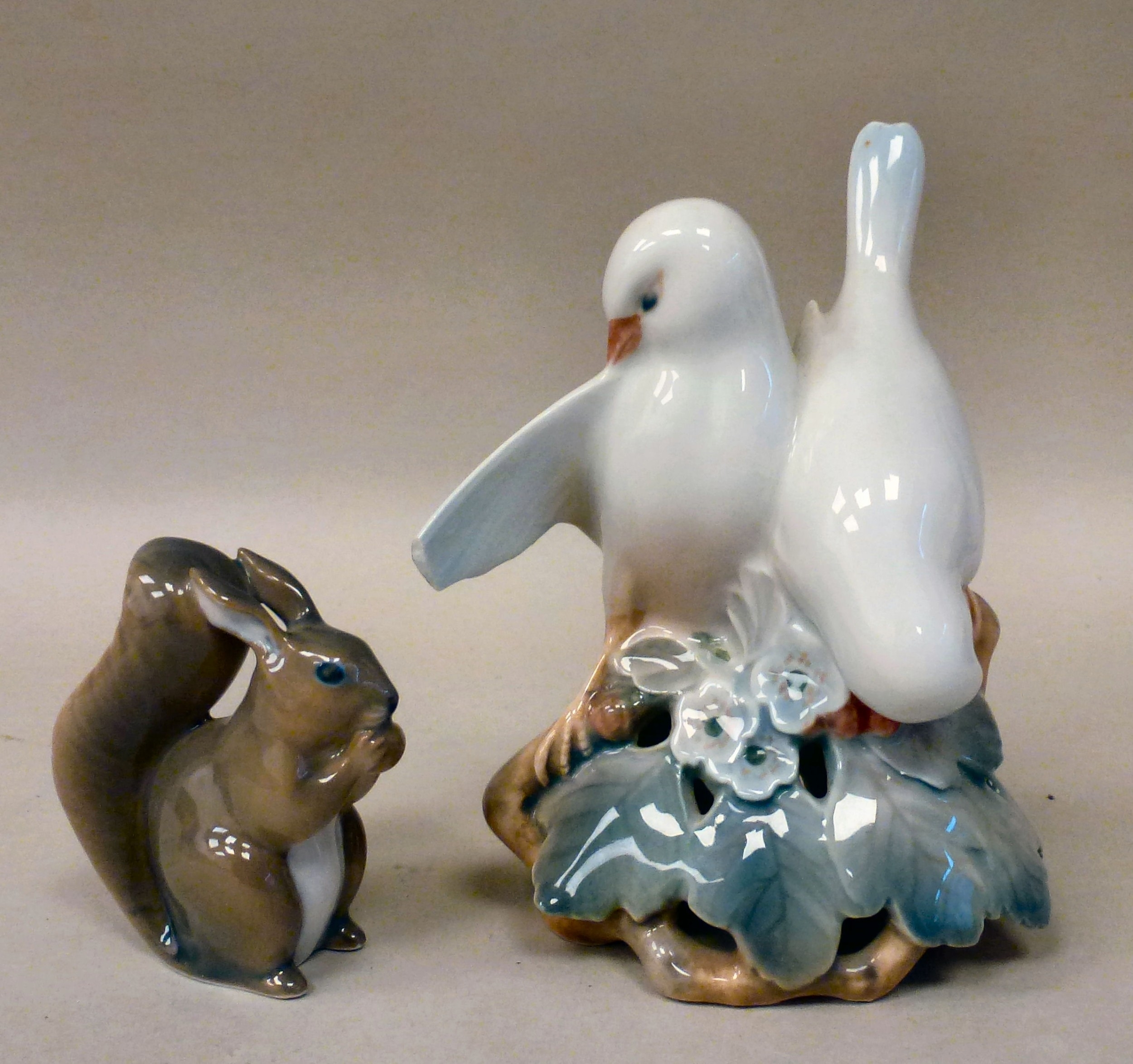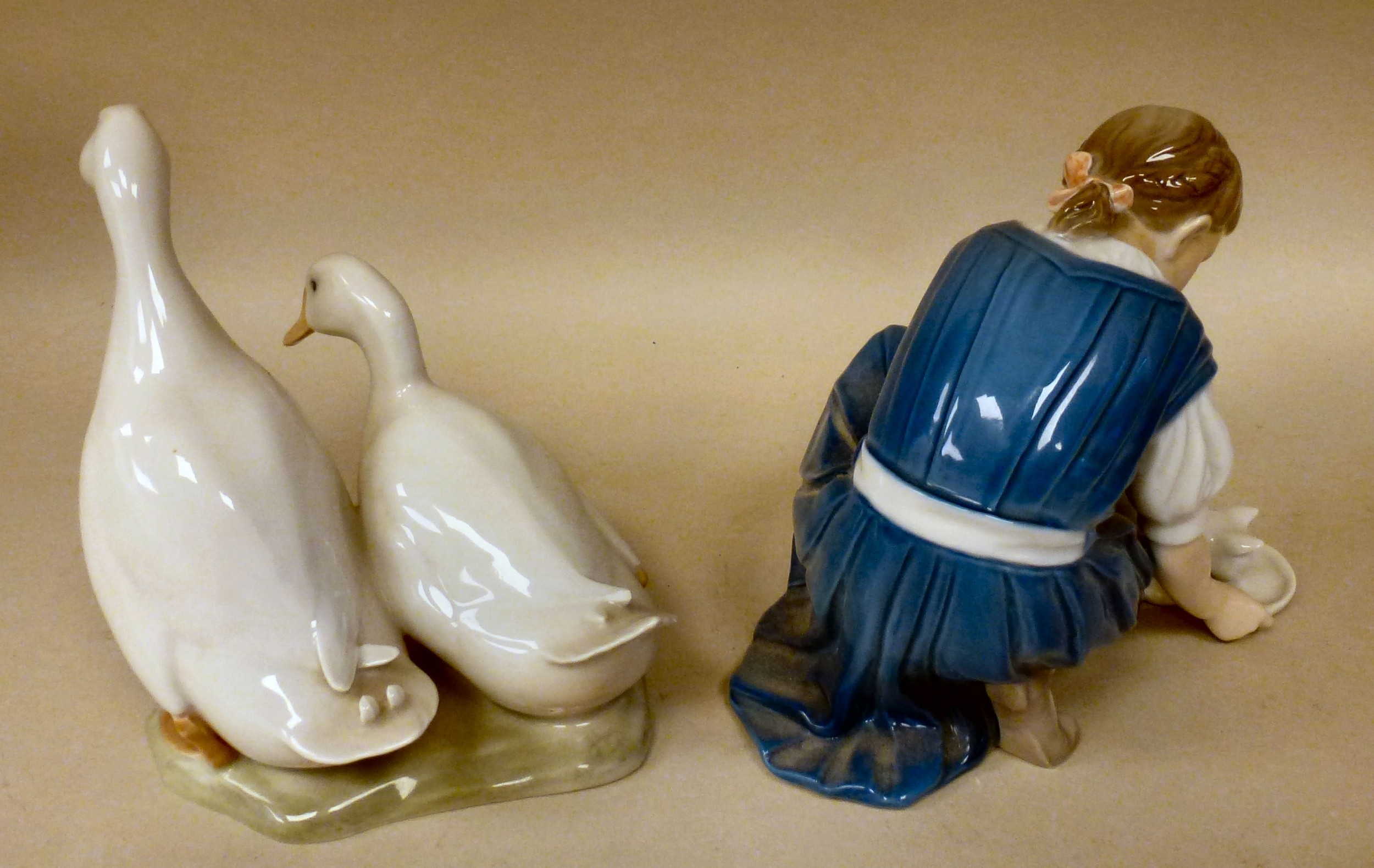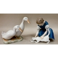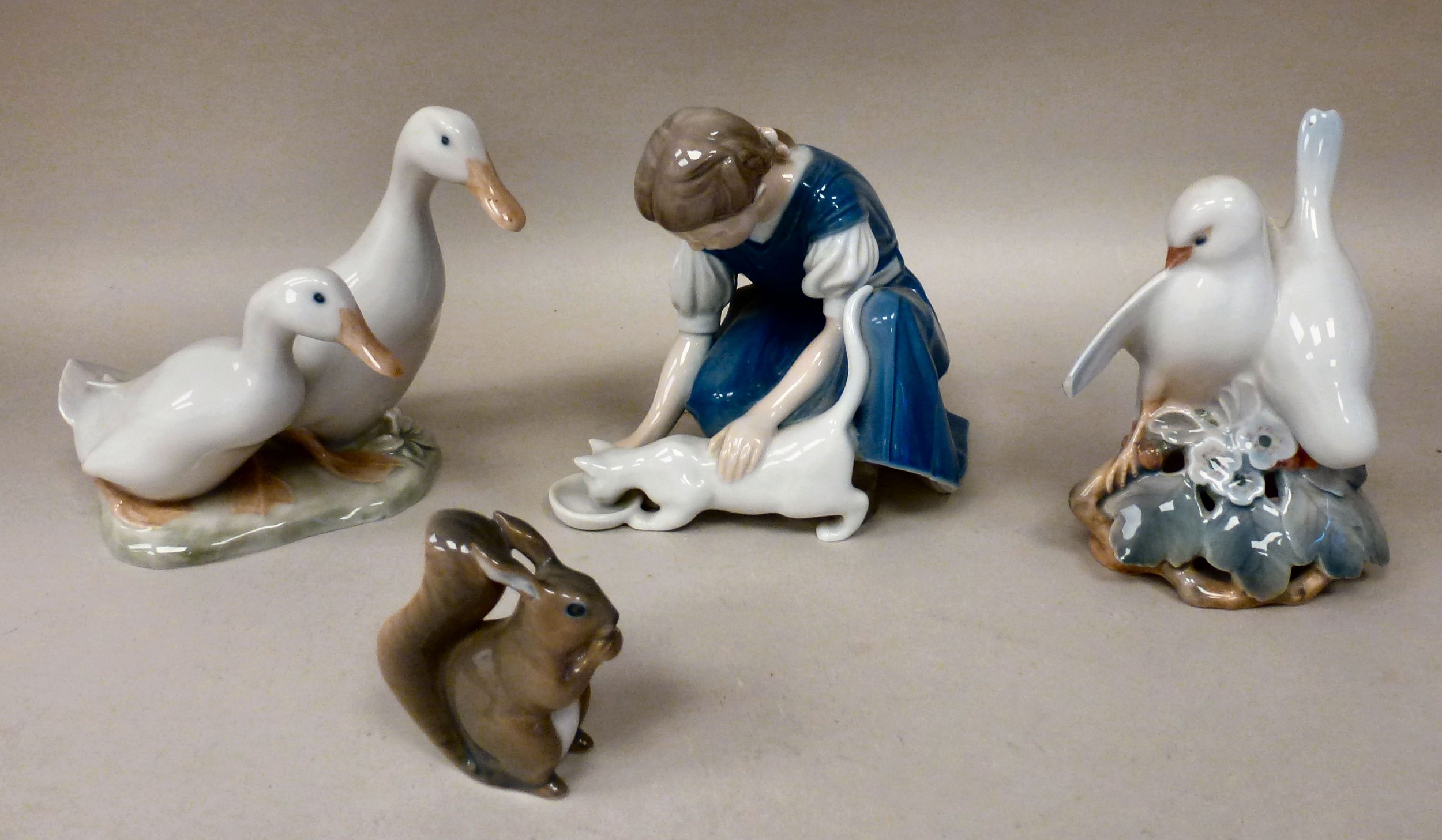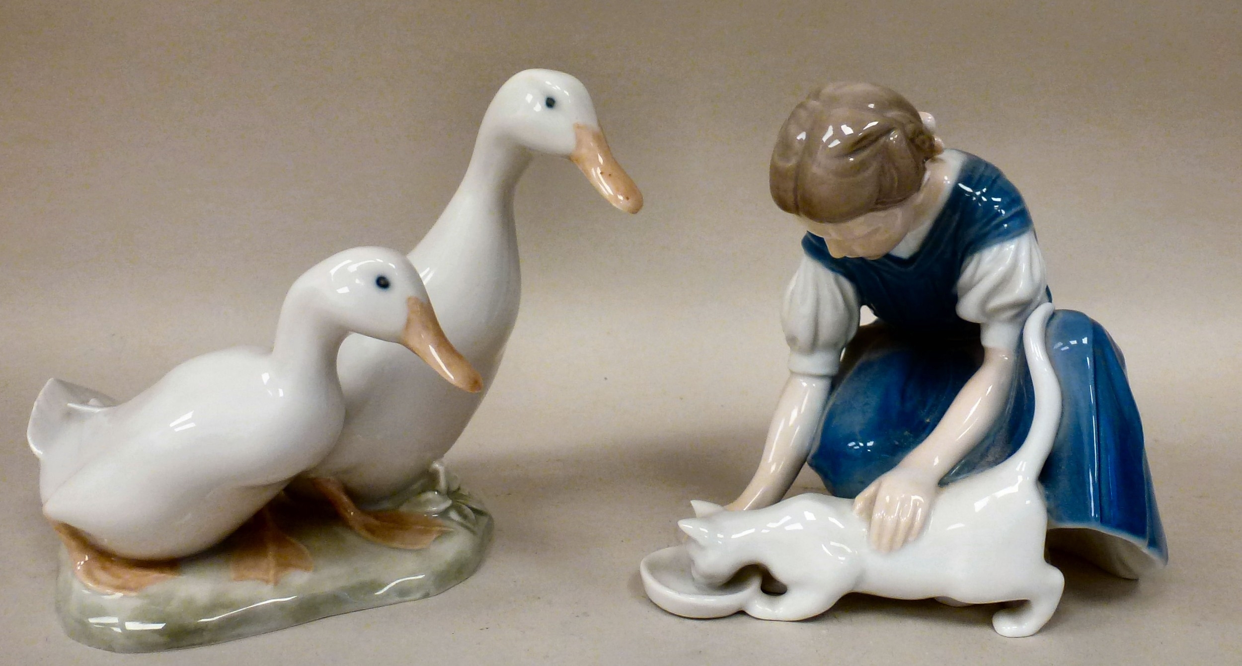 Ceramic ornaments: to include B&G porcelain, a girl feeding a cat 6"h