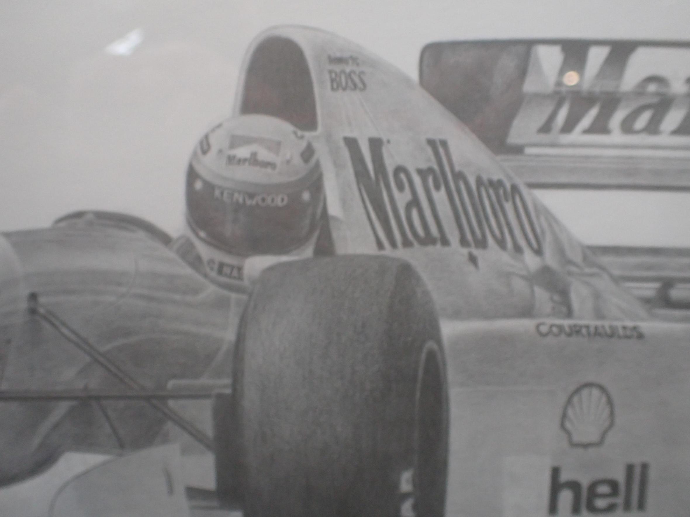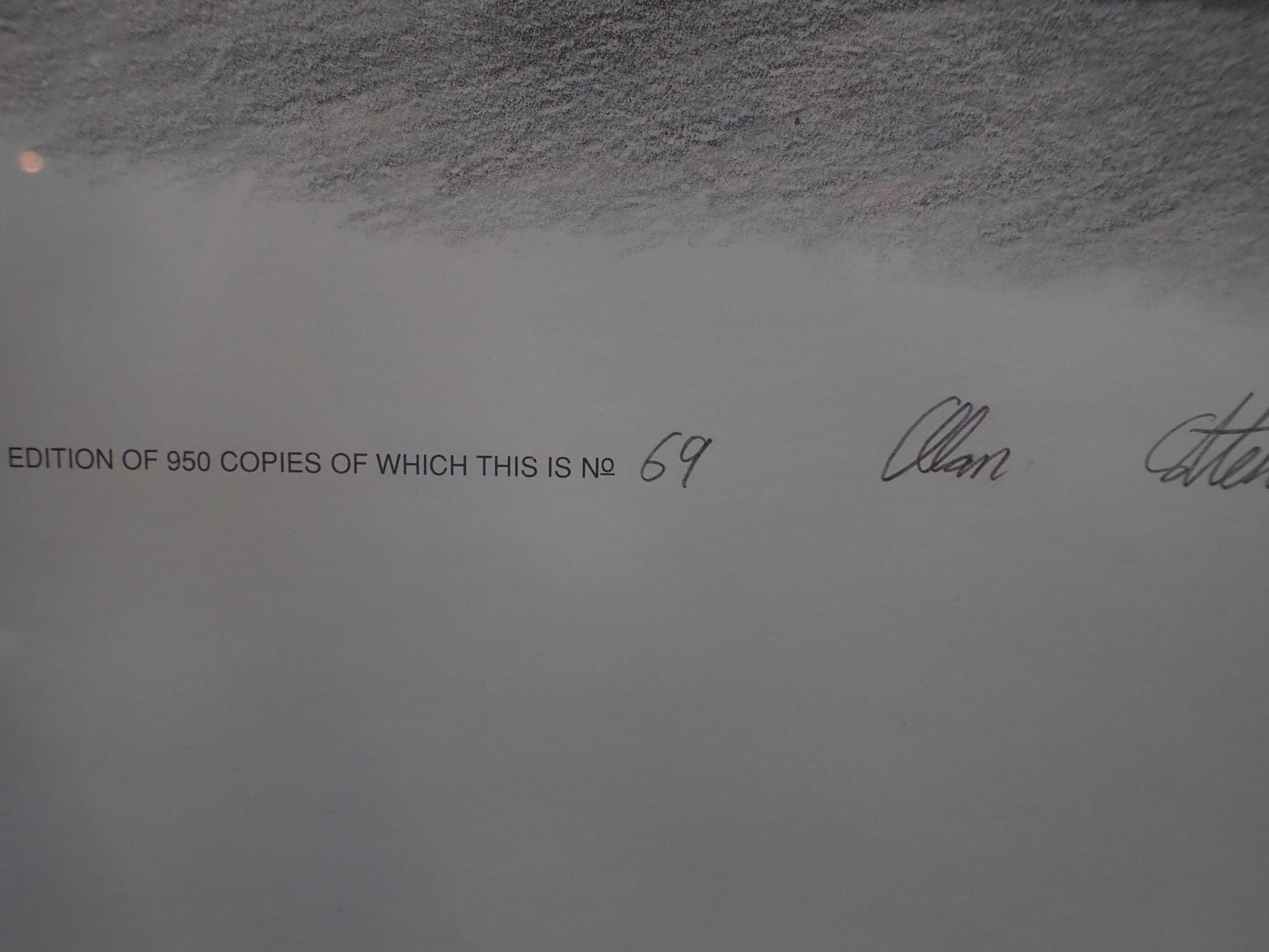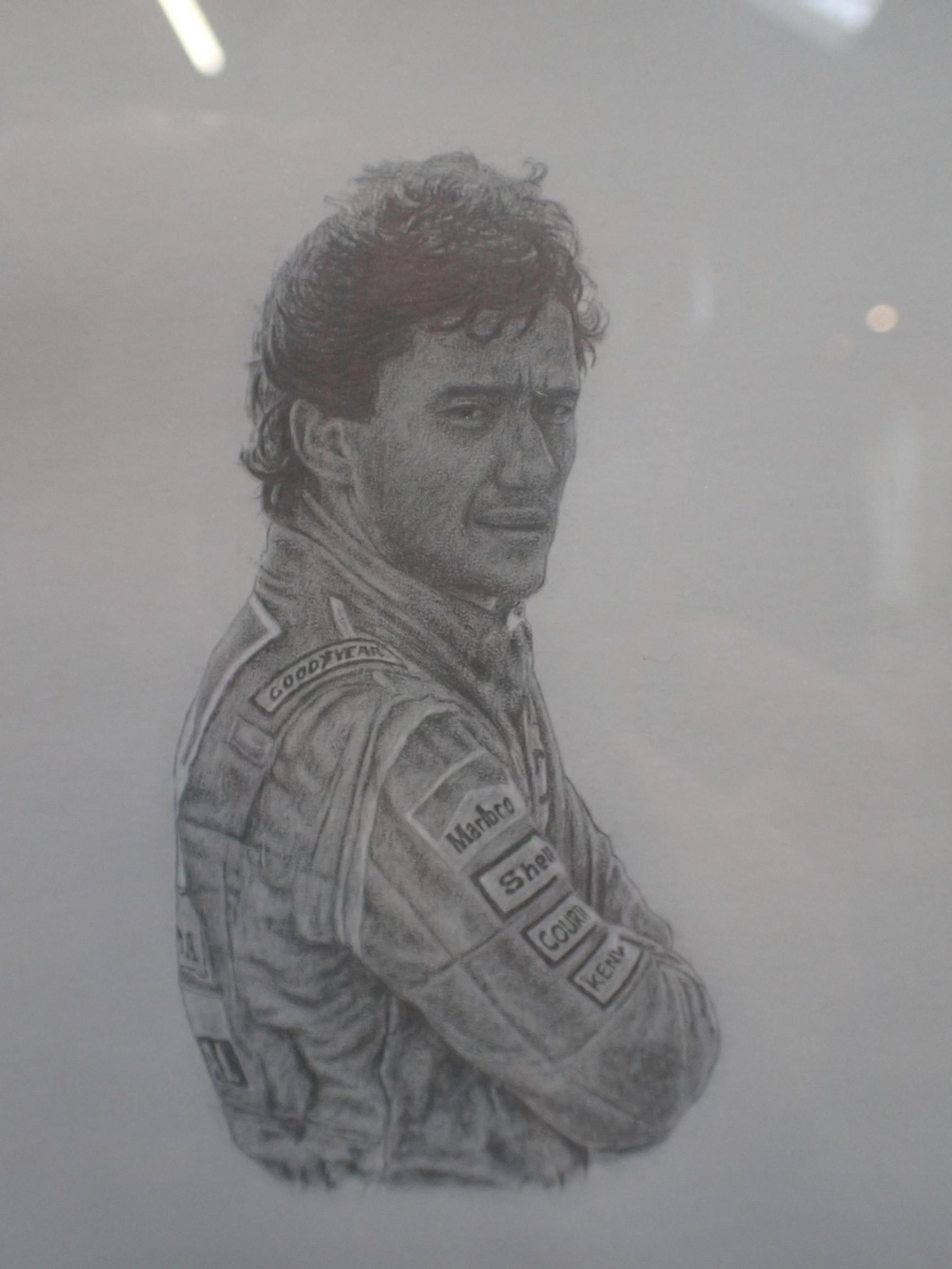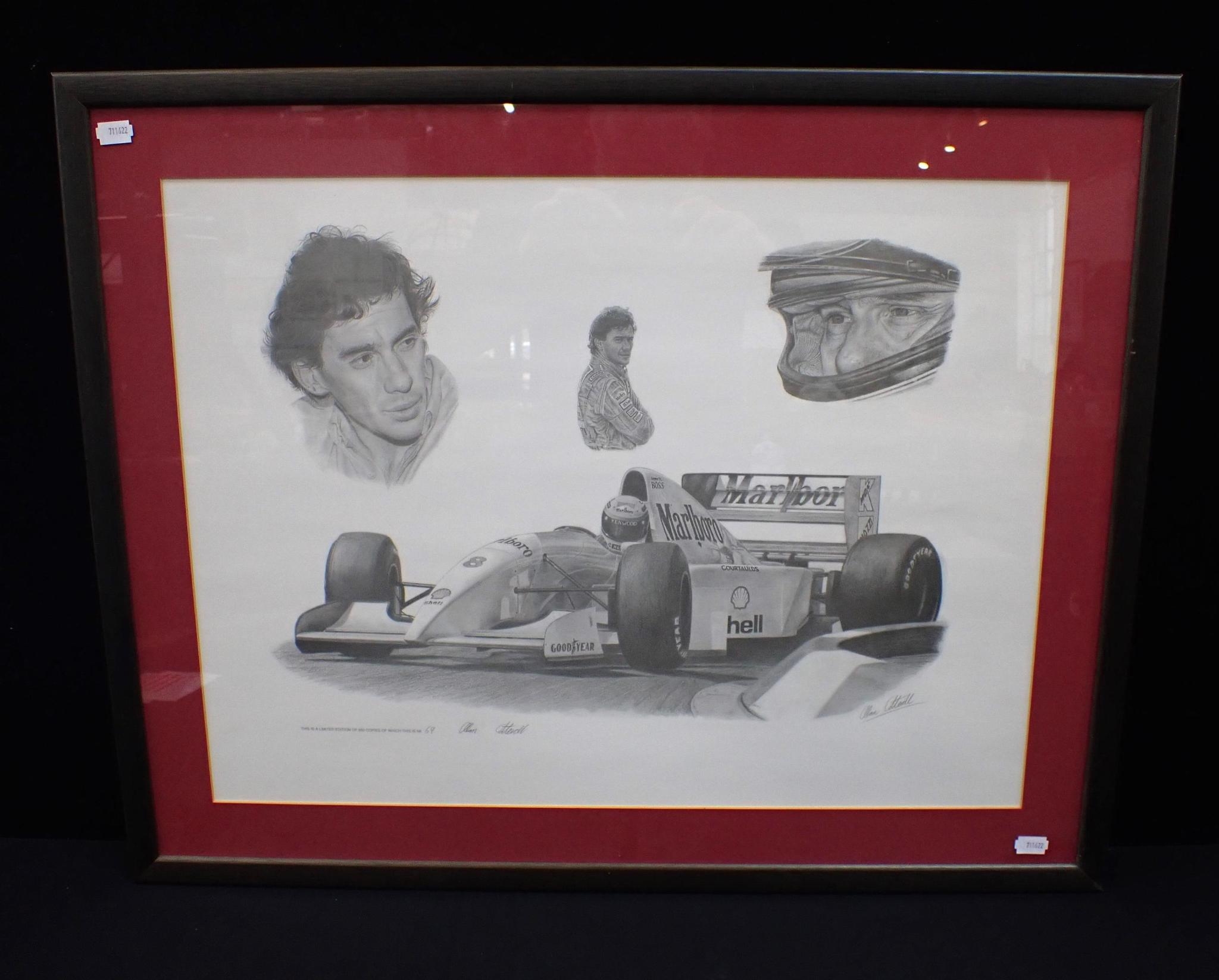 LIMITED EDITION AYRTON SENNA FRAMED PRINT Signed limited print by Allan Cotterill, number 69 of 950. In a modern frame, measures 69cm x 54cm