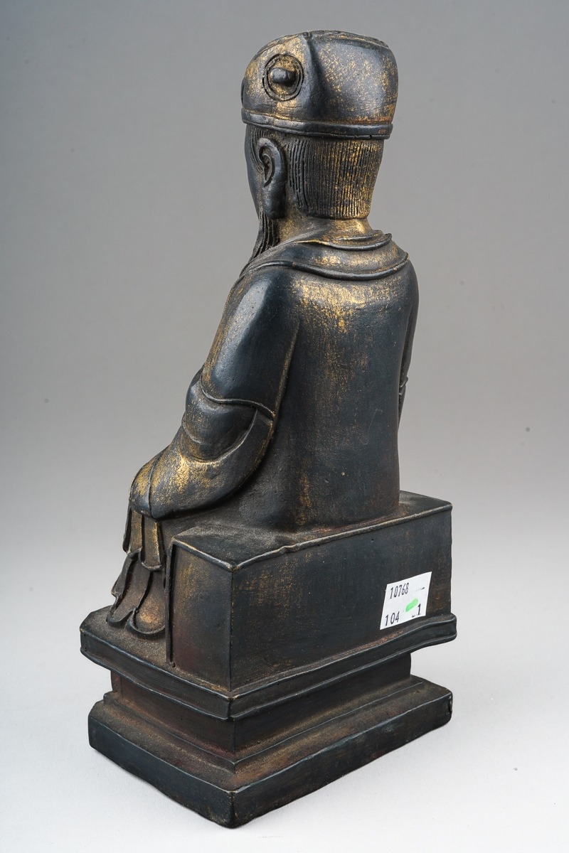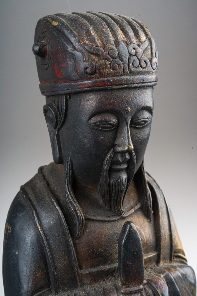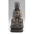 A Chinese bronze figure of a seated official, worn gilding, ...