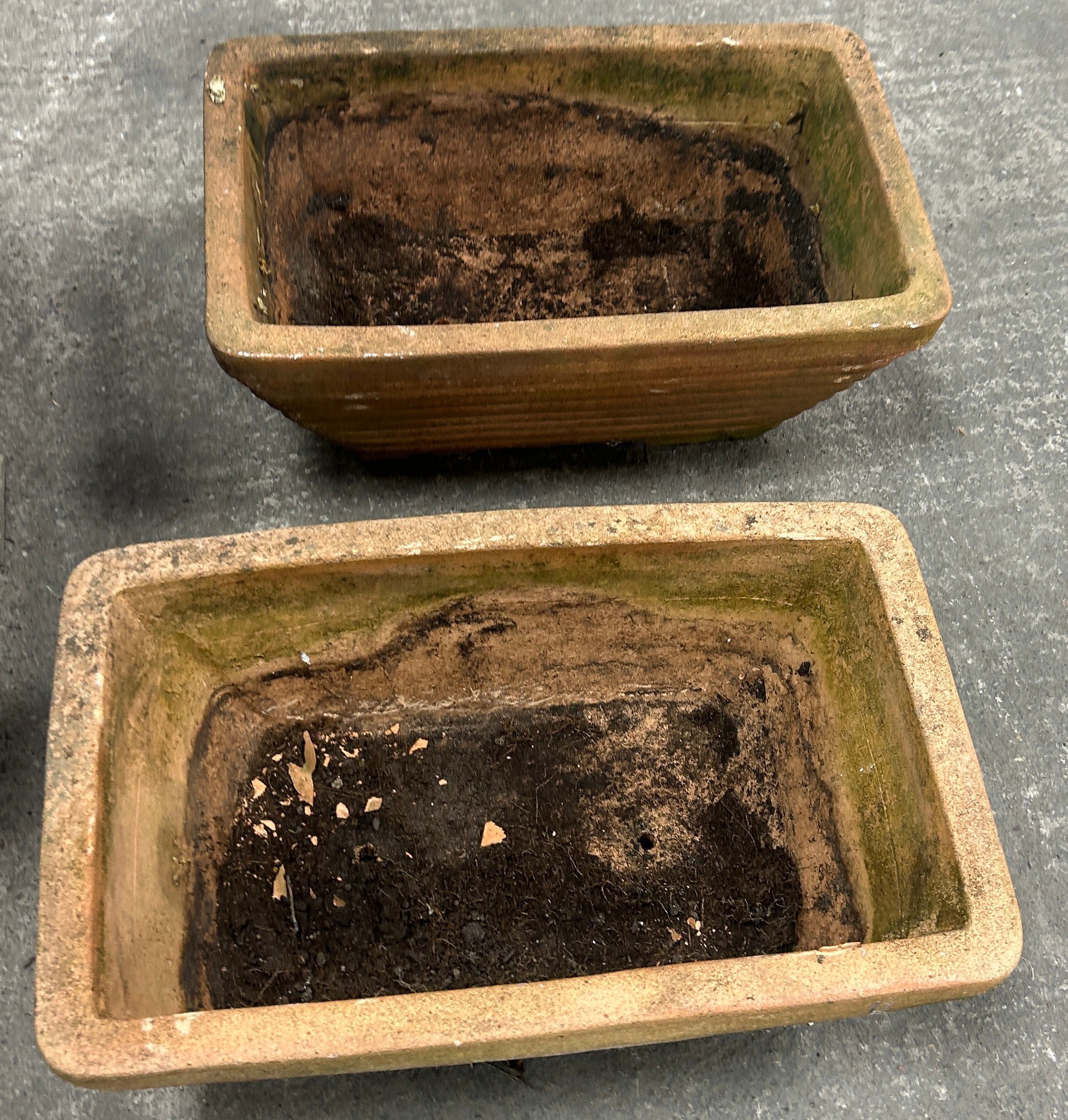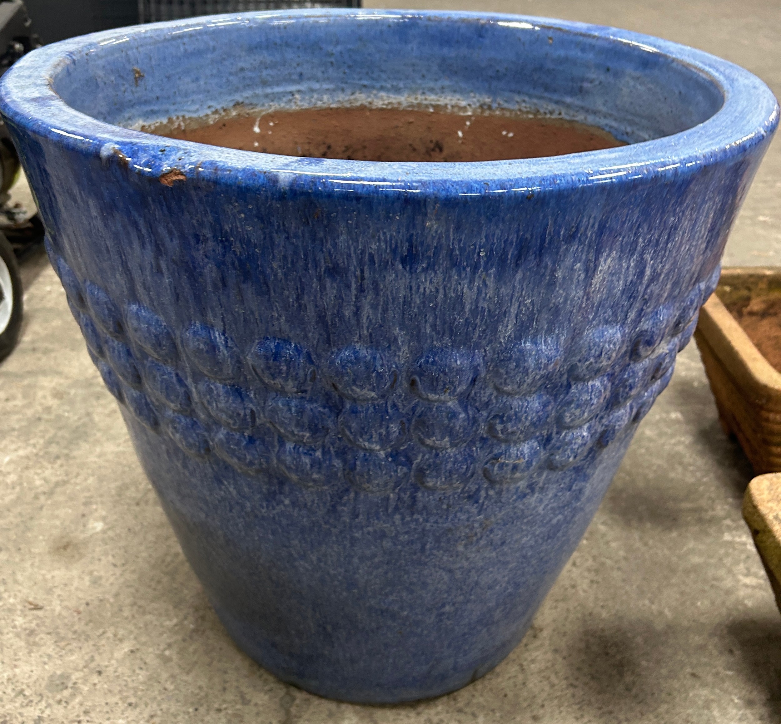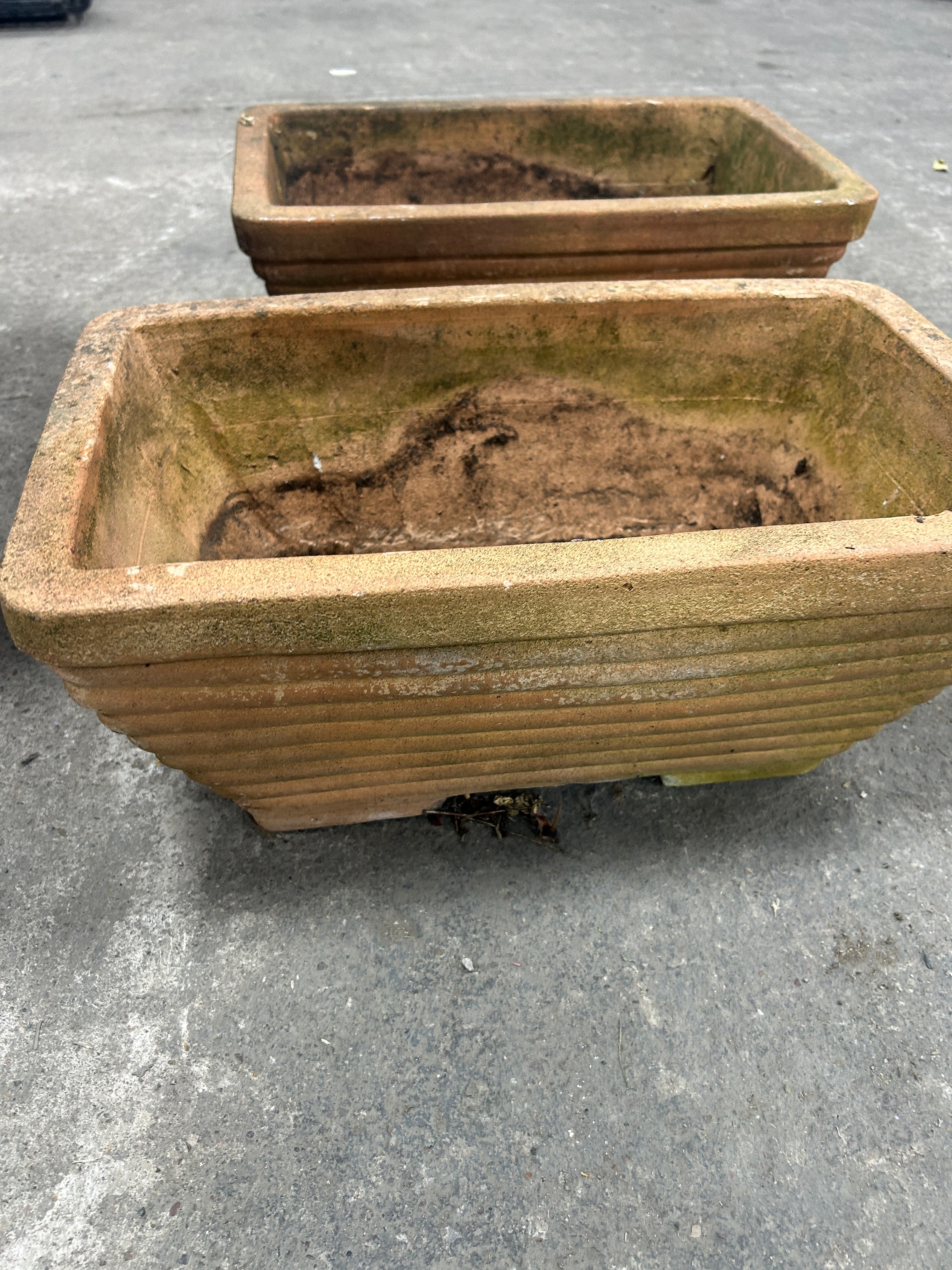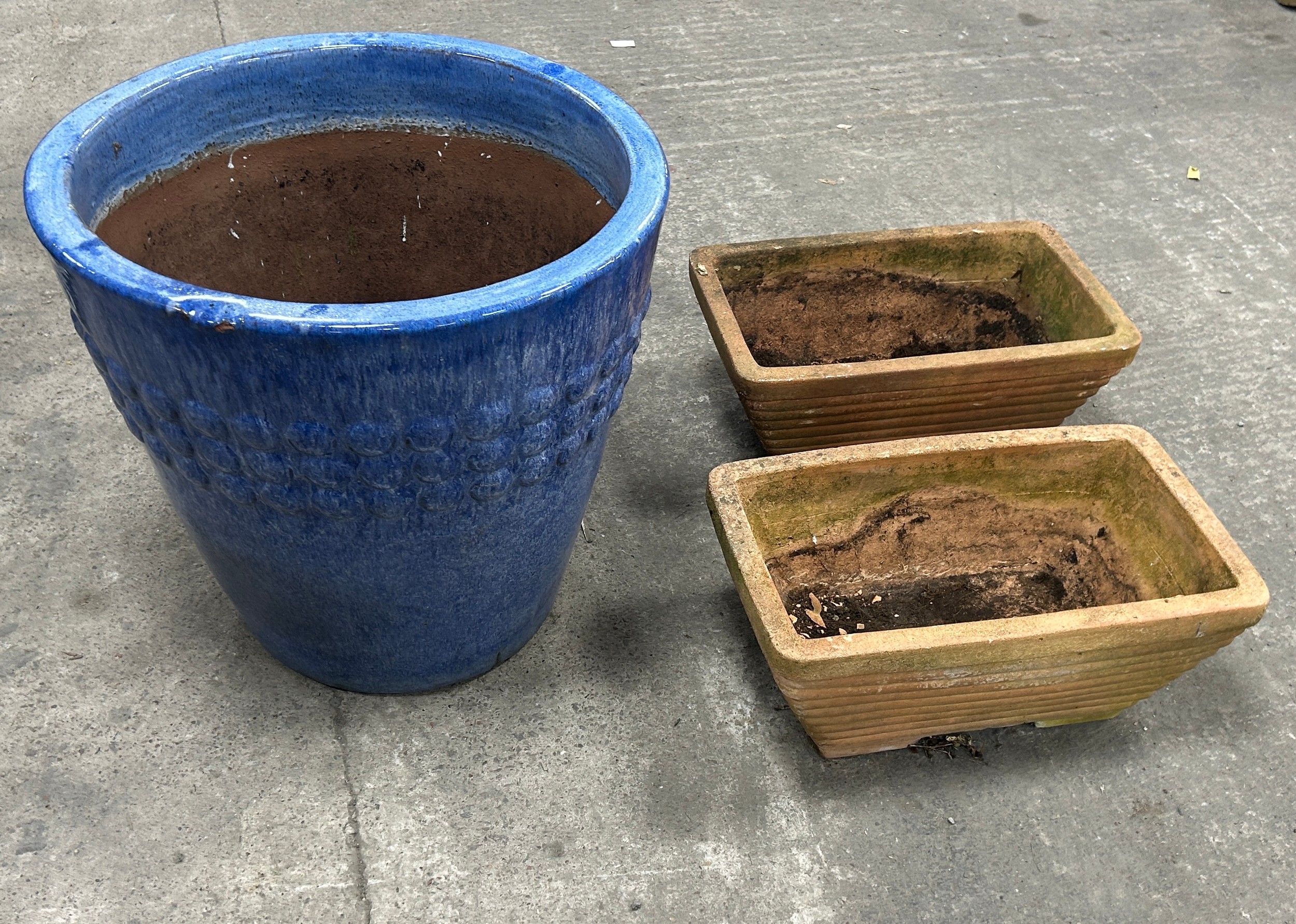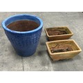 3 garden planters, Largest measures approximately 20 inches tall, diameter 21 inches