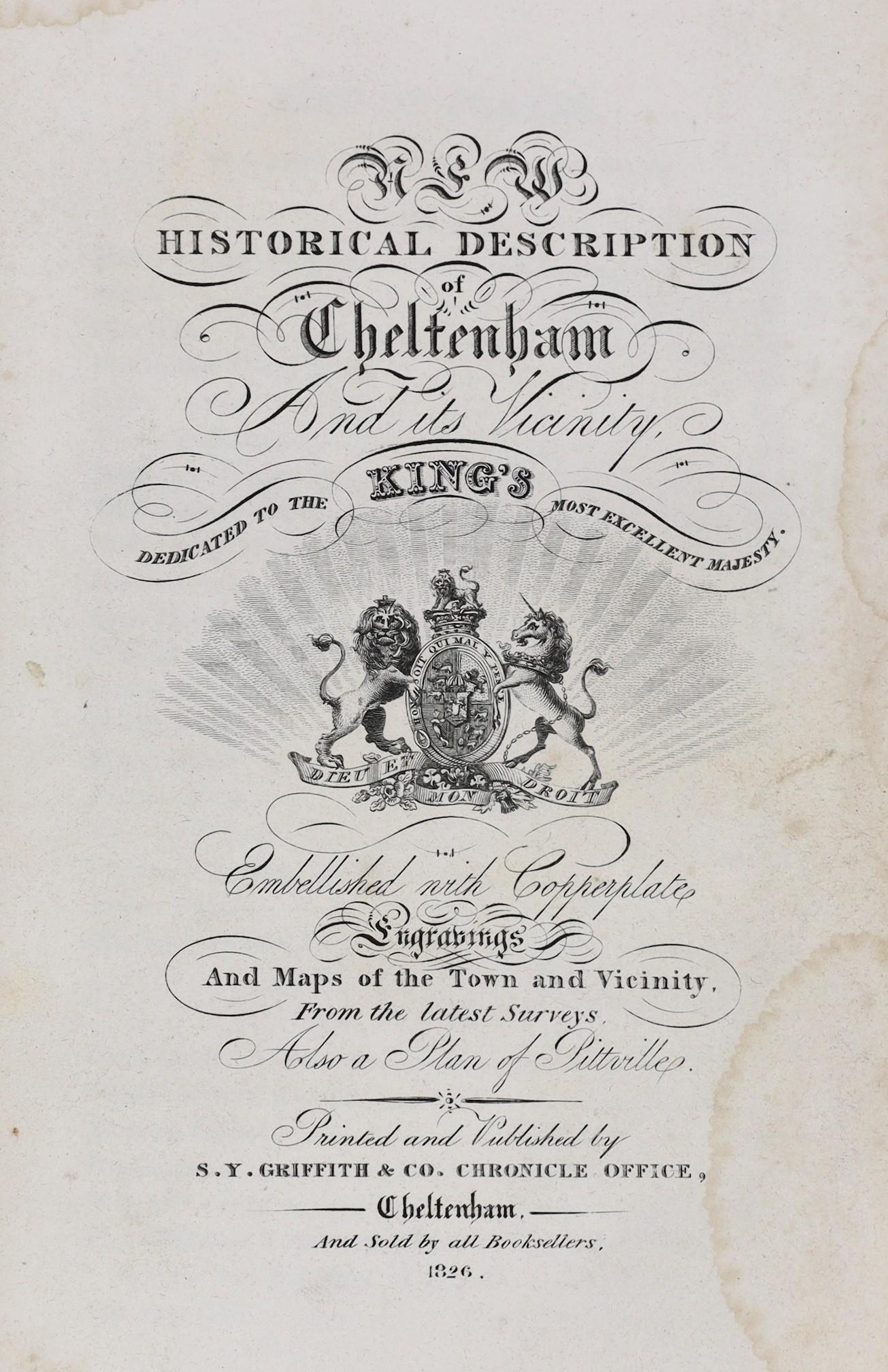 Rudder - fld. plans lt. frail at folds, gen. good, contemp. (Fairford) ownership, and 20thC pict. bkplt. of Michael Bryant; X, (3),-332pp. (?lacks a pt. title, all text present); Fosbroke - some leather wear, new e/ps., ex. Incorp. Law Soc. library - sm. title stamp and 1/2 others, front inner hinge weak, title soiling; VIII, 242pp.; Cheltenham - some leather wear at corners, map (v.2) lt. browned, titles lt. stained, back e/ps. stained, some intermittent foxing; no vol. number given on titles. 1X, 124 and IV, 288pp., additionally 29 pict. engr. advert. leaves end. vol.I