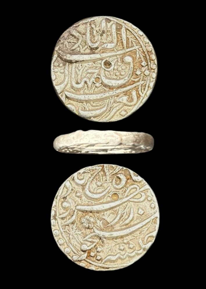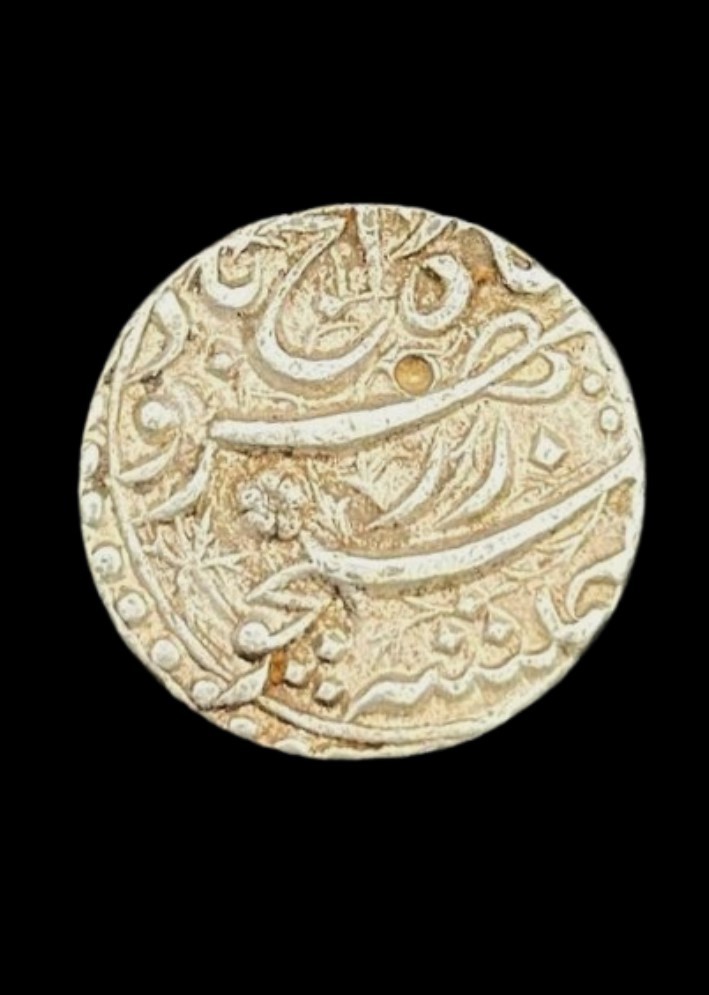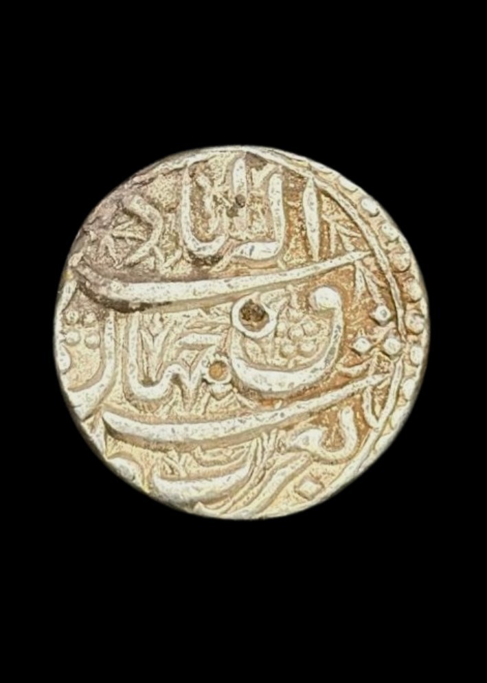 Reverse (back): The inscription “Baghrub wa sharq jahan sikka Allahabad” translates to: “In the world’s east to west, the coin of Allahabad.”