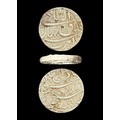 Obverse (front): The inscription “Hamesha hamchu zar mihr wa mah raij bad” translates to: “Like the gold of the sun and moon, may ever rule.”