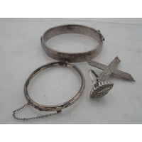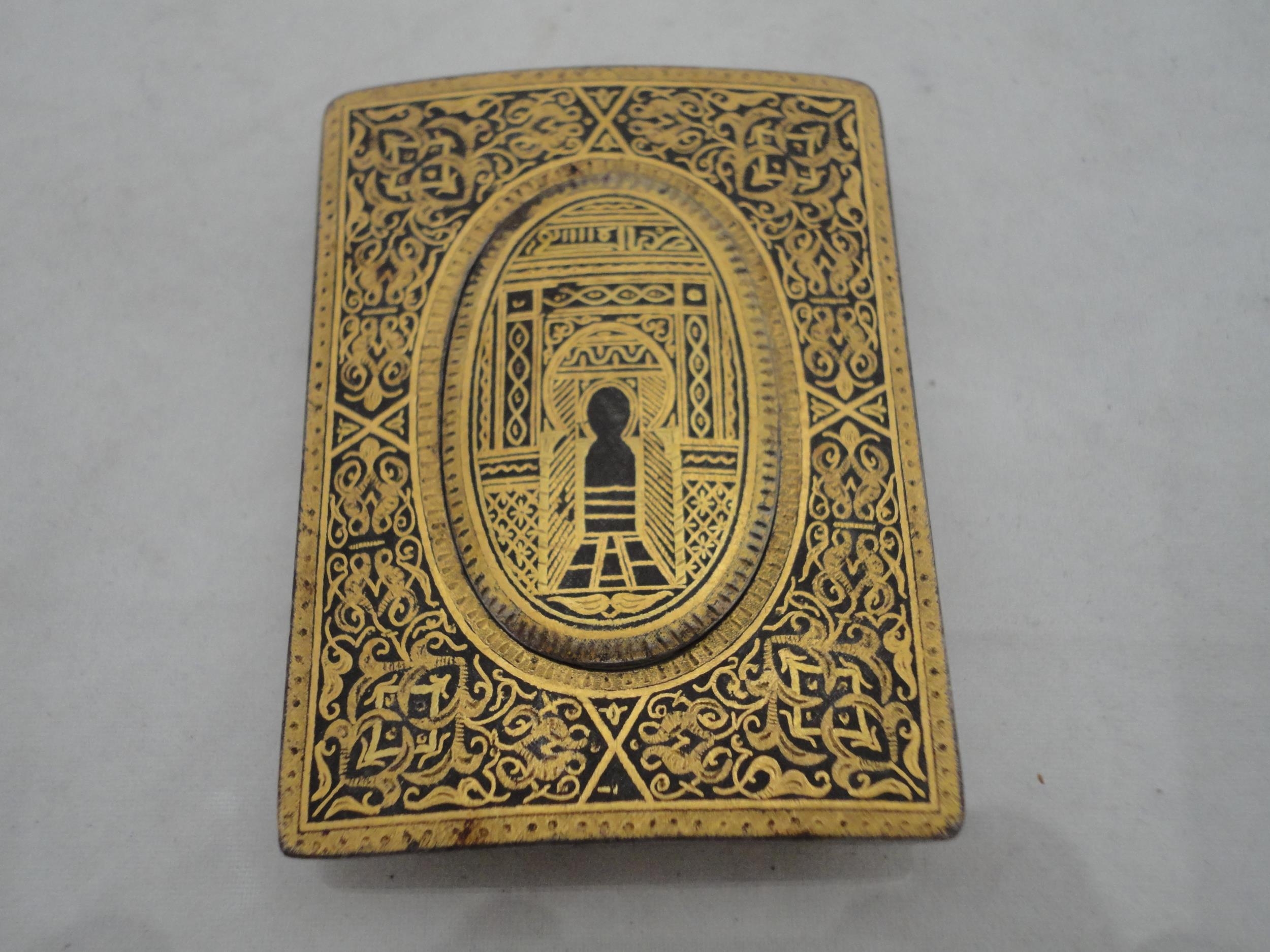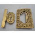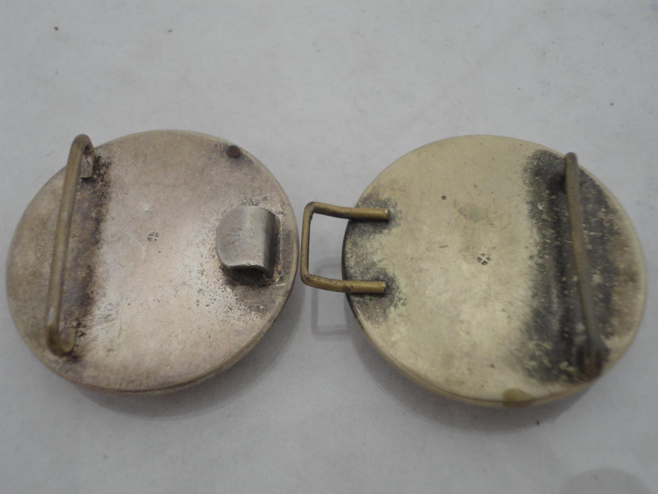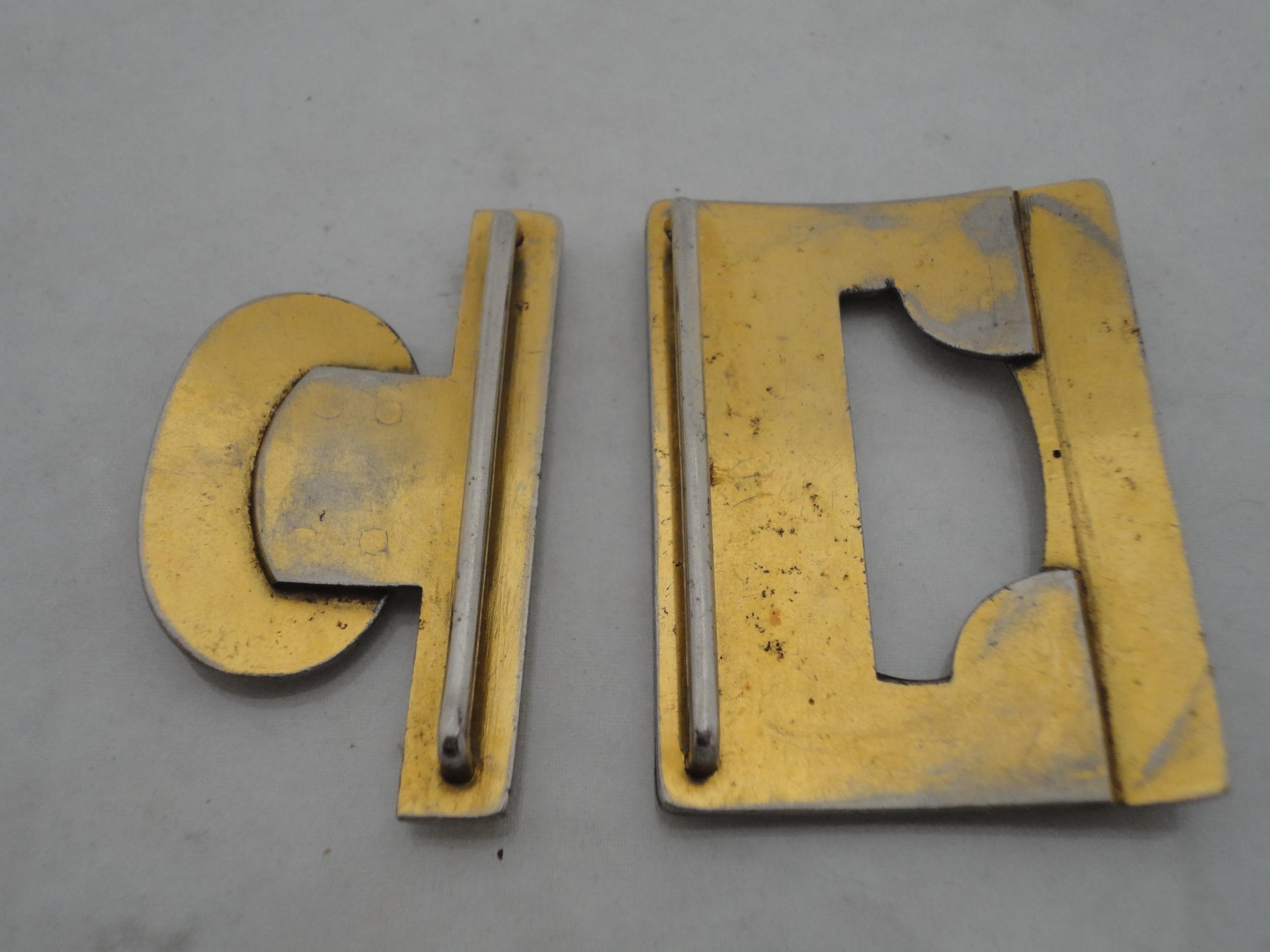 Pair of Japanese Satsuma buckles and a Japanese gilt metal buckle. (3)