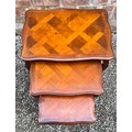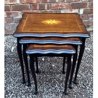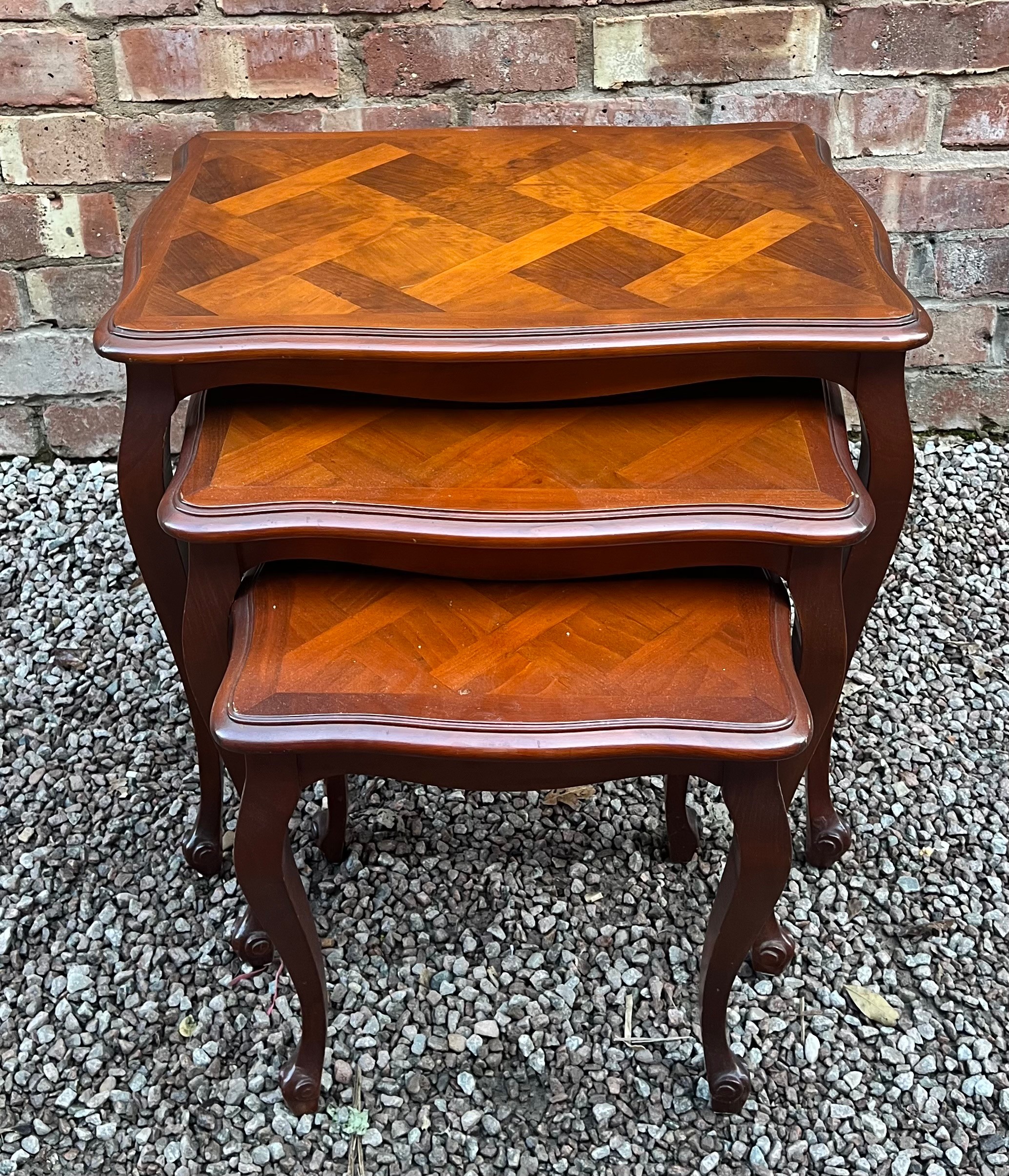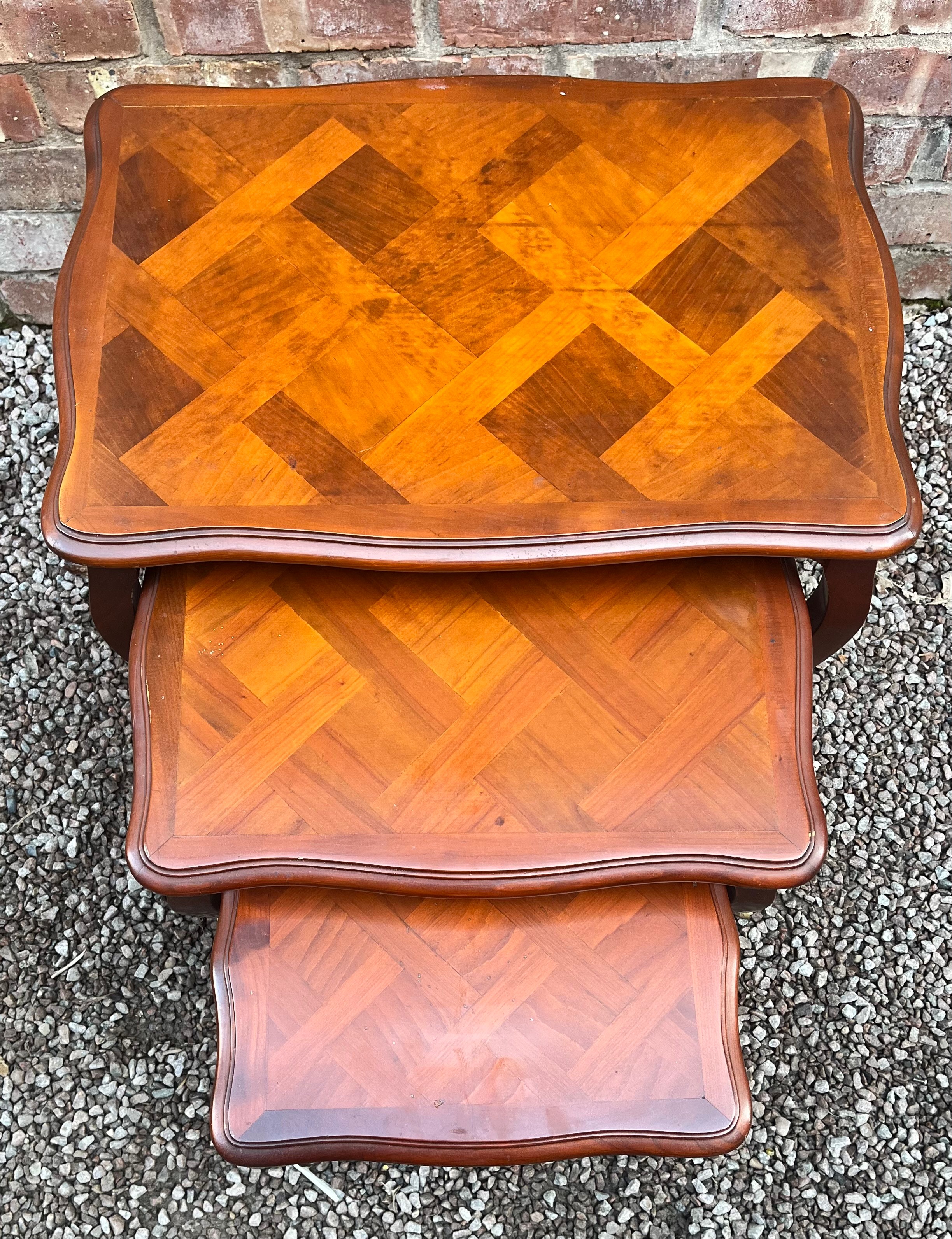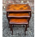 NEST OF THREE MAHOGANY PARQUETRY CABRIOLE LEG TABLES