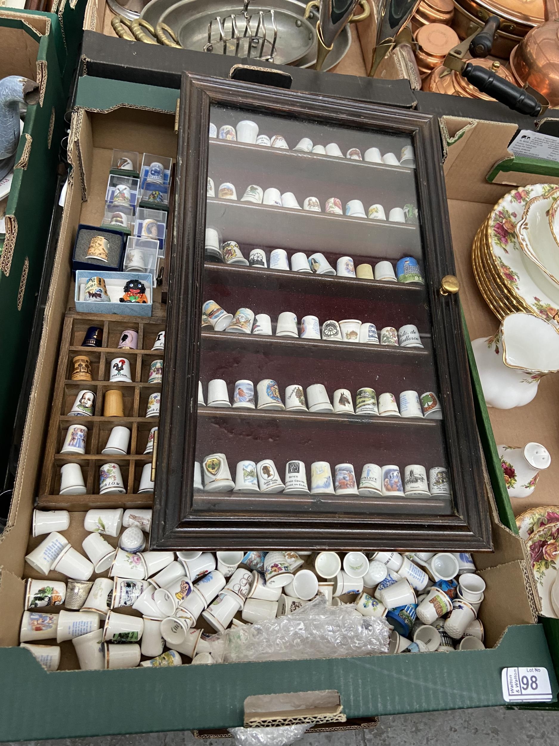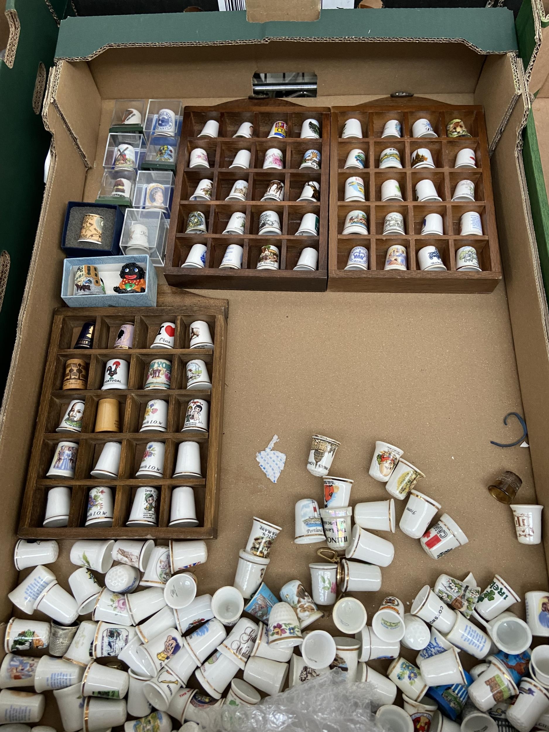 Box containing assorted collectible thimbles