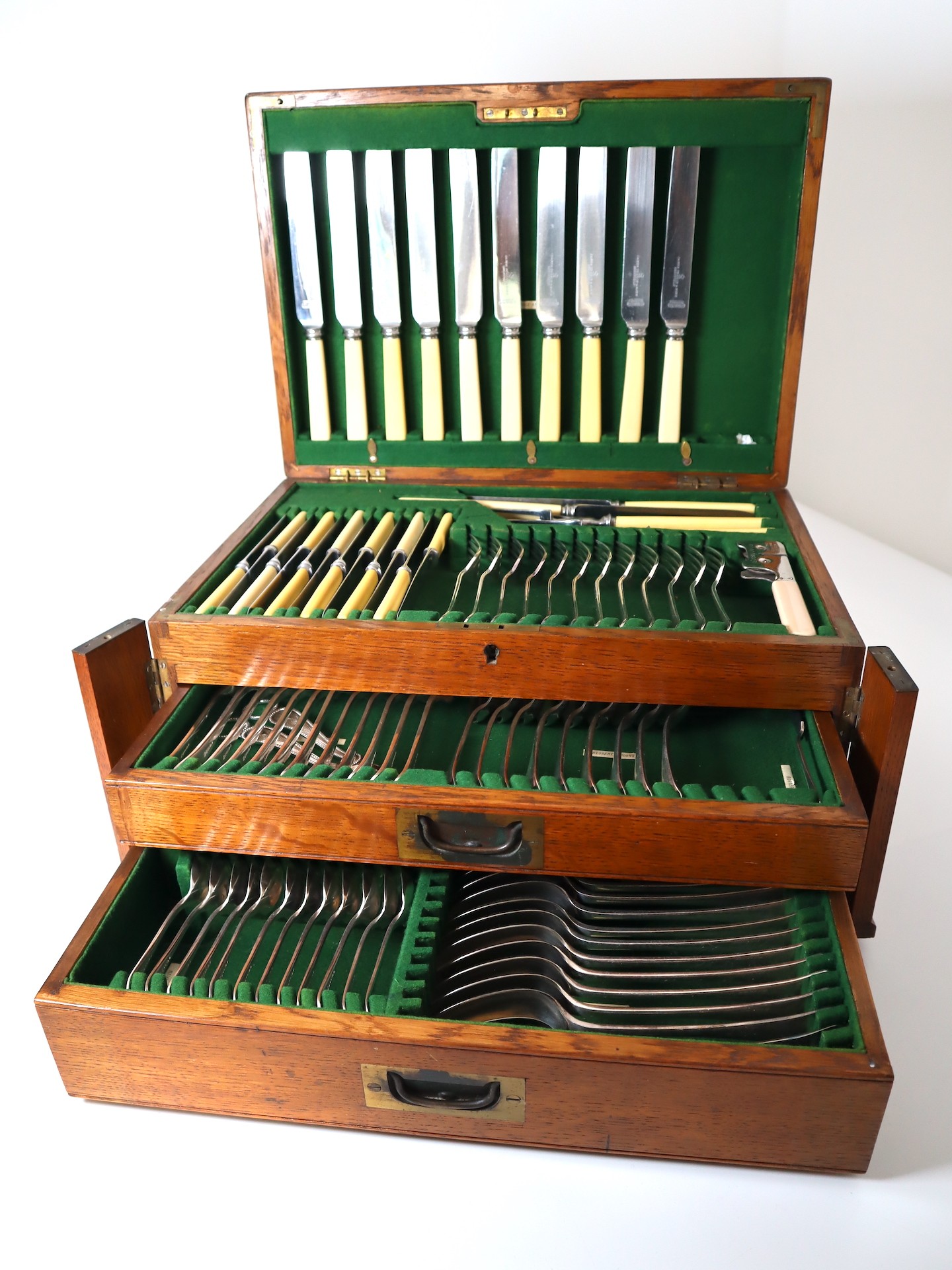 Vintage Oak Cutlery Case with silver plate cutlery