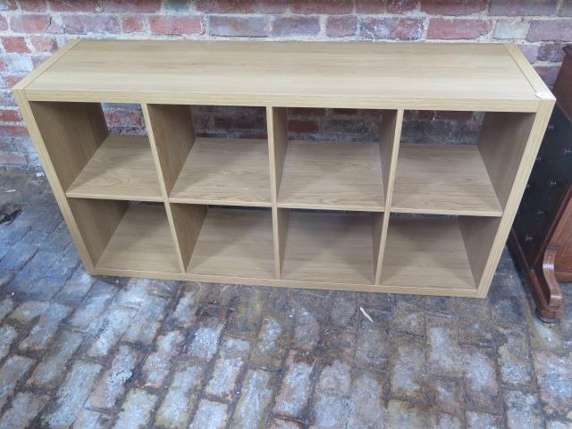A wood effect shelf unit, 77cm x 147cm x 39cm