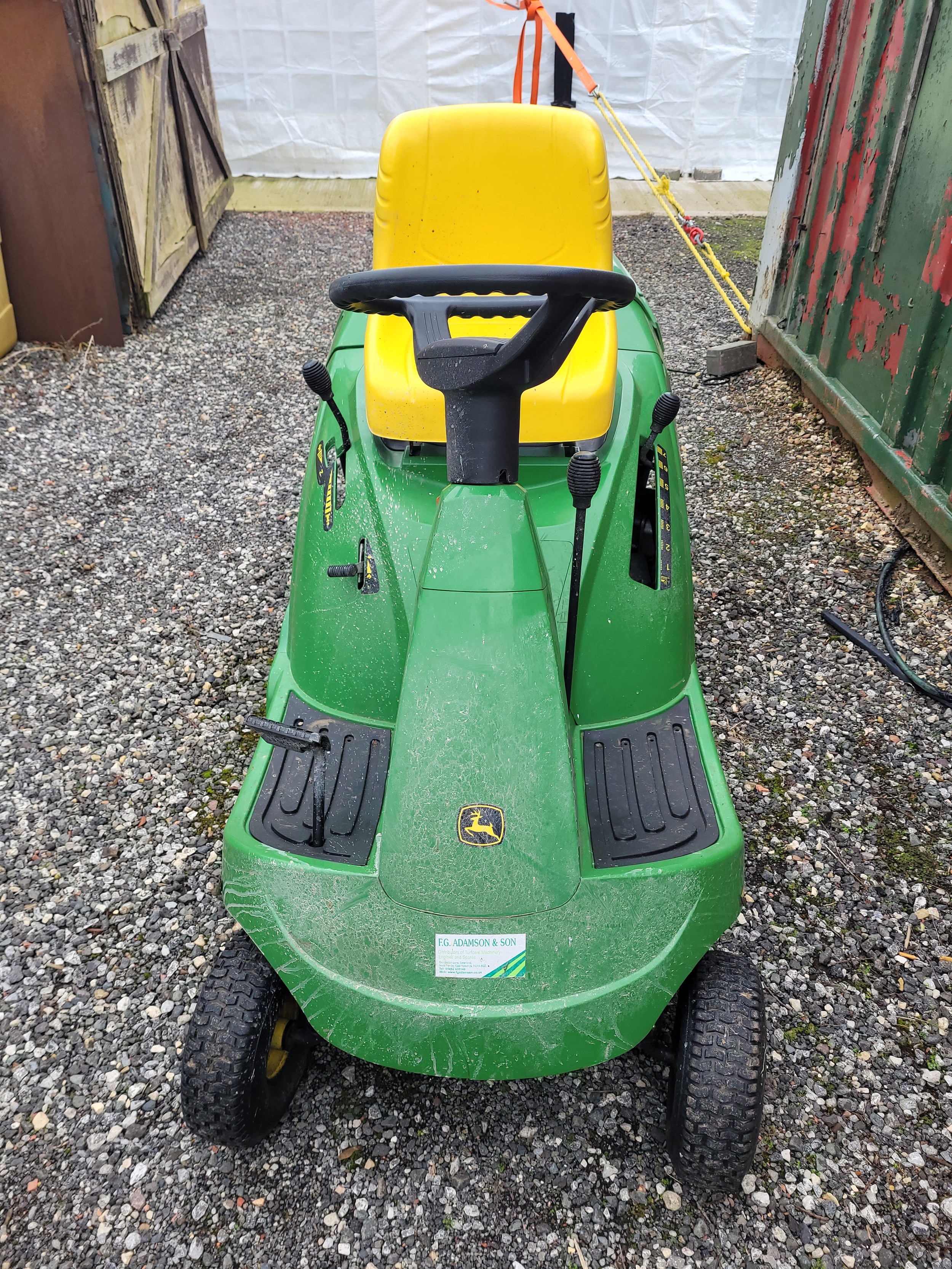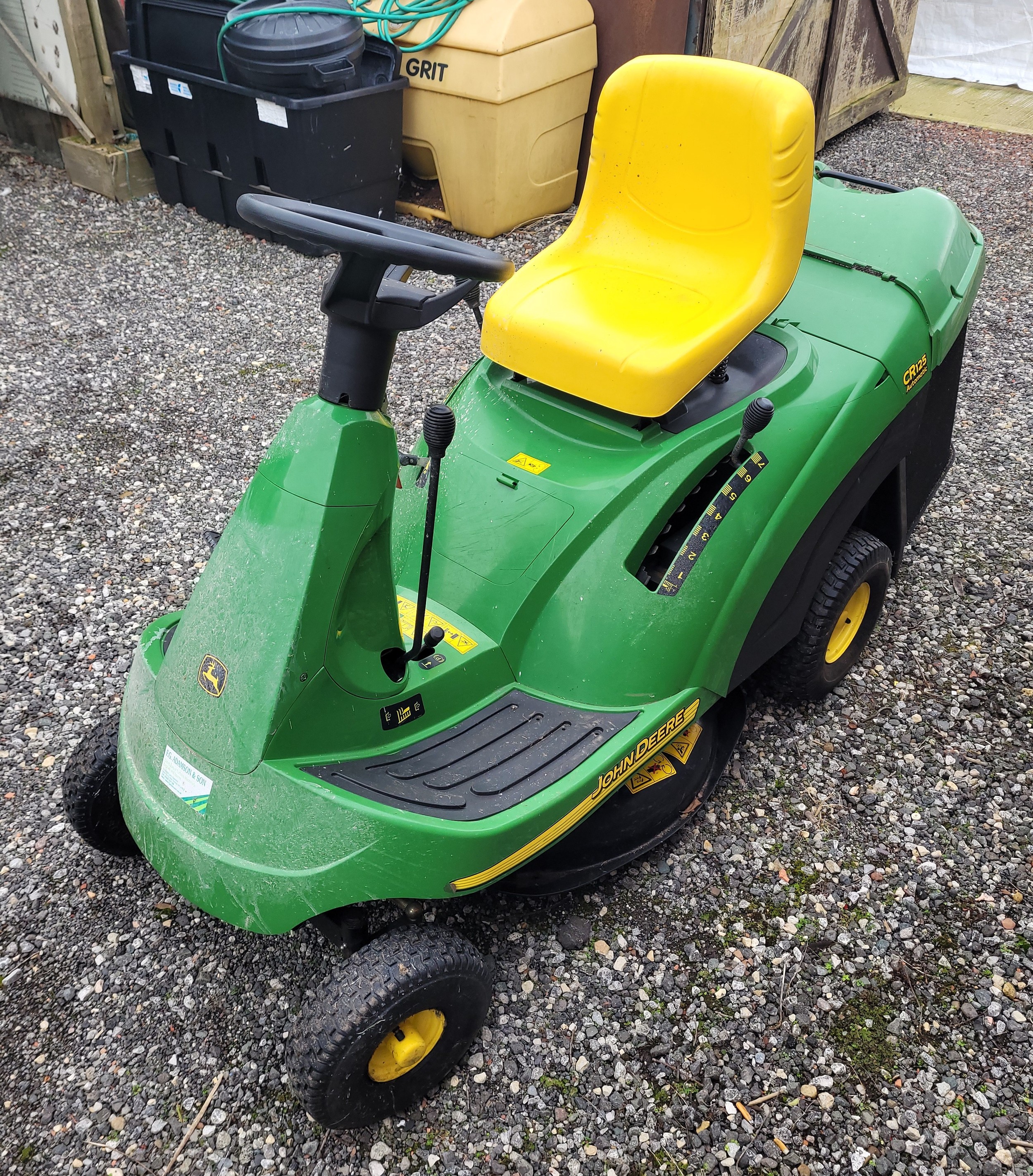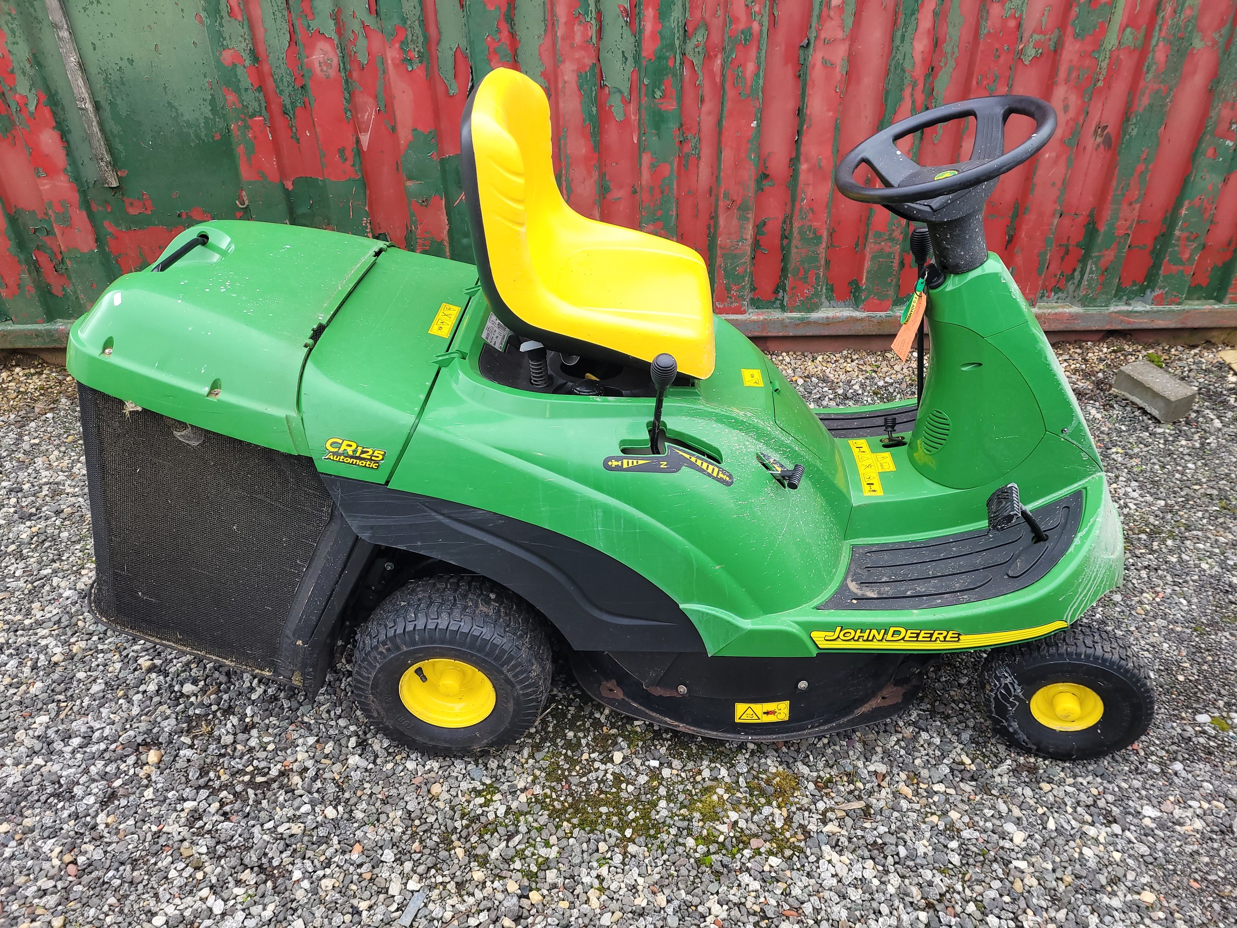 Garden and grounds maintenance; A John Deere CR125 automatic ride-on tractor mower, with key.