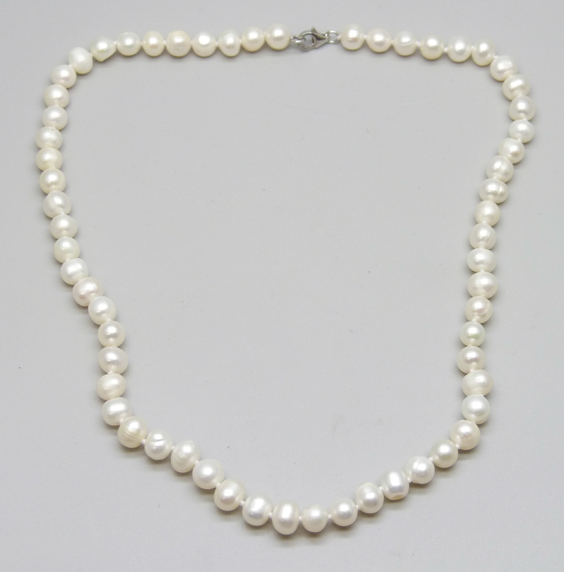 A white pearl necklace with a silver clasp, 22g, 41cm