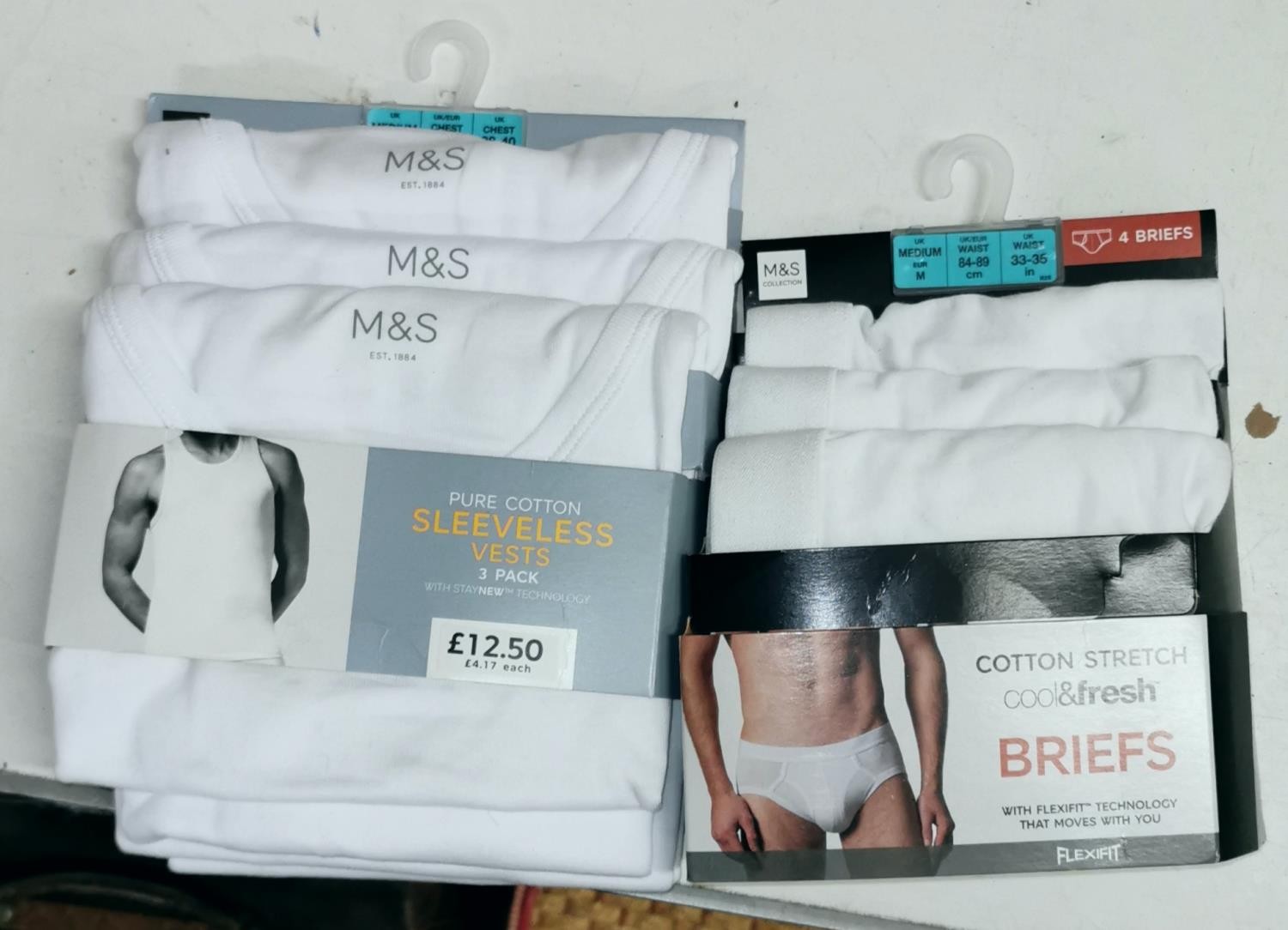 New triple pack of gents medium M&S sleeveless white vests & 3 from a pack of 4 x M&S white briefs