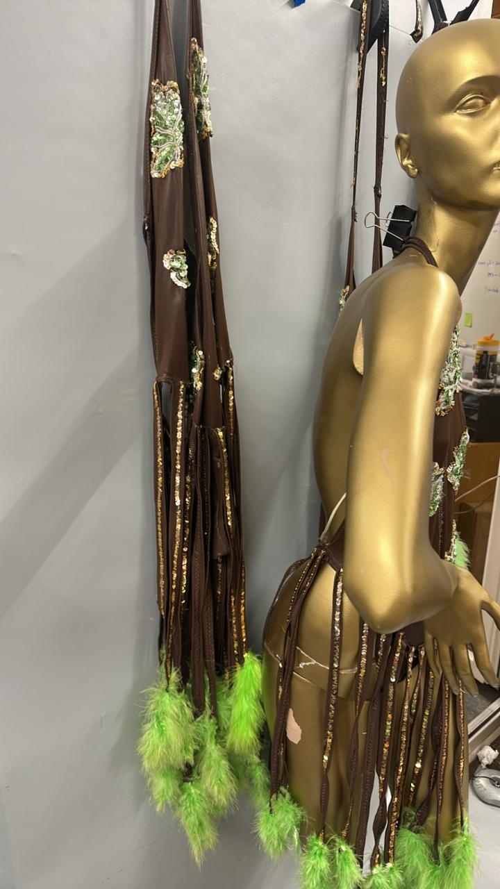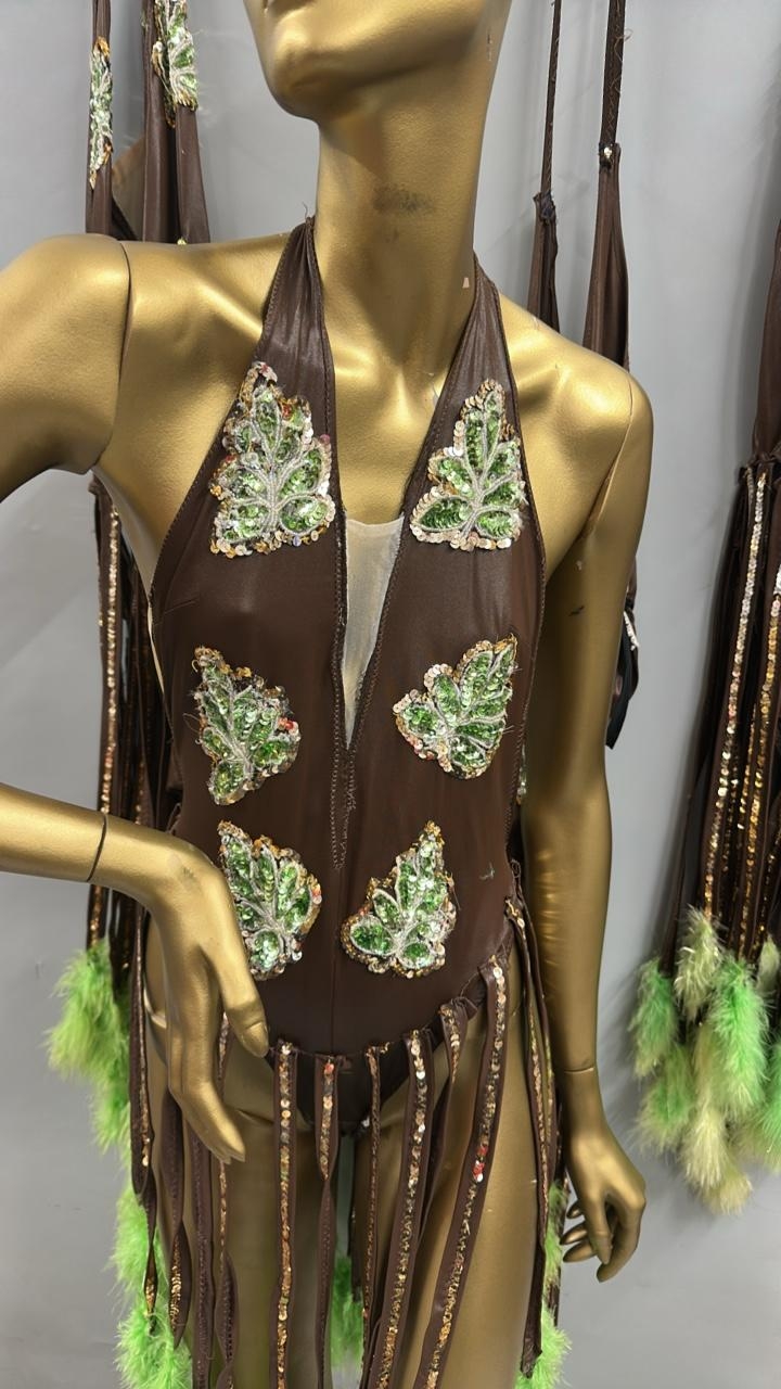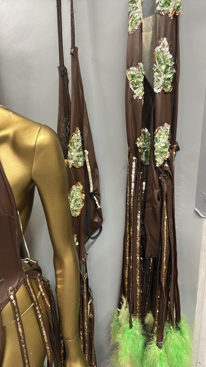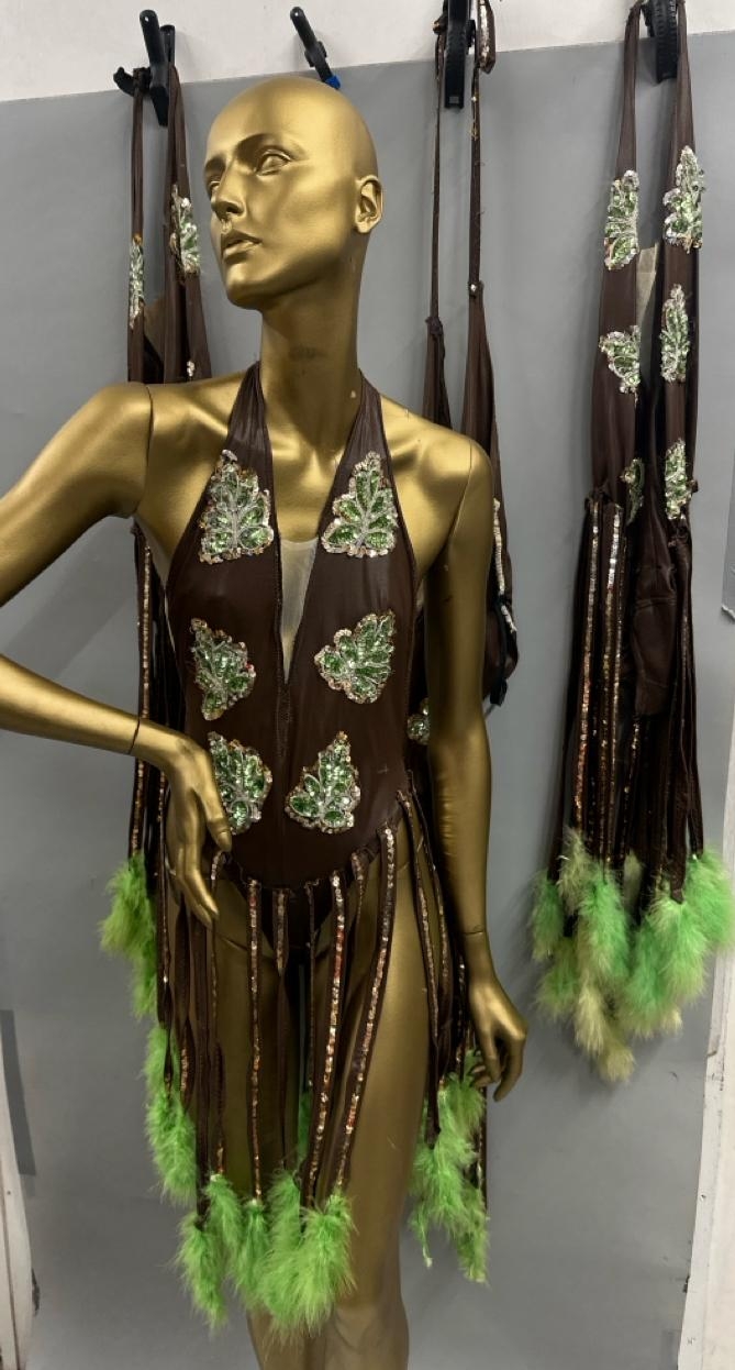 Four stage worn dancers bodysuits with tassels. /Rail 4