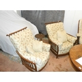 A lady's modern dark elm armchair, a matching gentleman's ar...