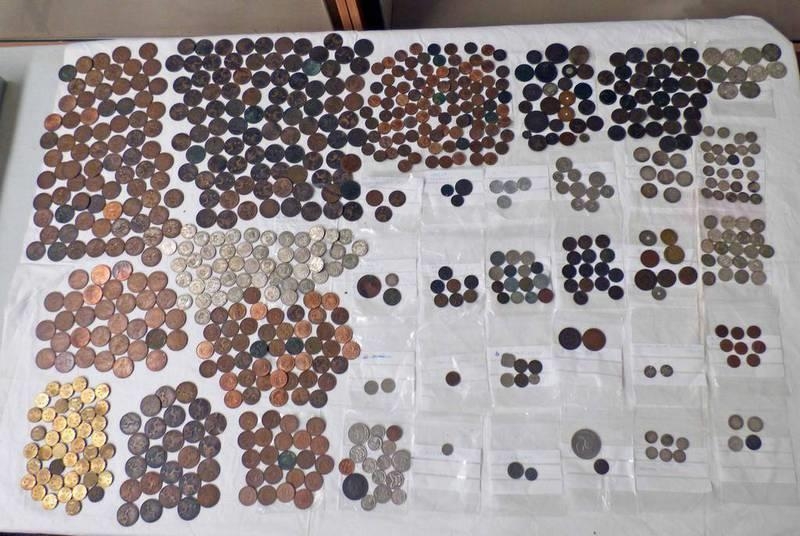 SELECTION OF WORLDWIDE COINS TO INCLUDE 7 VICTORIA SHILLINGS, 4 VICTORIA SIX PENCES, 15 VICTORIA FARTHINGS, VARIOUS OTHER SILVER EXAMPLES, PENNIES HALFPENNIES ETC