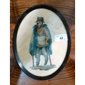 A mid 19thC study, a beggar, holding a sign 'Scraps thankfully received by LEF' watercolour 8" x 6" framed